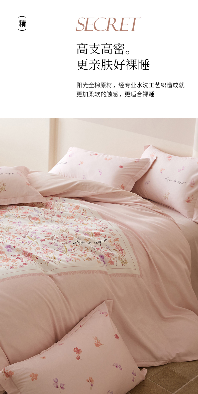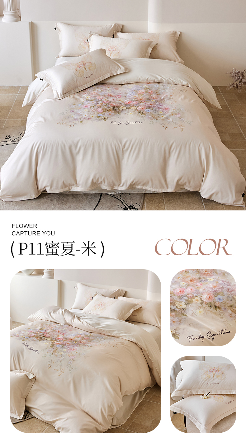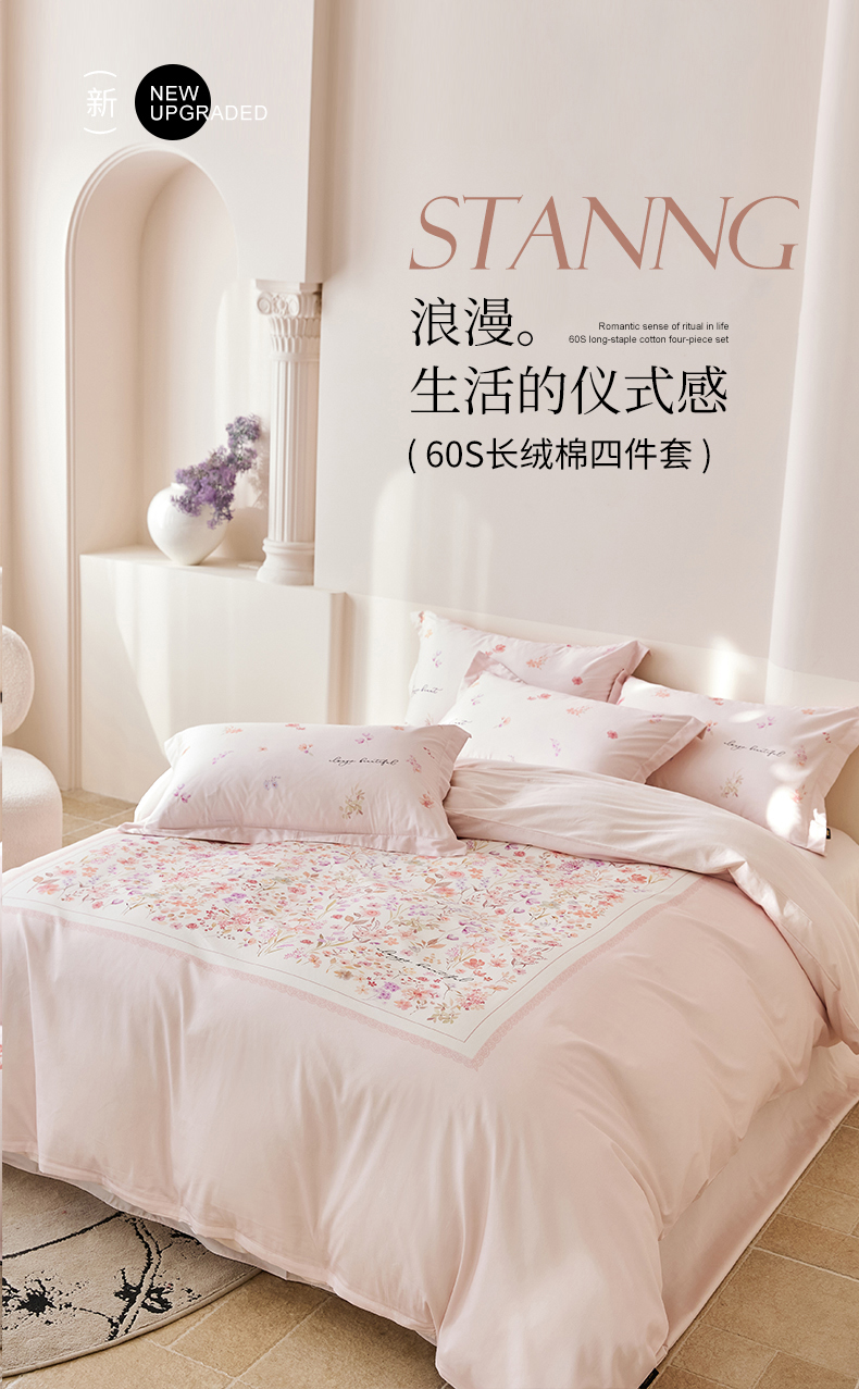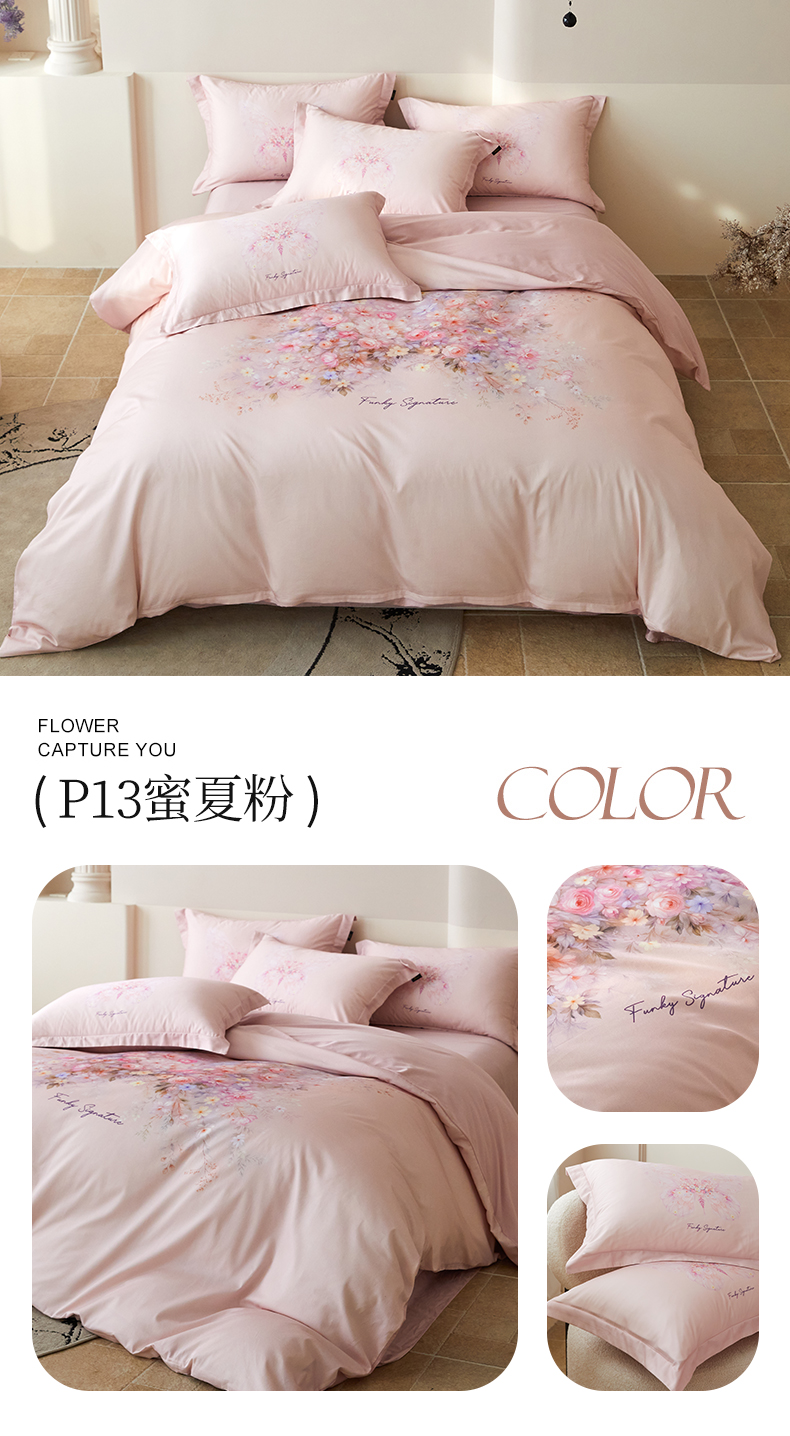 【品牌直发】加倍生活 60支长绒棉纯棉平网大版印花四件套-烟雨江南系列 20色可选 床单款床笠款可选