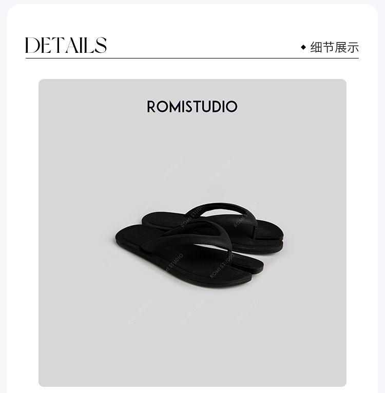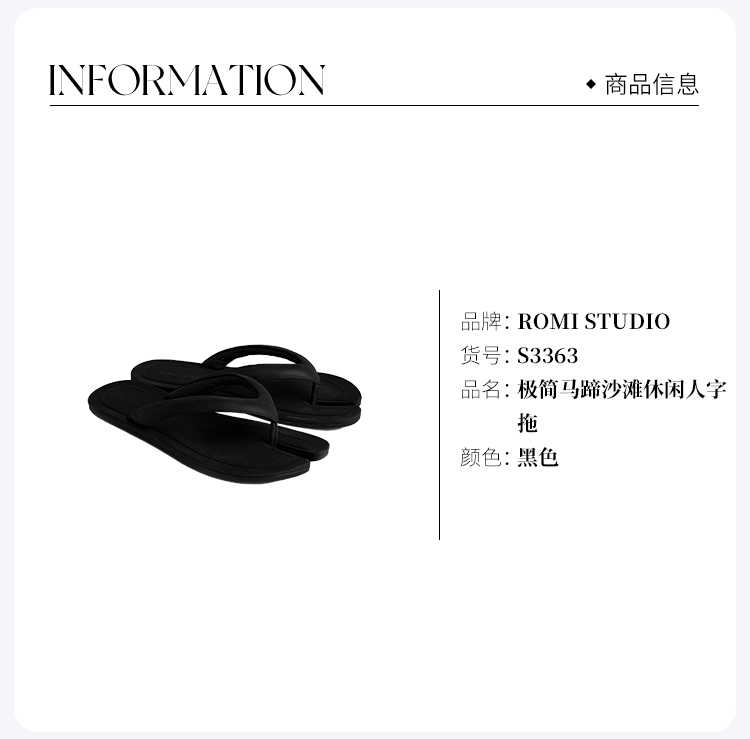 ROMI STUDIO"极简设计" 马蹄沙滩休闲人字凉拖夹趾黑色拖鞋 S3363