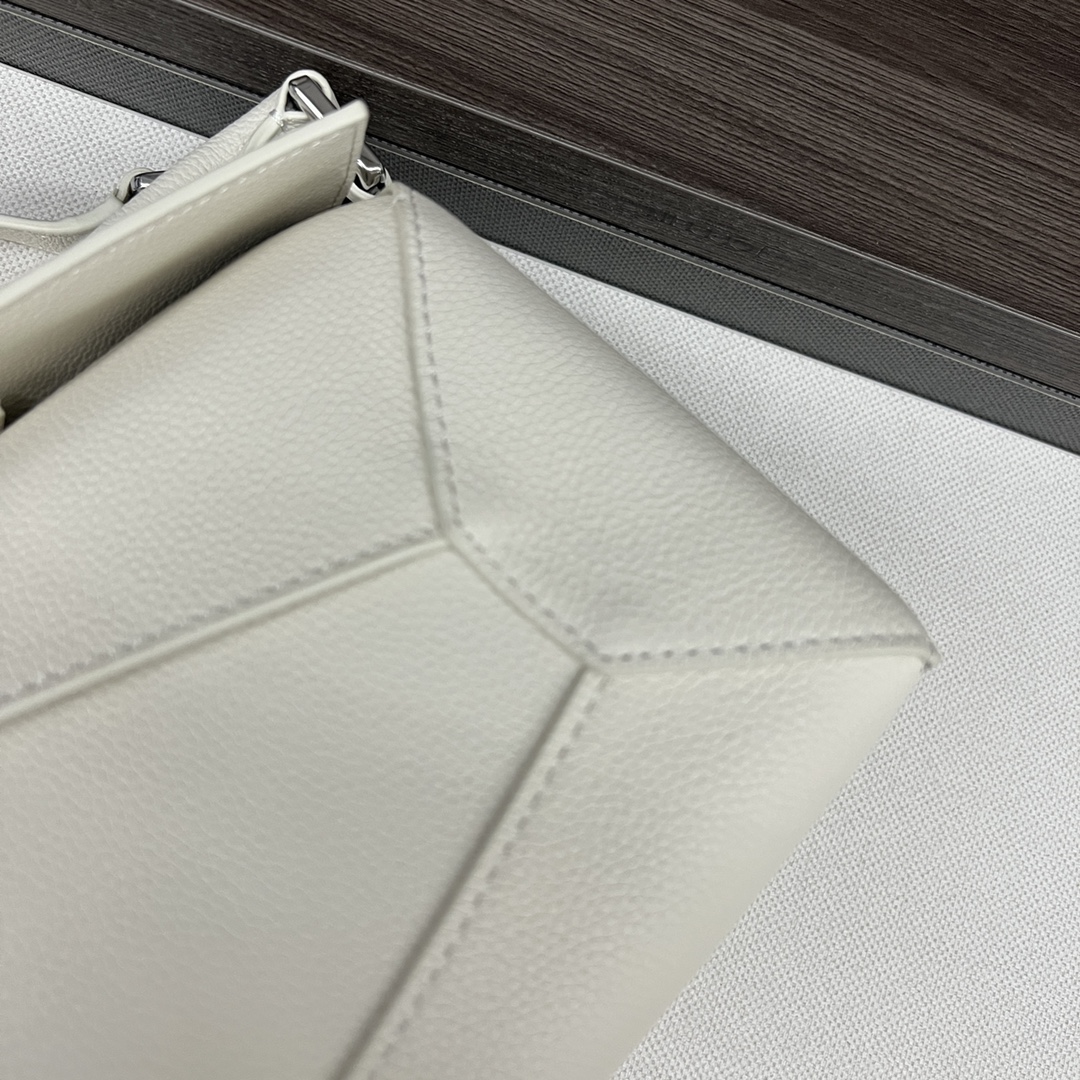 𝑳家 推出的首次亮相手提包*长方体形状和精确的切割技术创造了 Puzzle 独特的几何线条*此小号版本采用柔软牛皮革制成,饰有重叠边缘。小号Puzzle可以容纳例如一只大号钱包,所有尺寸的手机和太阳镜,肩背或斜挎*手拿或顶部提手携带*肩带可调节,可拆卸*一个内部插袋和一个外部后方拉链口袋*拉链开合带牛皮革拉链头*人字纹棉质帆布衬里Anagram 压纹