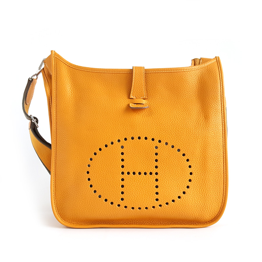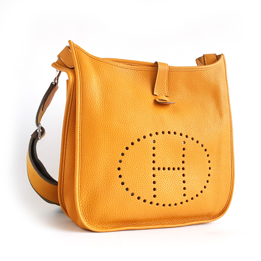 【95新】Hermes爱马仕黄色银扣Evelyne伊芙琳29单肩斜挎包女士111225NJS24