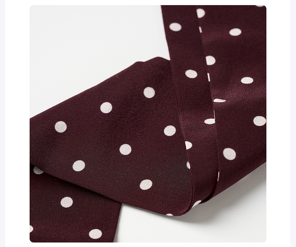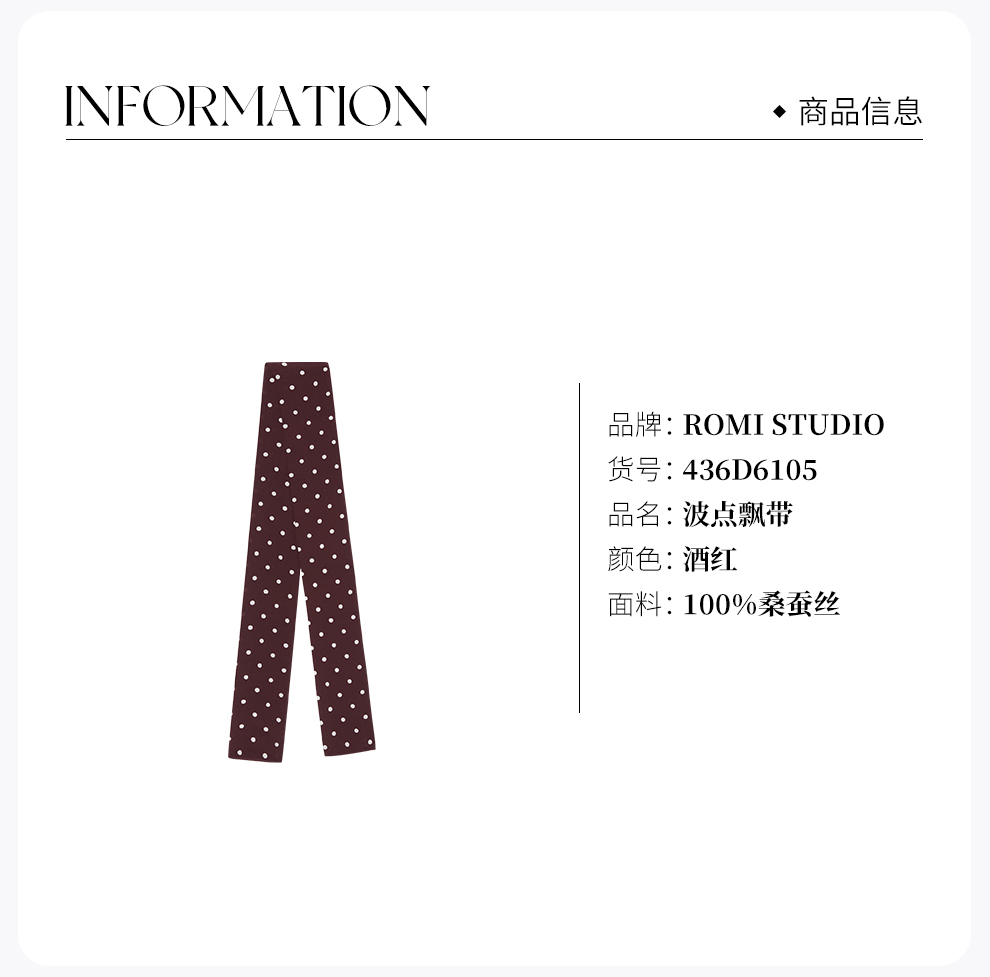 ROMI STUDIO“法式优雅”100%桑蚕丝红白波点系脖发带飘带 436D6105