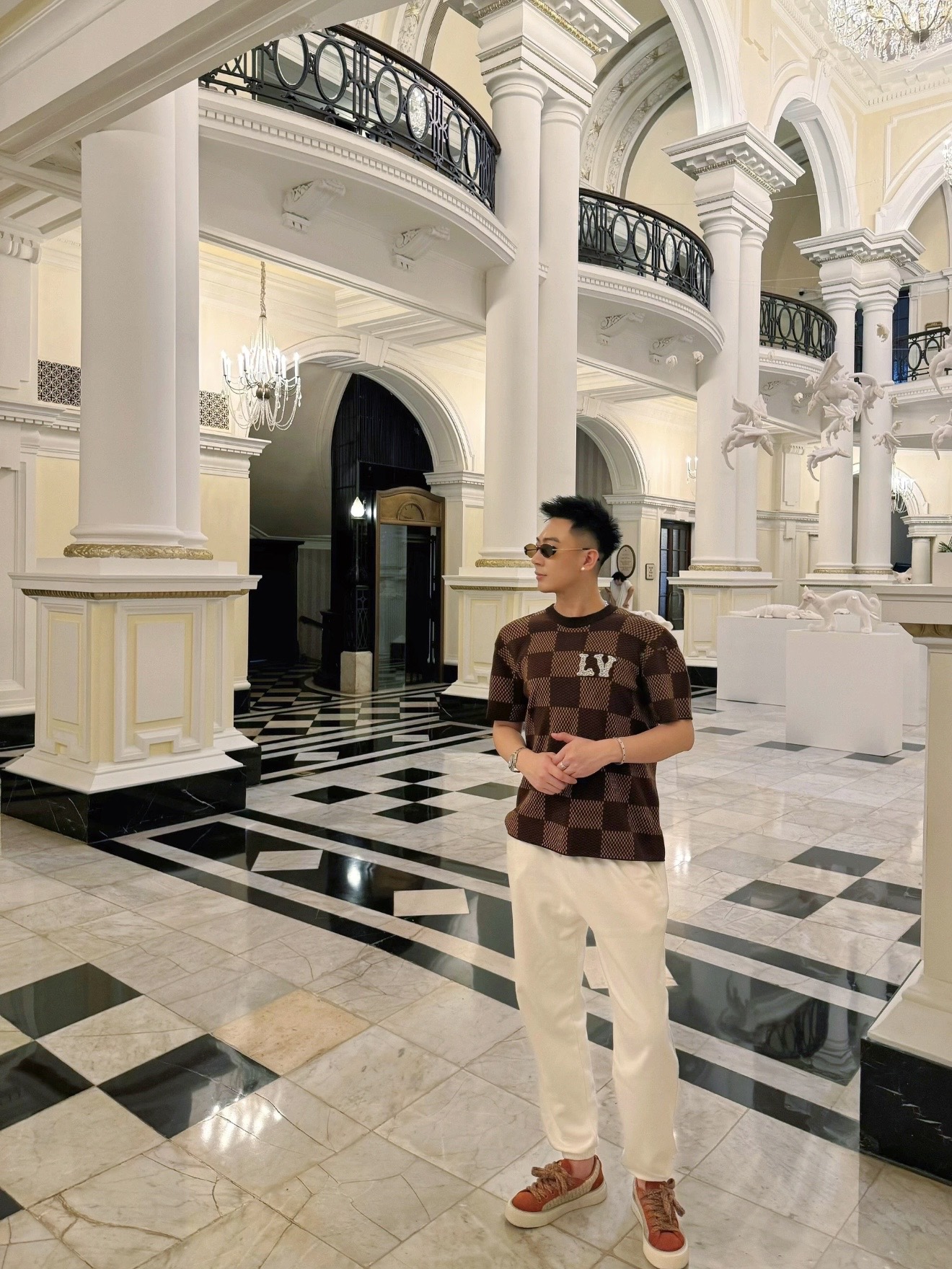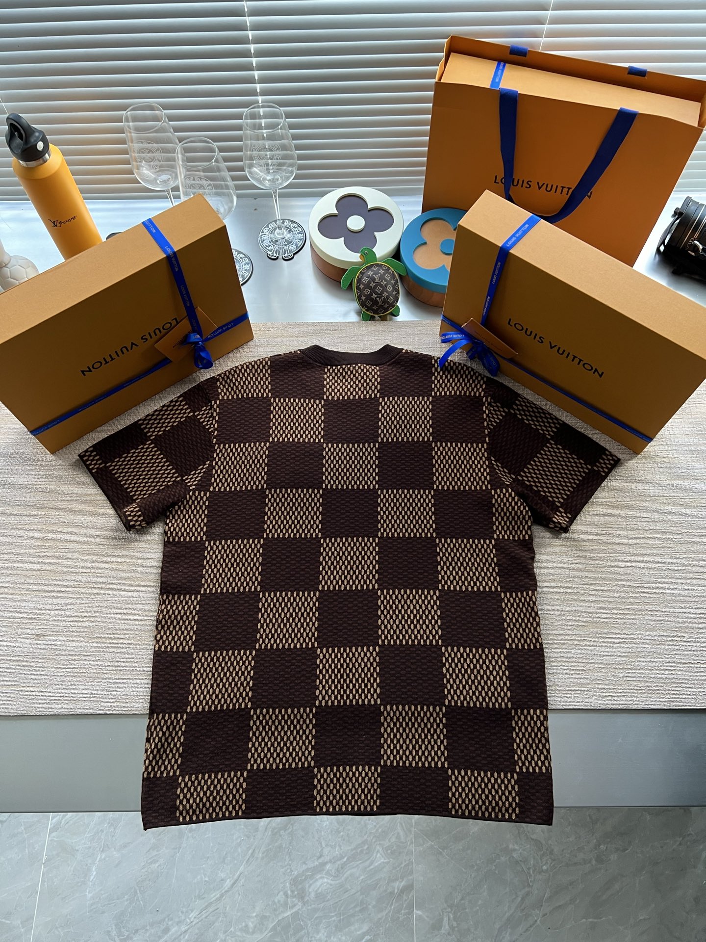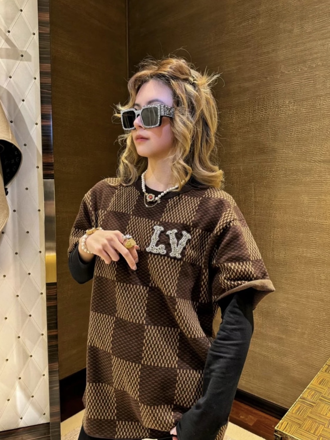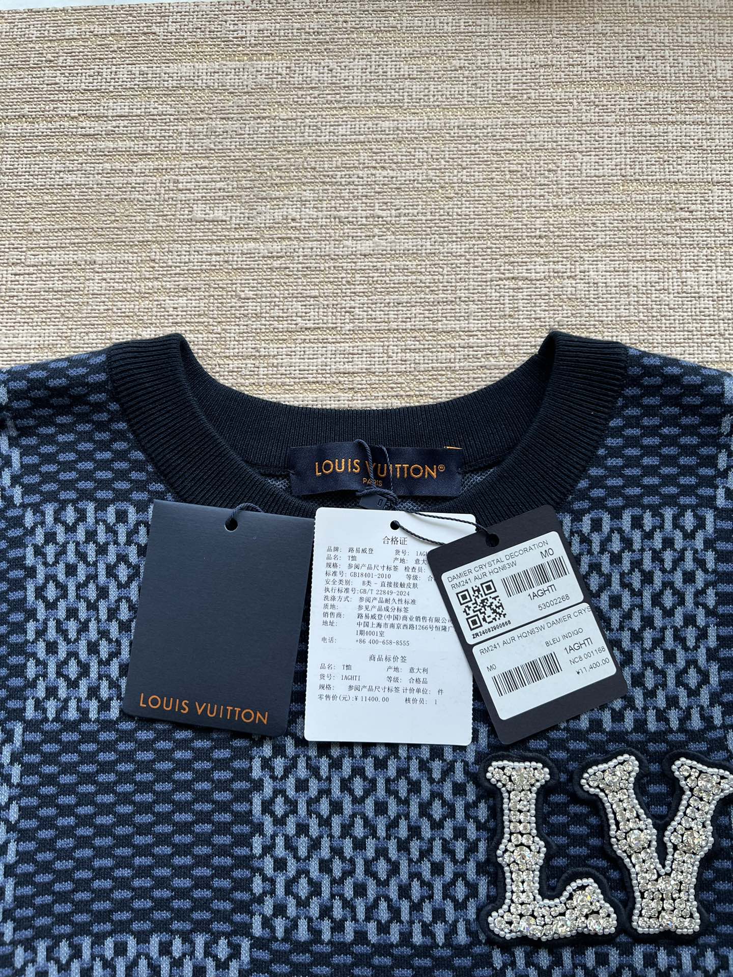 Louis Vuitton25ss镶钻logo棋盘格针织短袖‼️整件衣服11400购买ZP拆解打造,采用定制棉质针织面料,做到100%全棉进口纱线,胸前刺绣LV字母水晶刺绣贴饰,定织标志性罗纹领口,超紧密度局部编织,真正做到1:1copy 码数:XS S M L