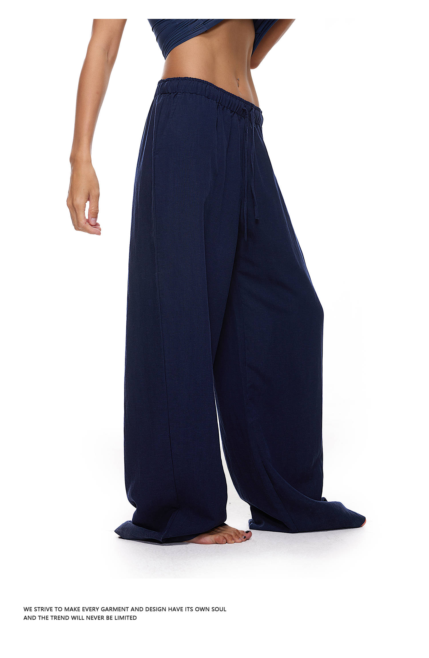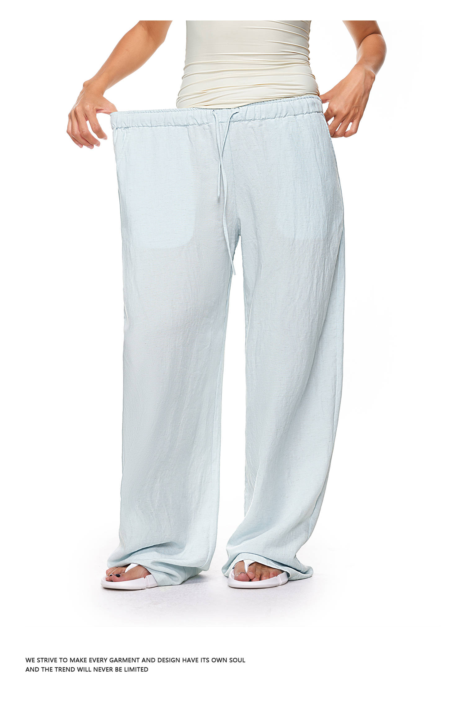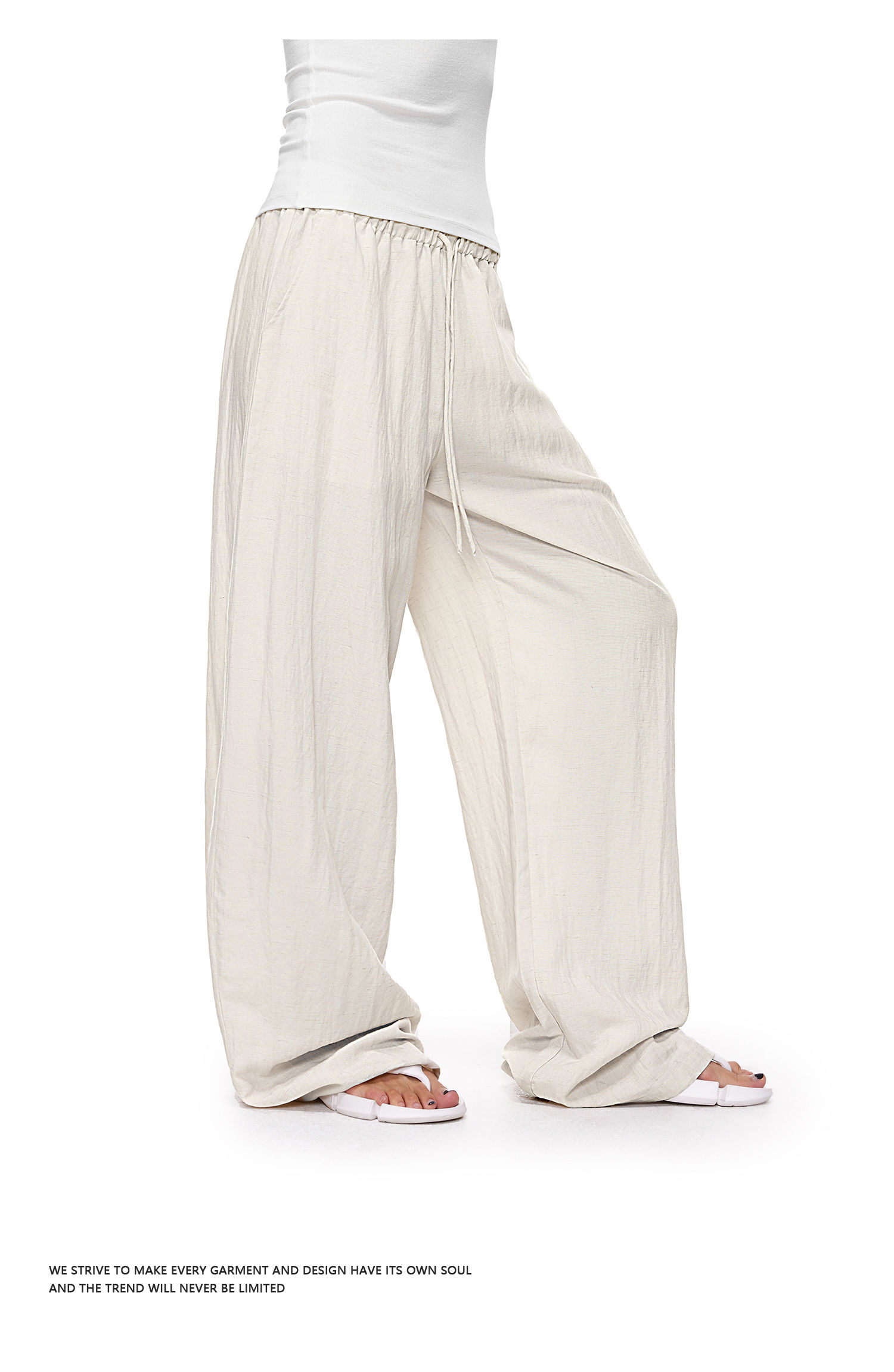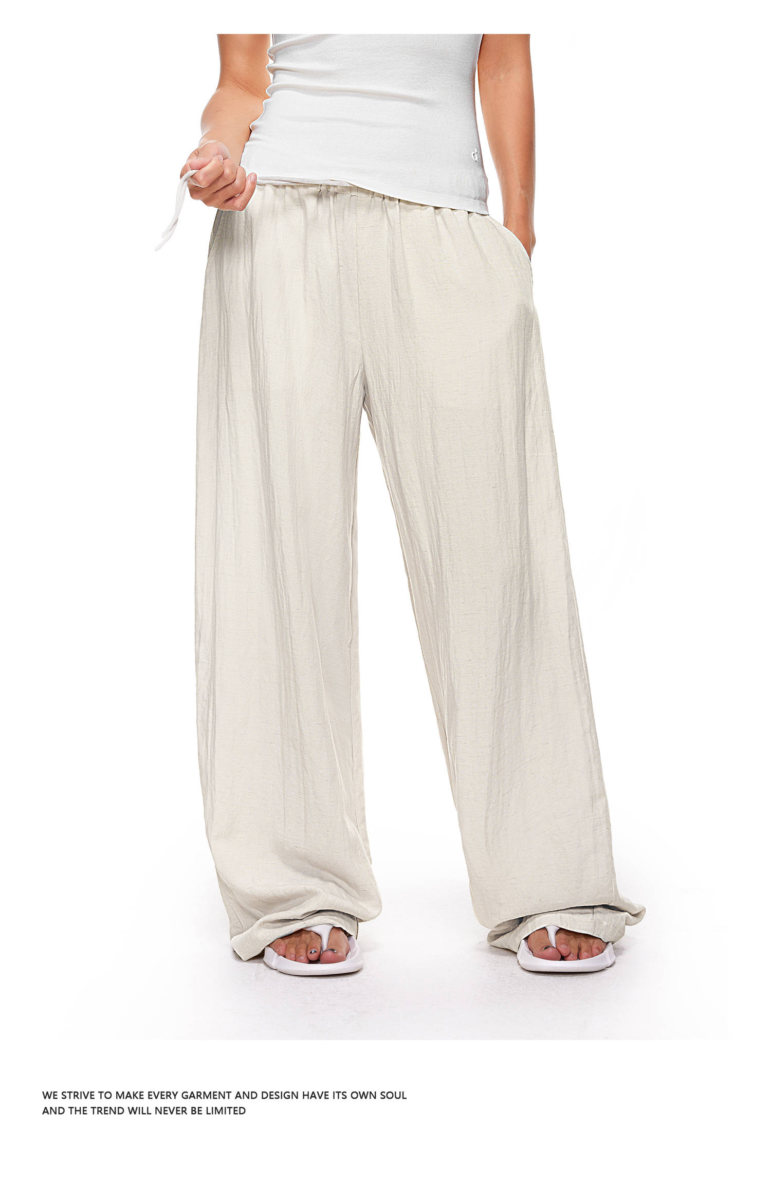【178元任选3件】FDR官方店 凉感天丝麻透气休闲裤女低腰垂感阔腿裤宽松直筒长裤子