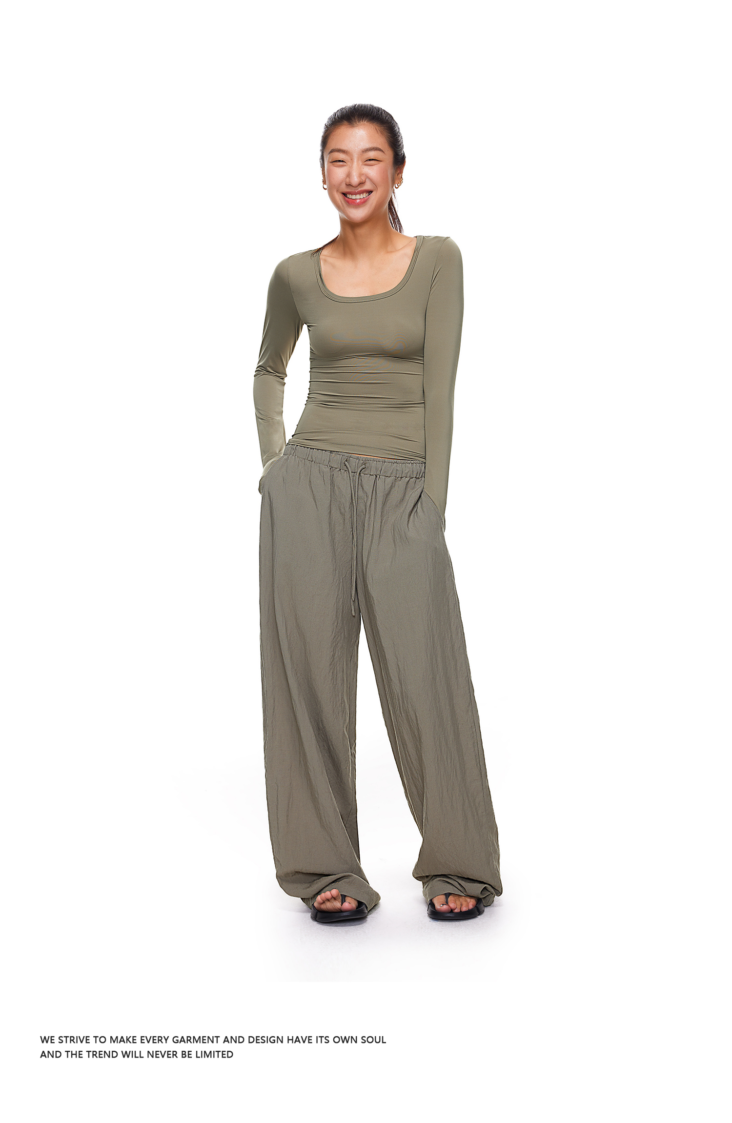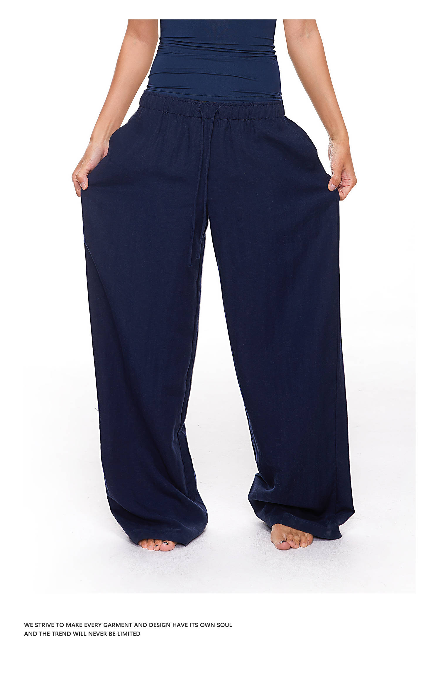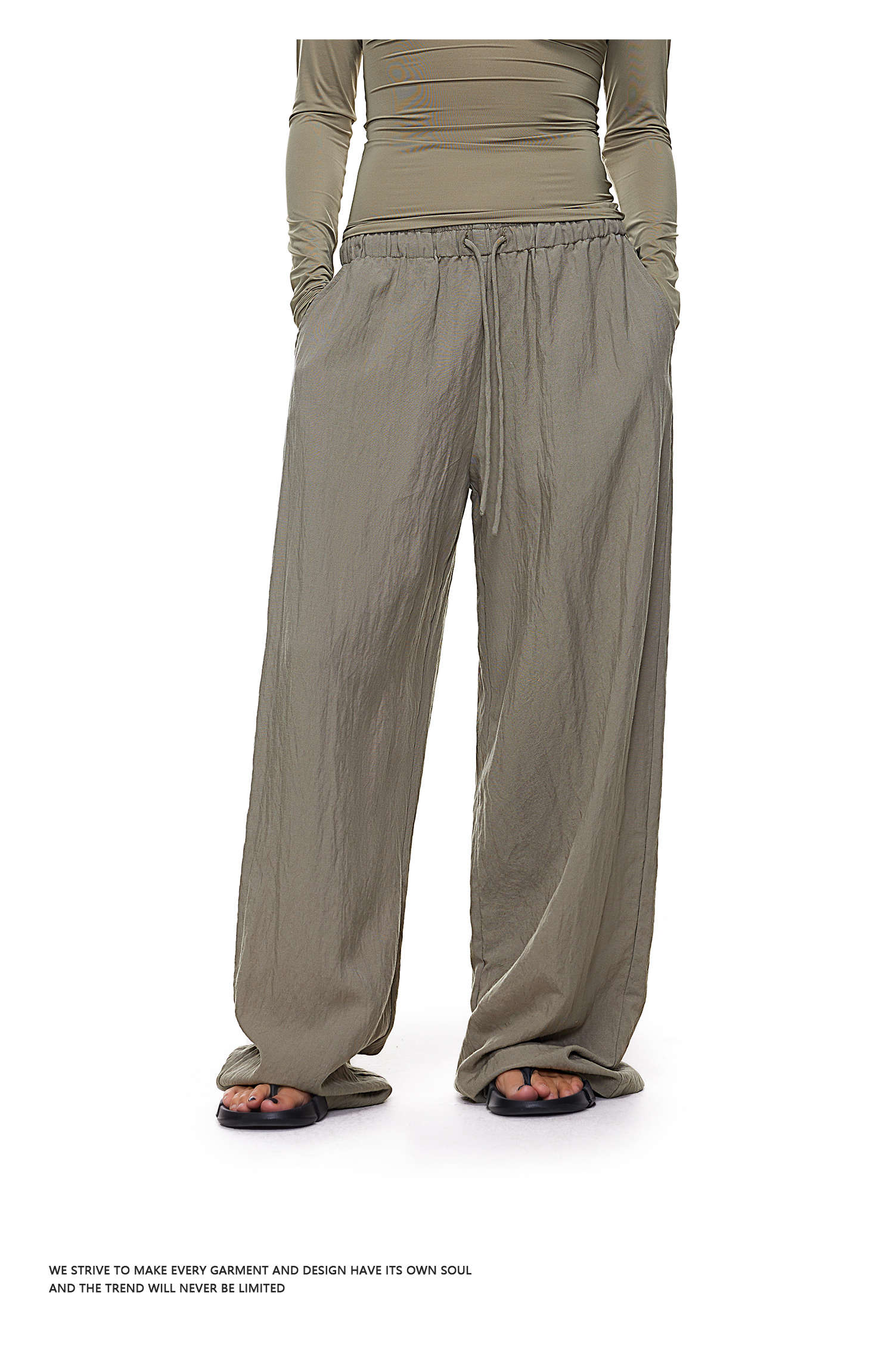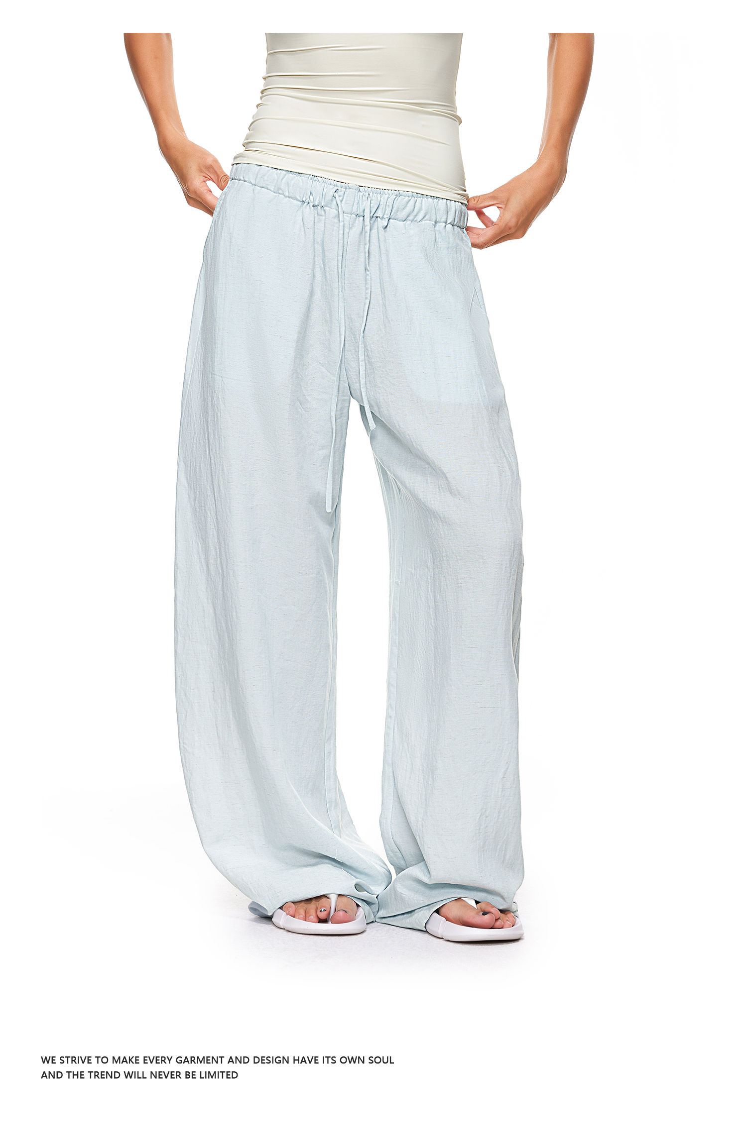 【178元任选3件】FDR官方店 凉感天丝麻透气休闲裤女低腰垂感阔腿裤宽松直筒长裤子