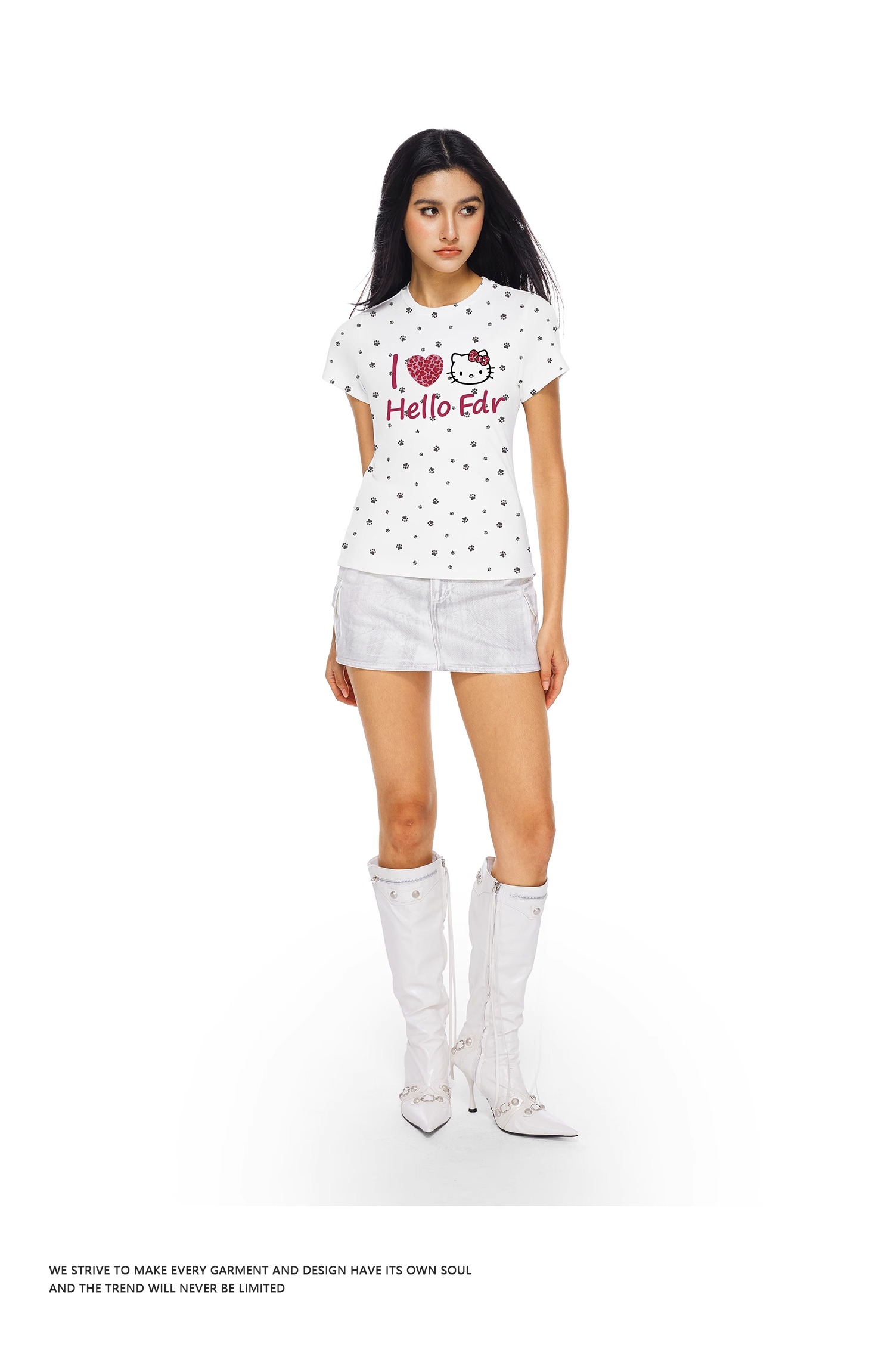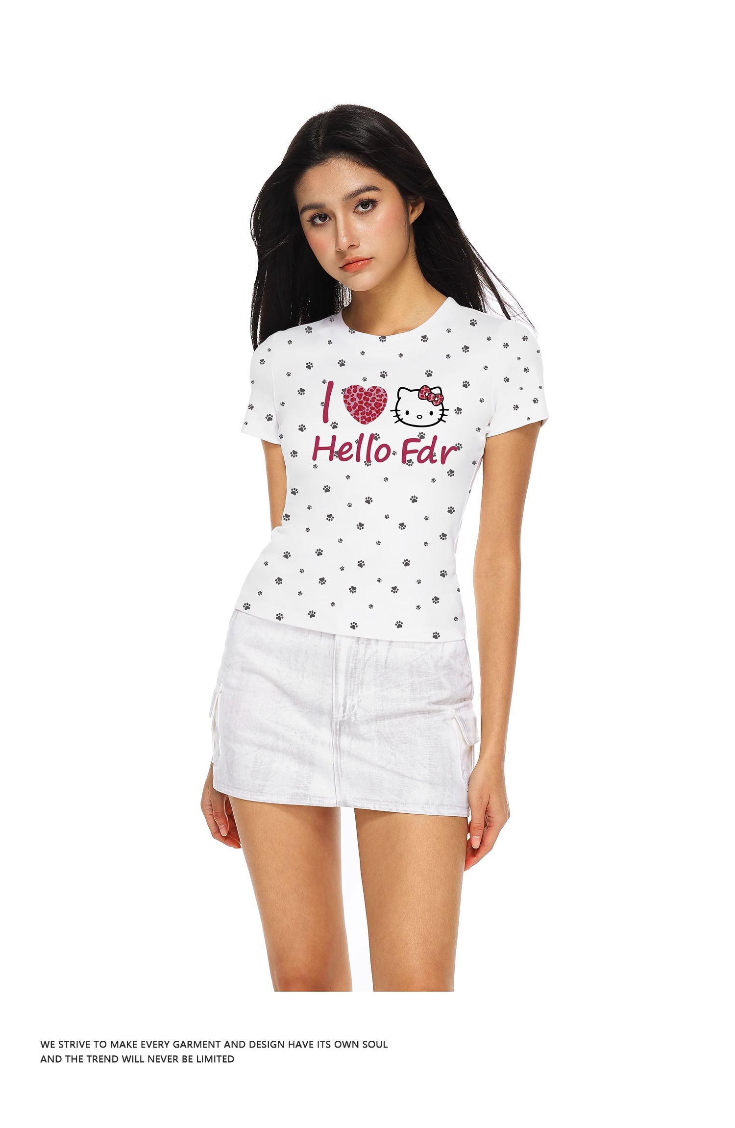 FDR官方店 美式爱心豹纹狗爪满印辣妹短袖T恤女夏季修身显瘦上衣