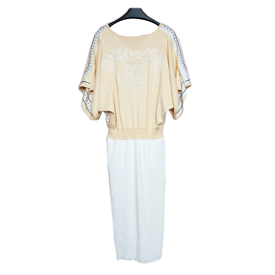 款式 | 浅黄拼白色短袖印花twillaine连衣裙长裙 |