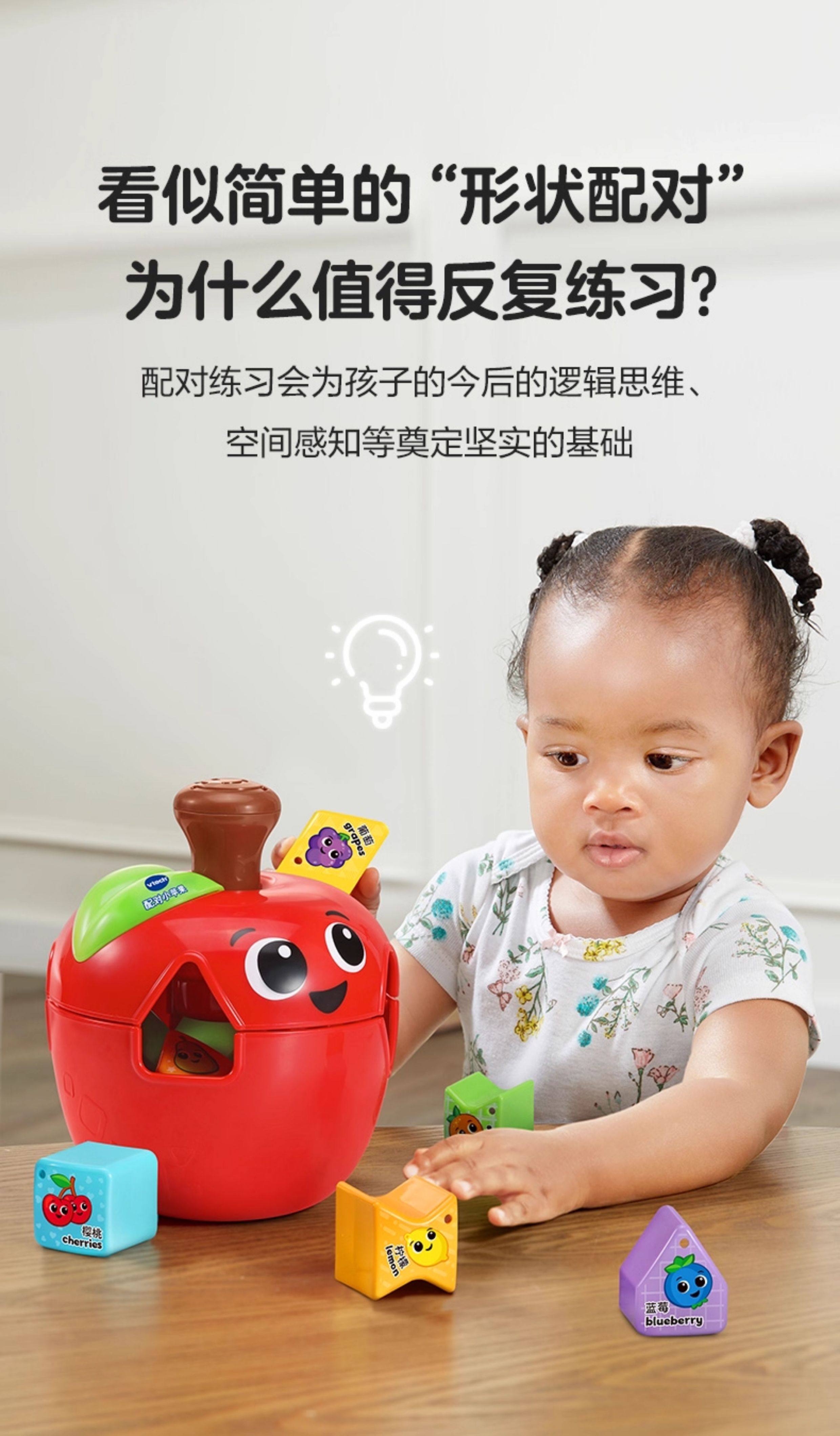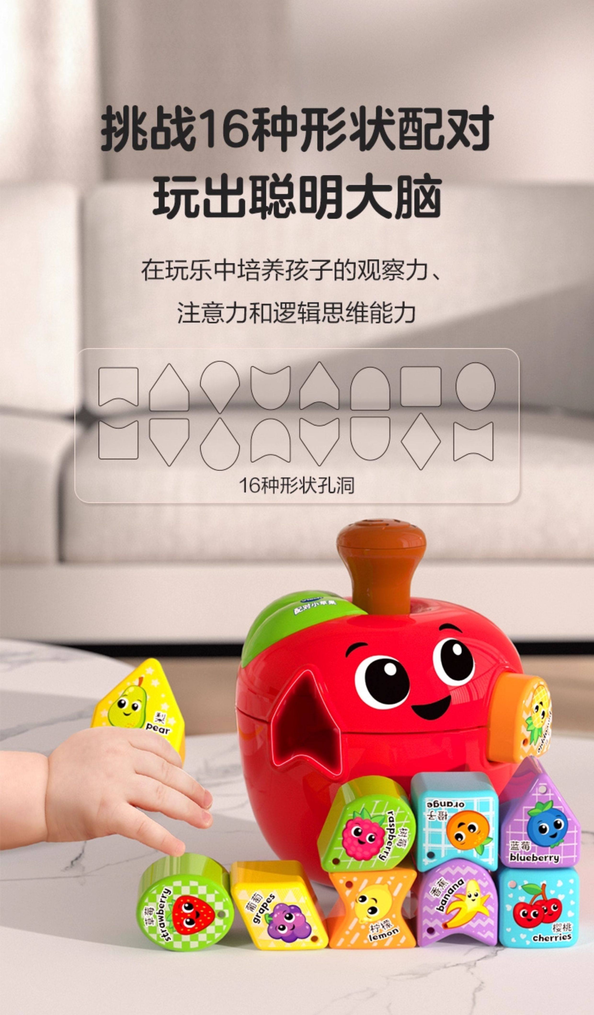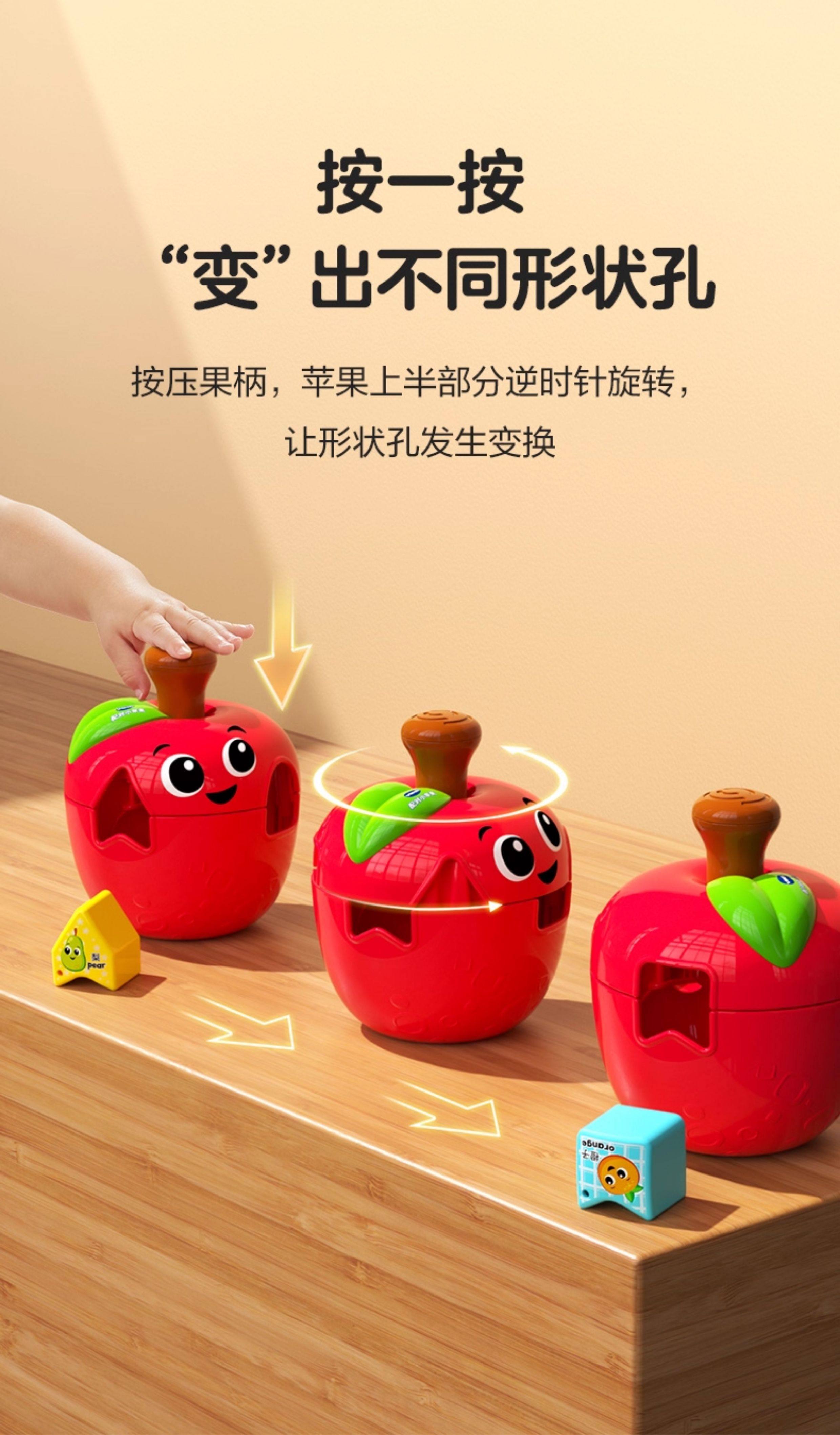 伟易达苹果几何形状配对积木盒子宝宝开关思维早教益智玩具1一2岁