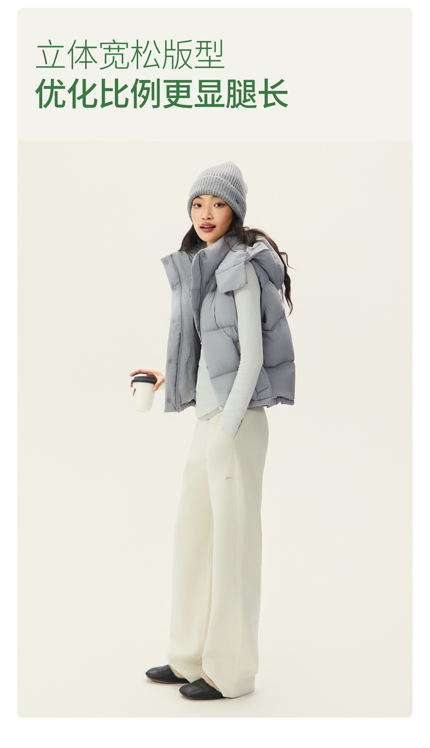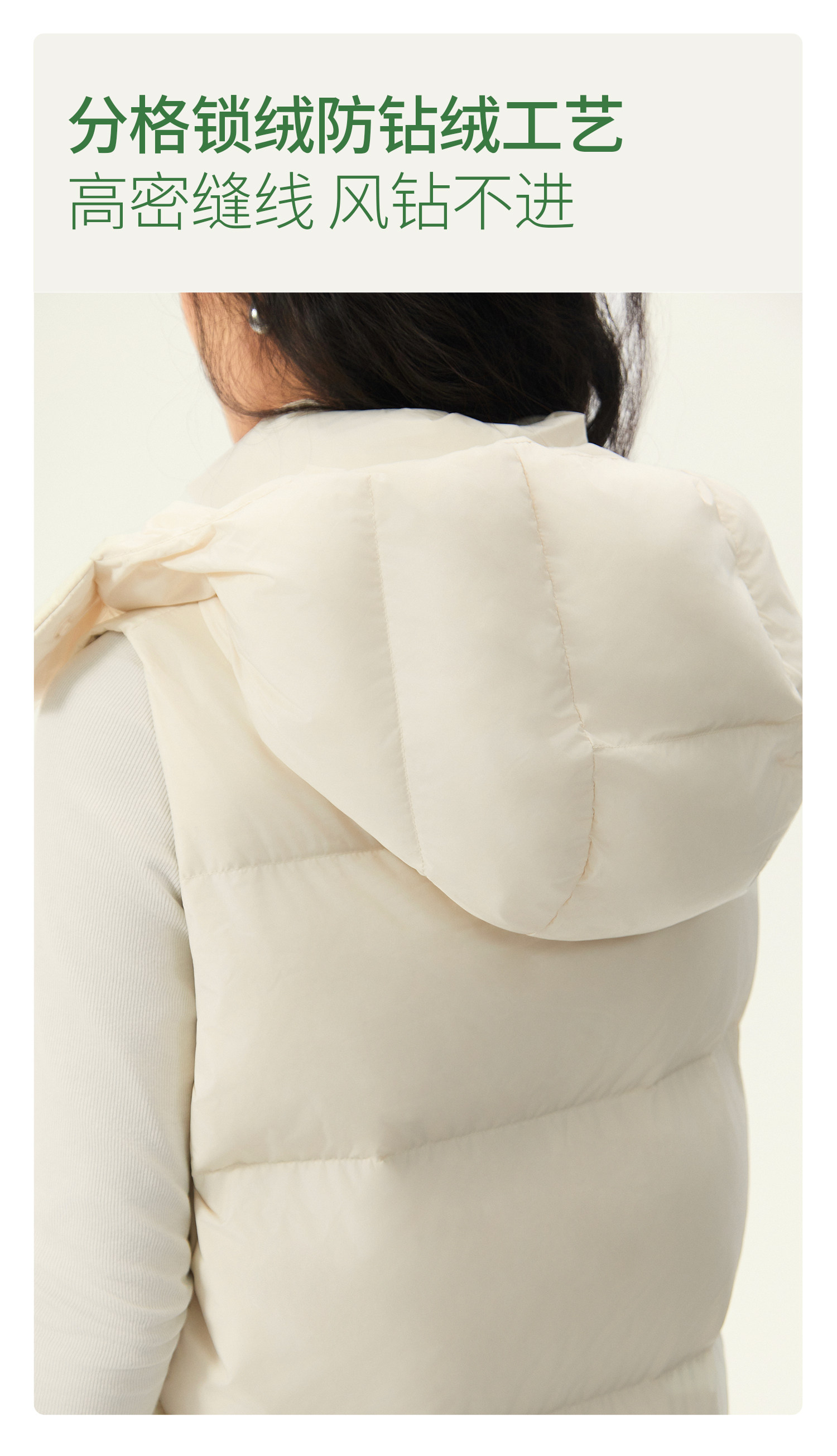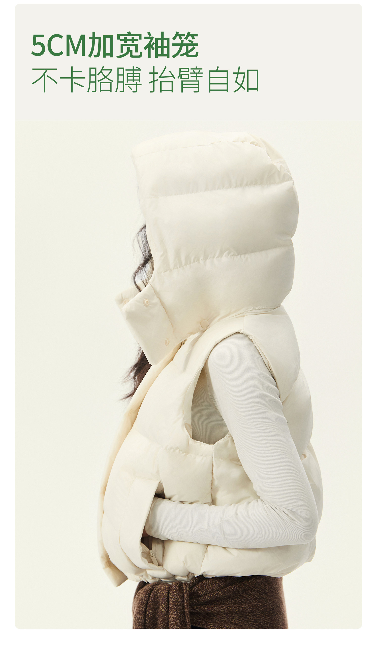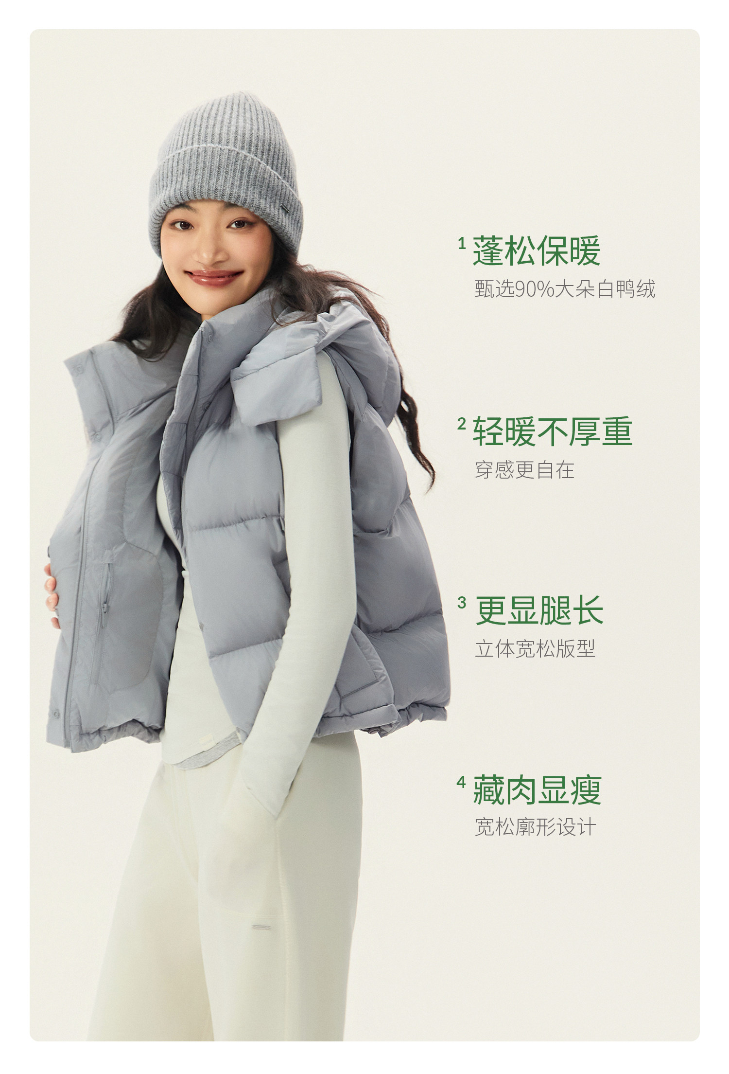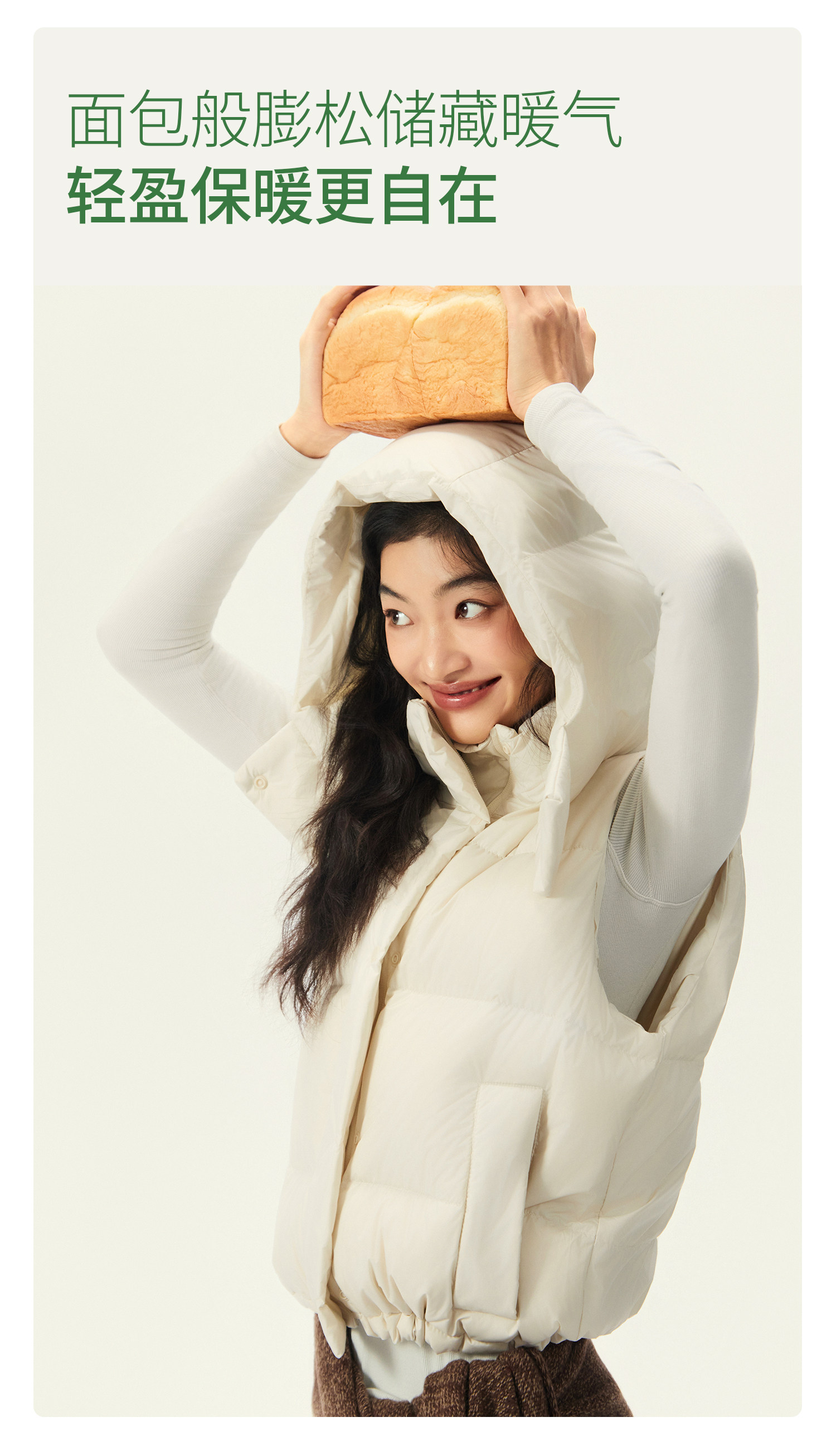 YOTTOY 90白鸭绒云朵面包羽绒马甲女宽松轻薄保暖棉服外套连帽冬