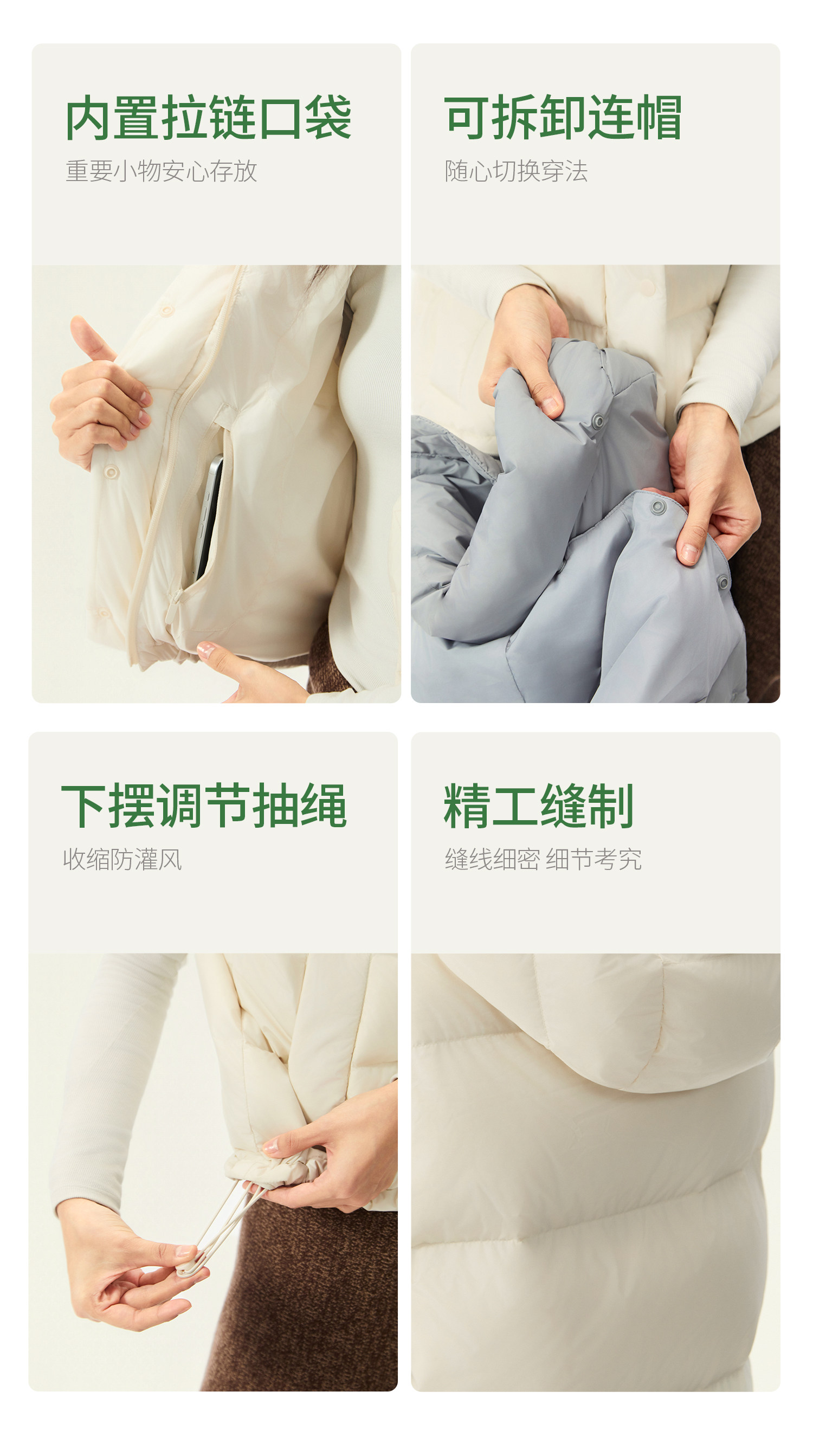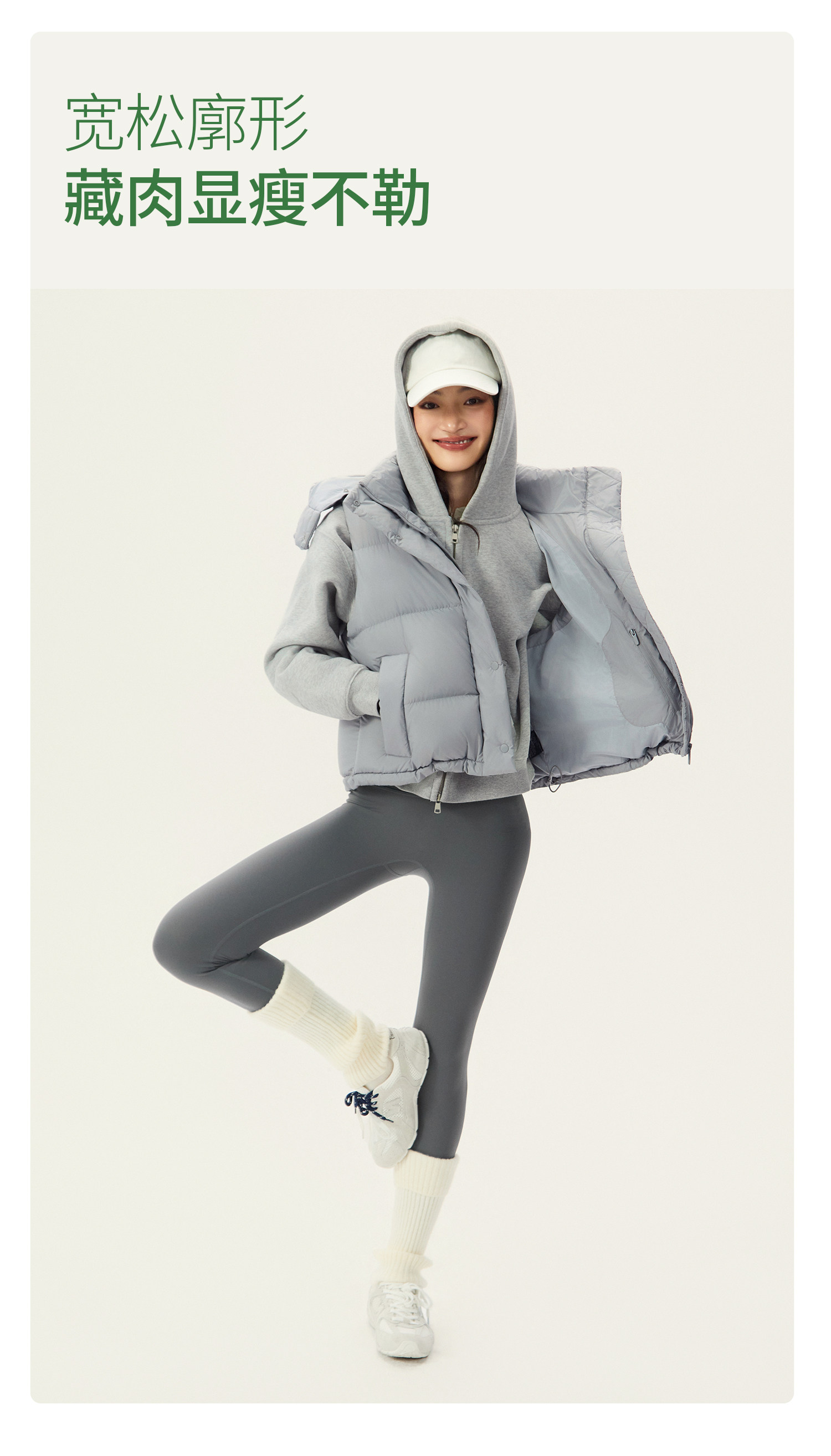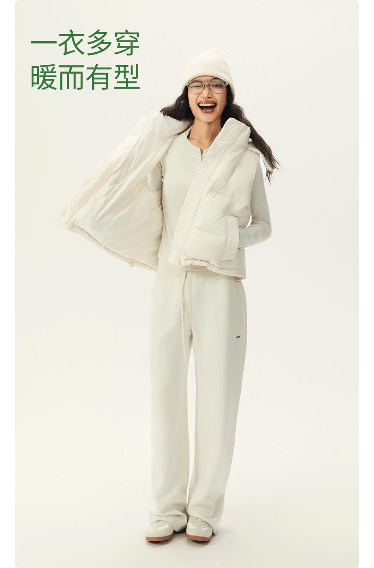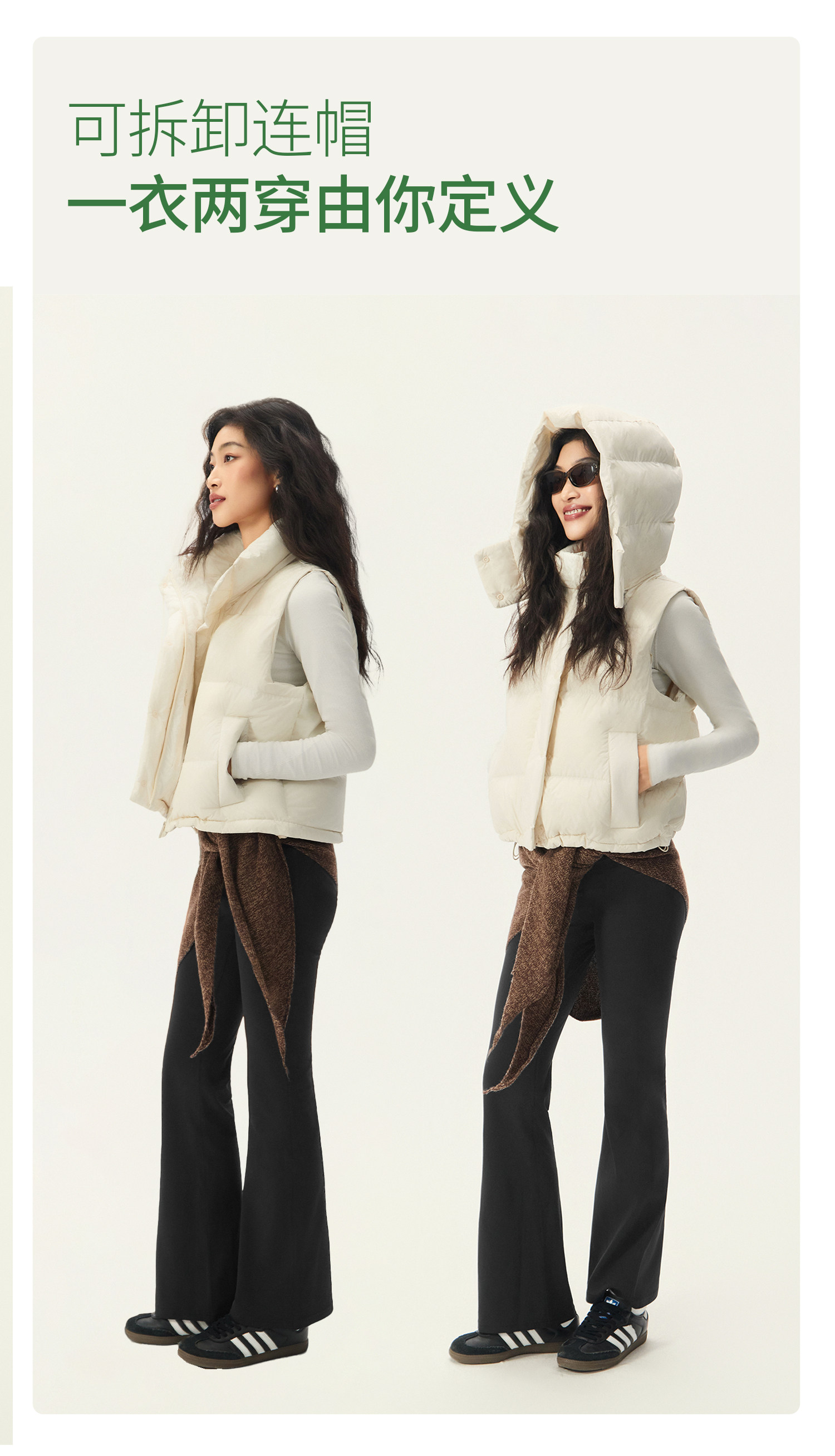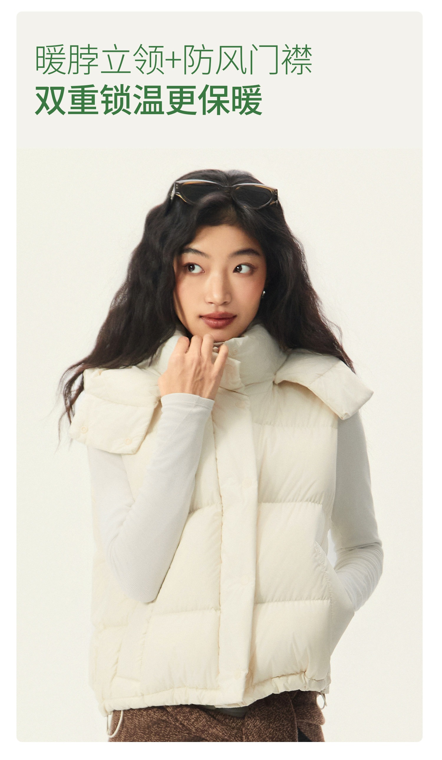 YOTTOY 90白鸭绒云朵面包羽绒马甲女宽松轻薄保暖棉服外套连帽冬