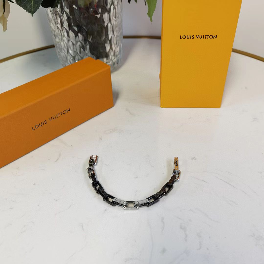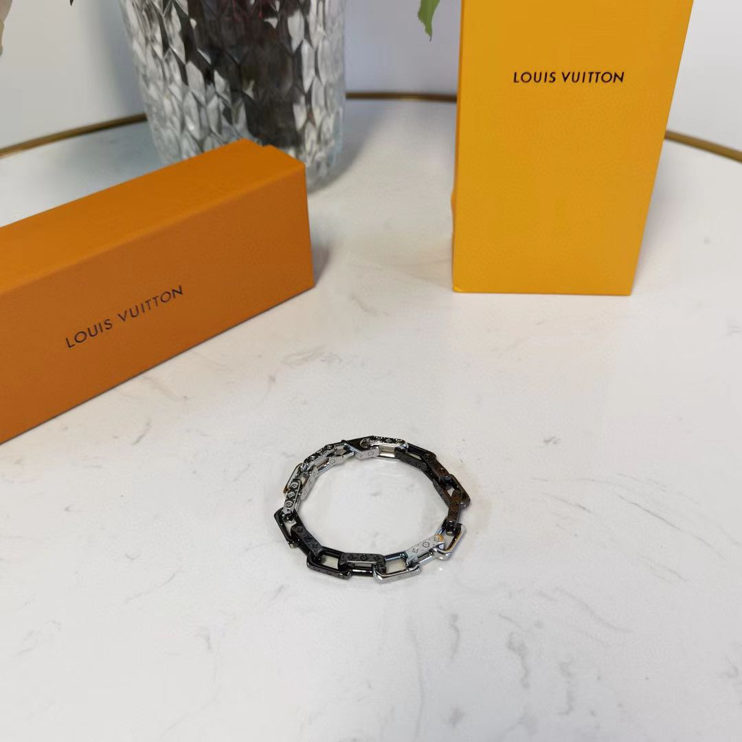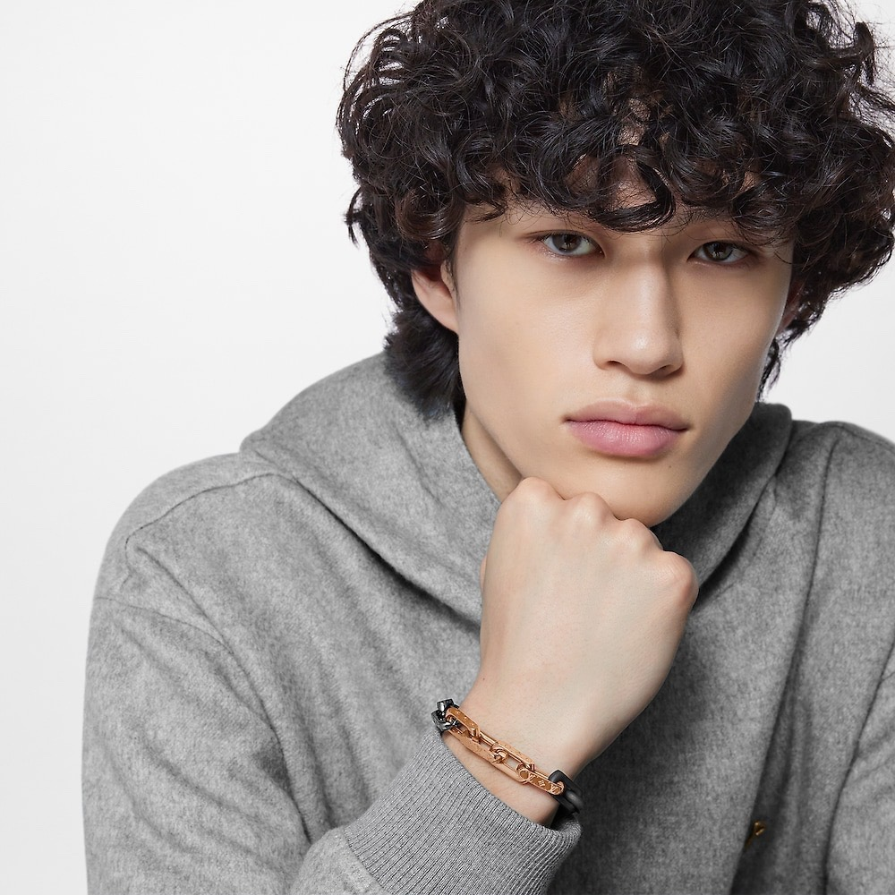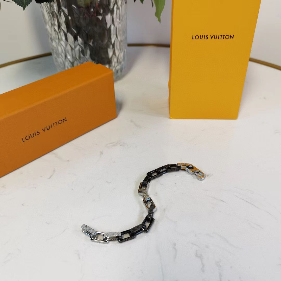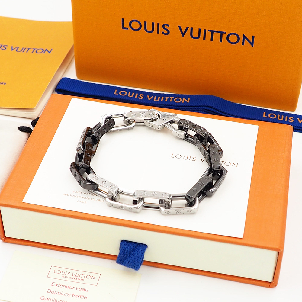 驴家本款Monogram Chain 手链为不锈钢链环细腻镂刻经典Monogram 图案,跃动新季格调。单独佩戴或搭配同款项链皆宜。金属件间黑双色竹节手链。
