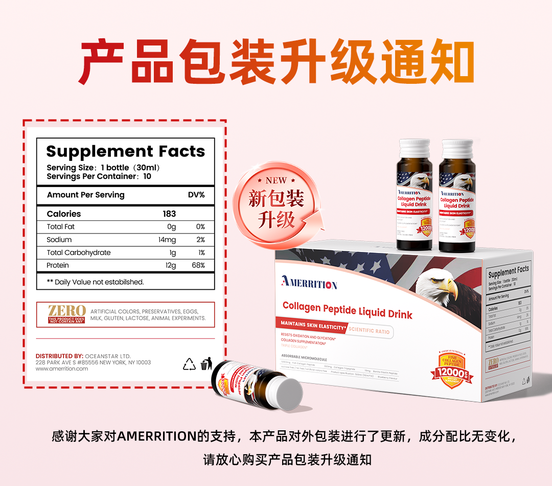 【9盒装】美国AMERRITION麦瑞绅坤胶原蛋白肽抗糖液态饮祛黄抗氧