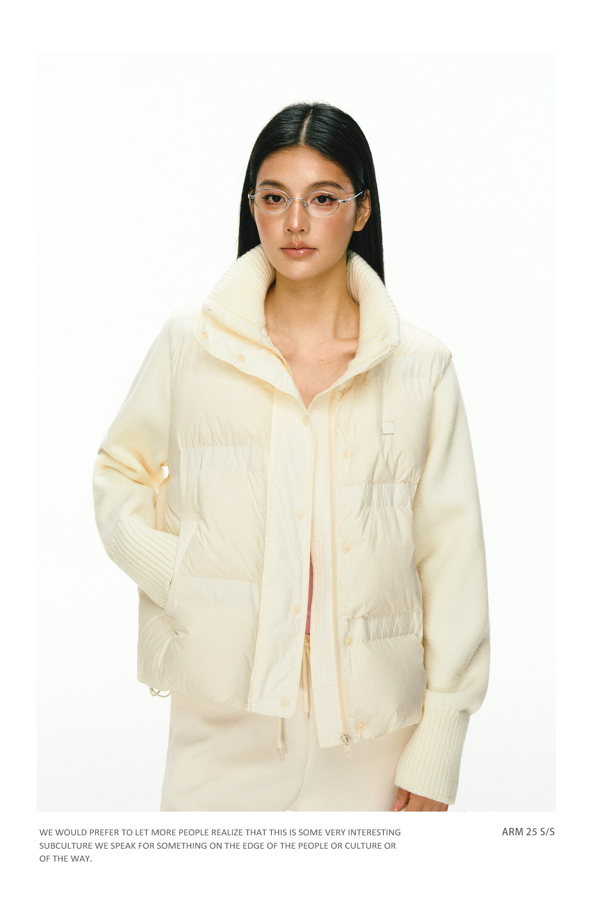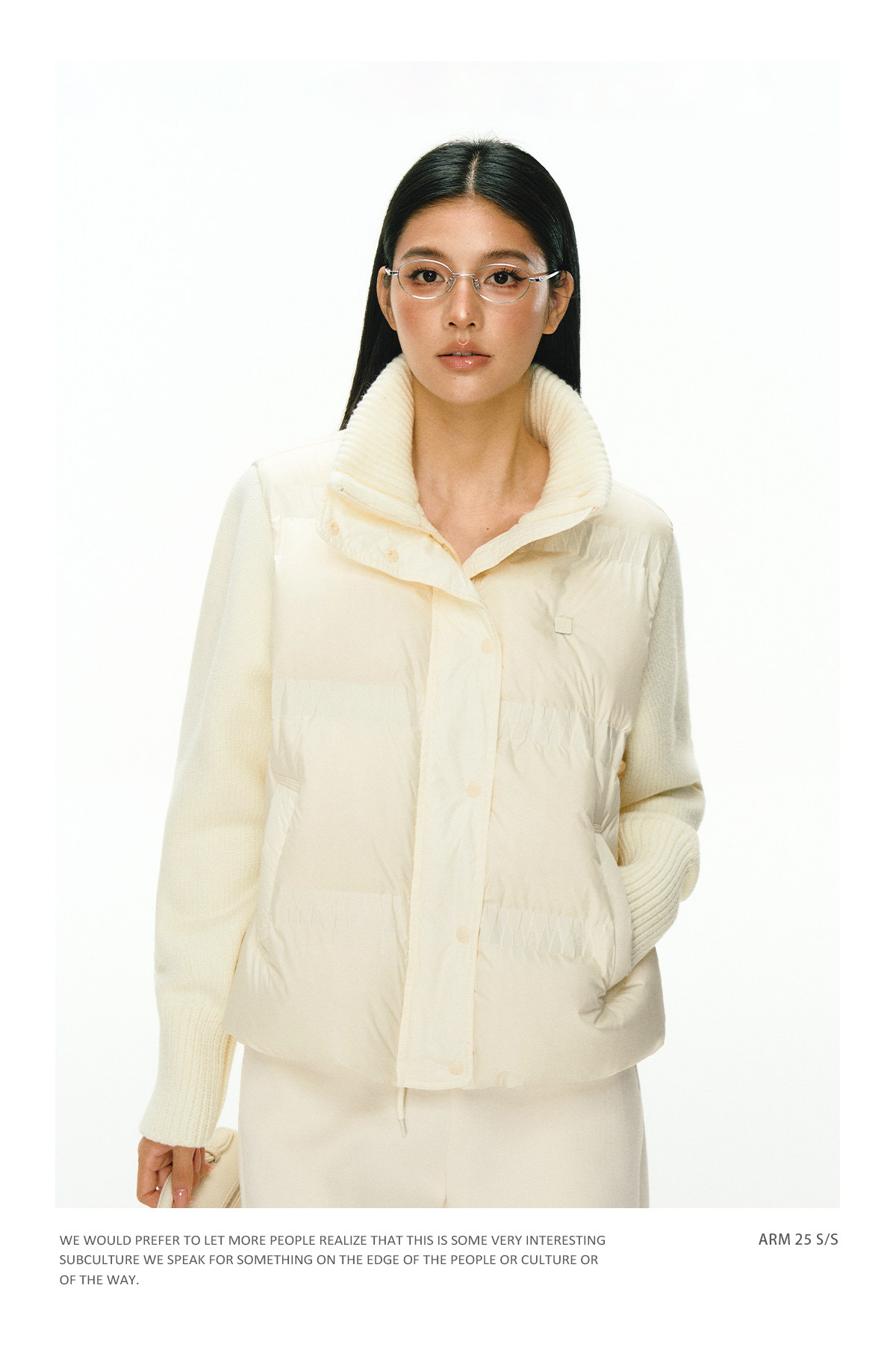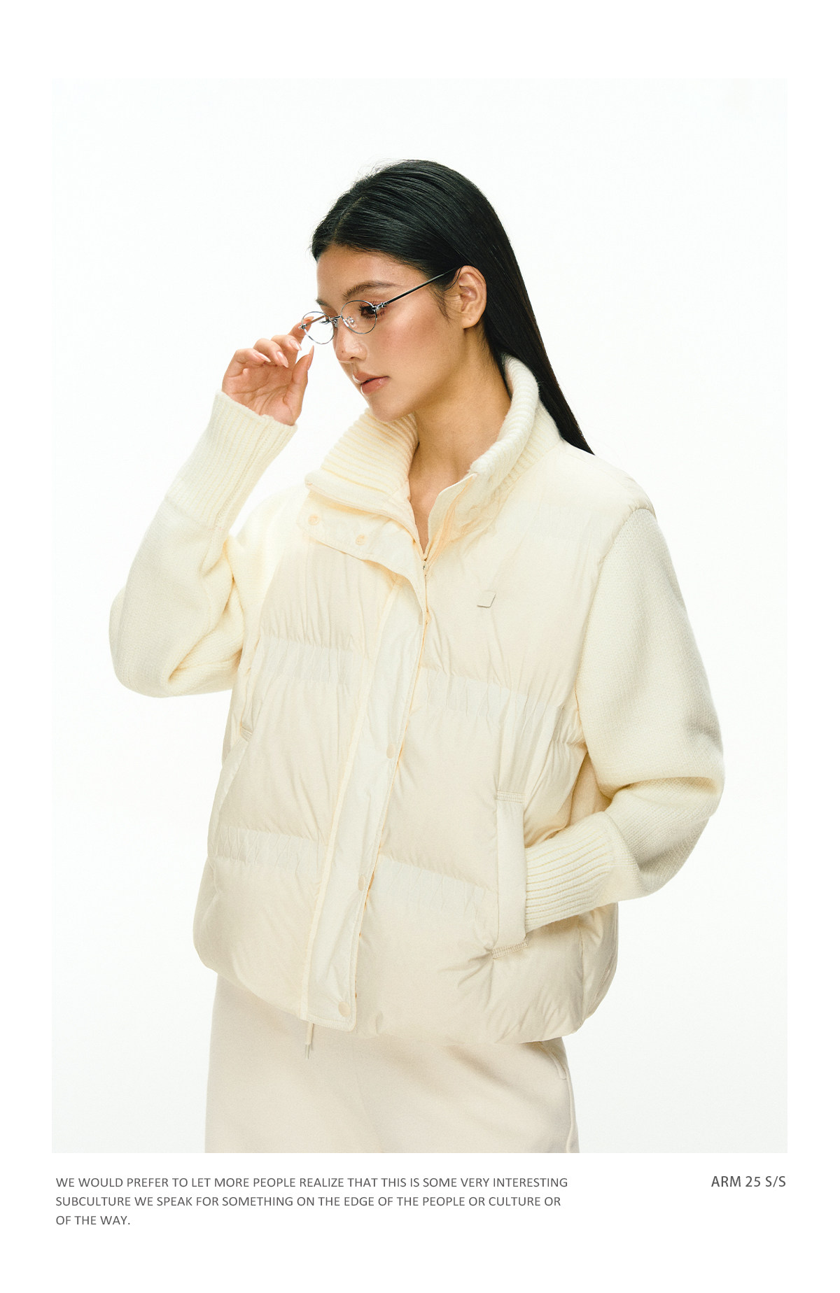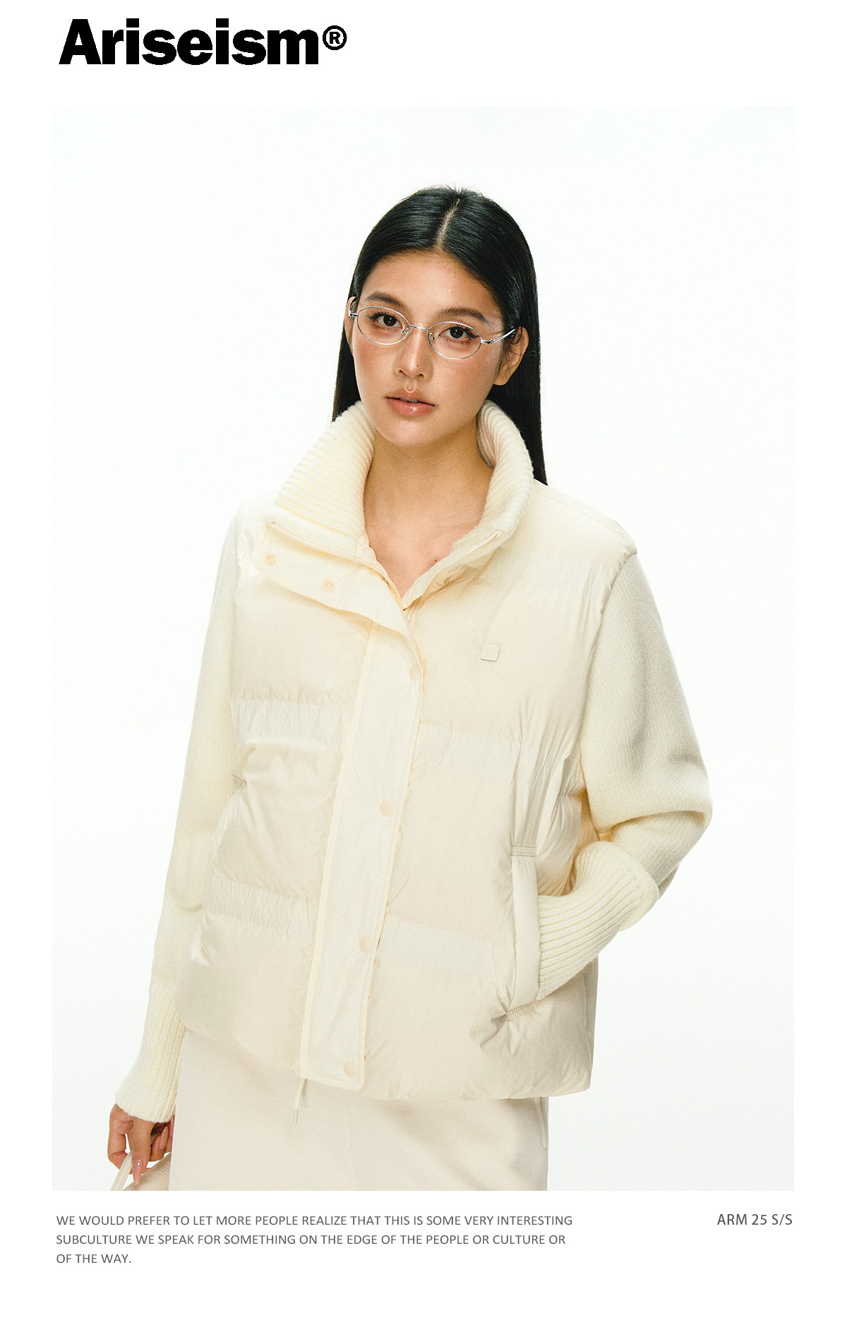 Ariseism 美式复古设计感拼接针织羽绒服女冬季新款保暖上衣外套