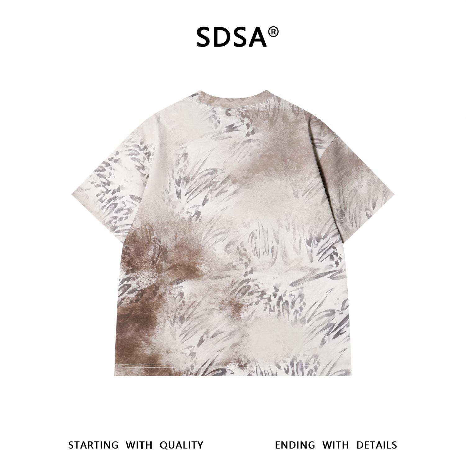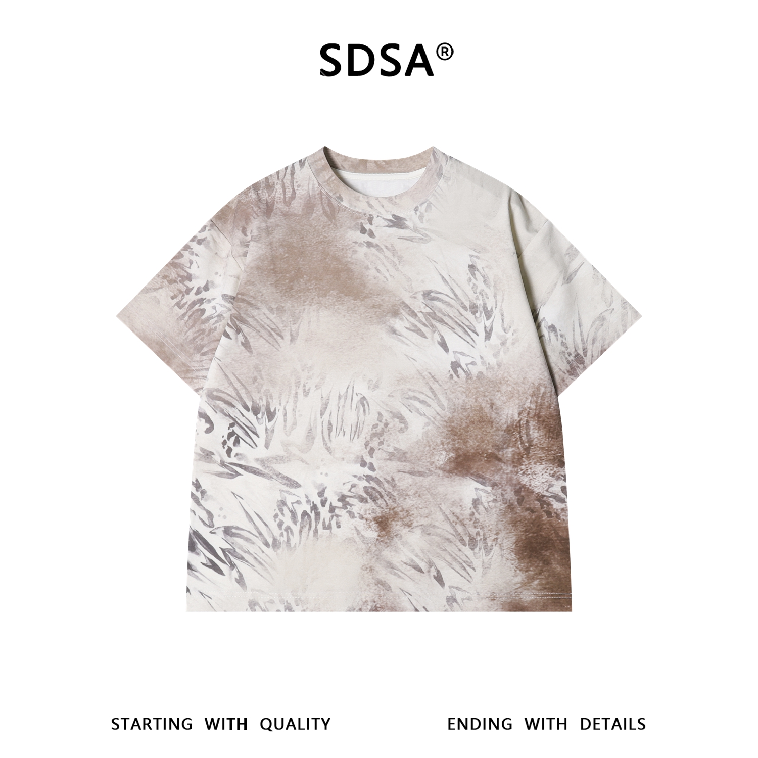 SDSA男装2026新款高贵轻奢国潮复古植物印花扎染圆领短袖T恤百搭