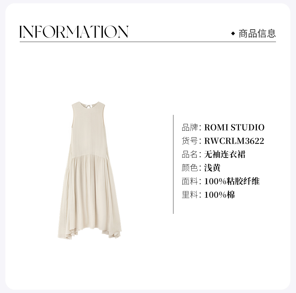 ROMI STUDIO“复古优雅”细斜纹不规则轻柔无袖连衣裙 RWCRLM3622【发货时间25-30天】