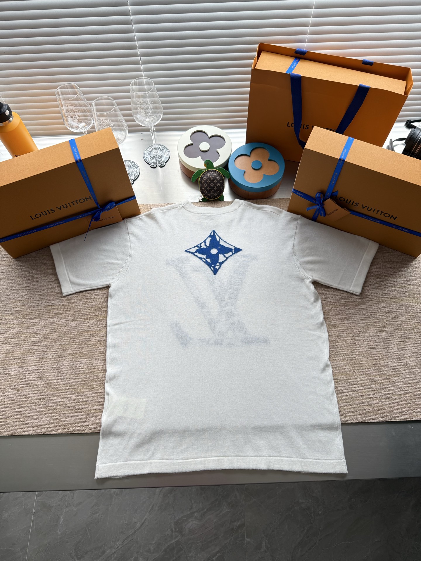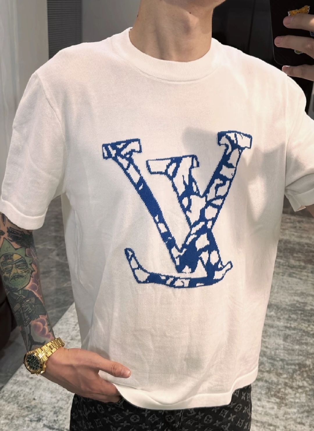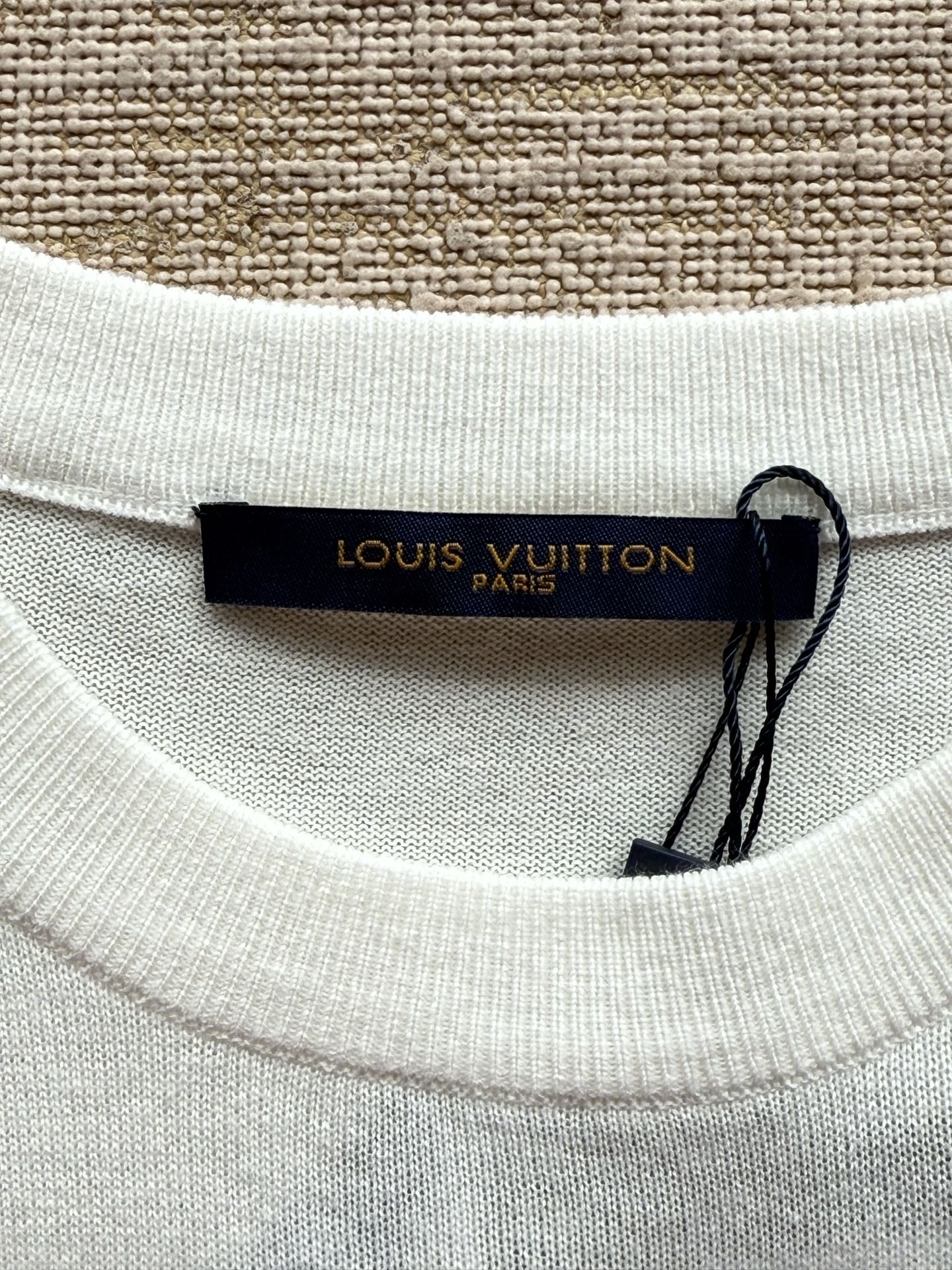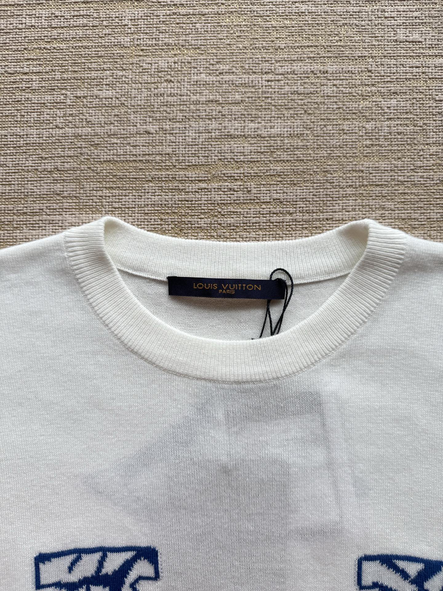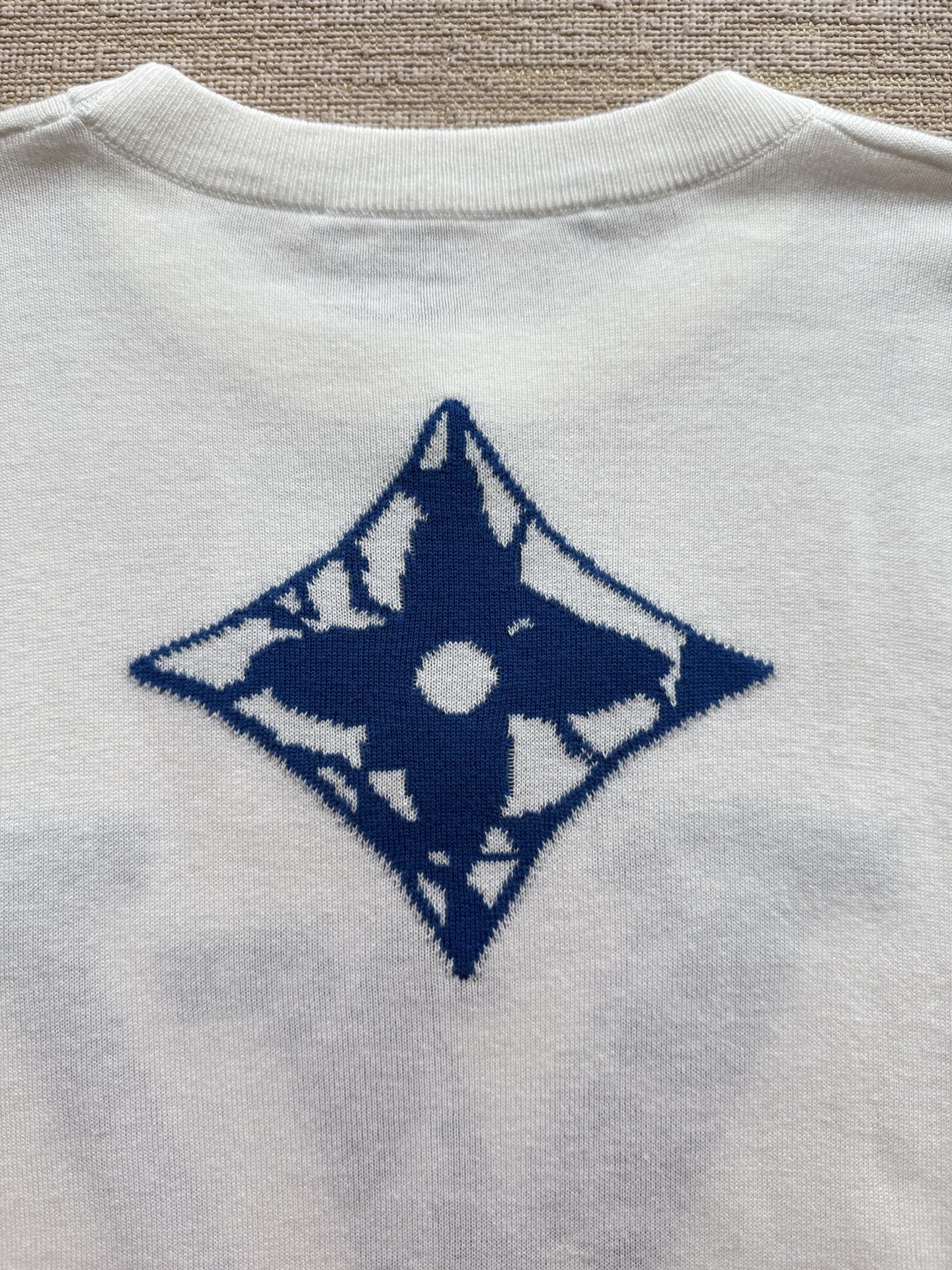 Louis Vuitton25ss滑雪系列裂纹提花针织短袖‼️整件衣服8850购买ZP拆解打造,采用定制白色棉质针织面料,做到100%全棉进口纱线,前幅饰以撞色裂纹提花,提花做到与面料融为一体,后幅饰以monogram花卉提花,定织标志性罗纹领口,超紧密度局部编织,真正做到1:1copy 码数:XS S M L