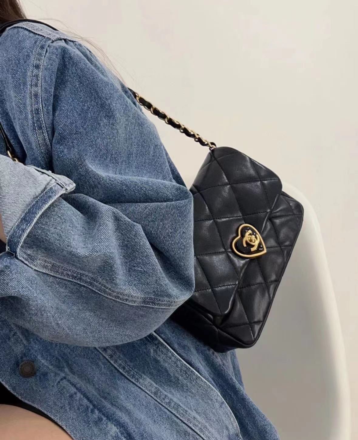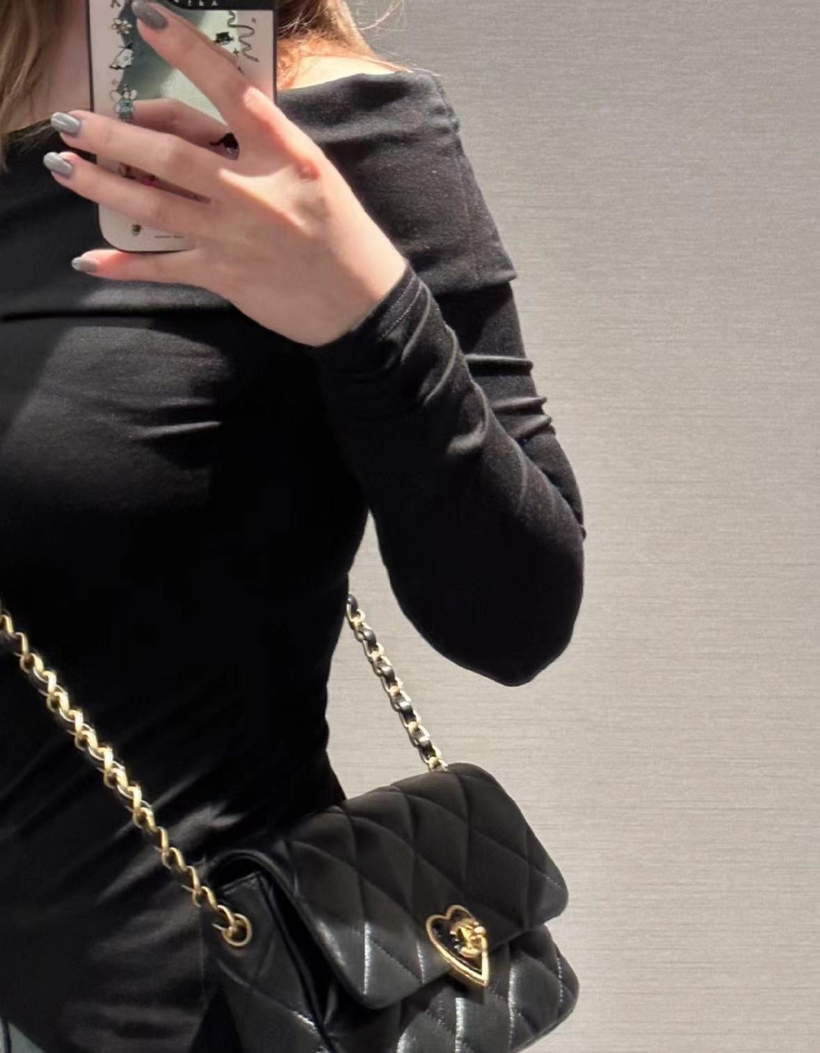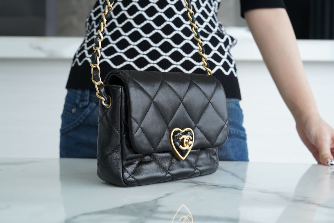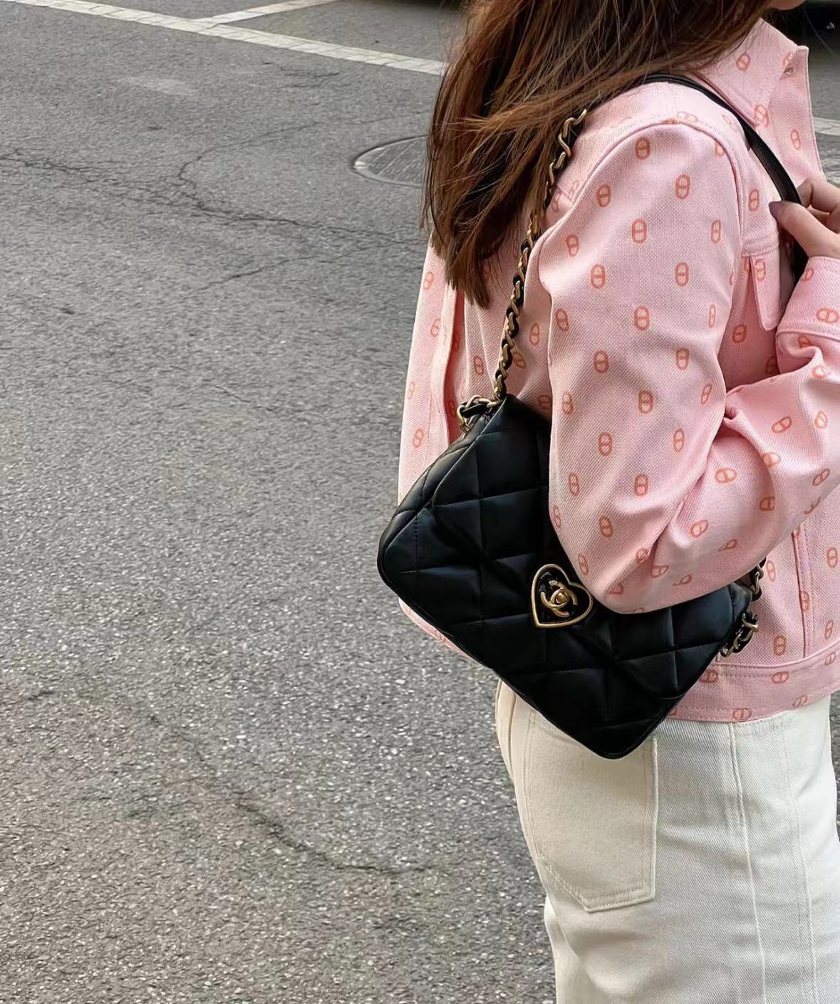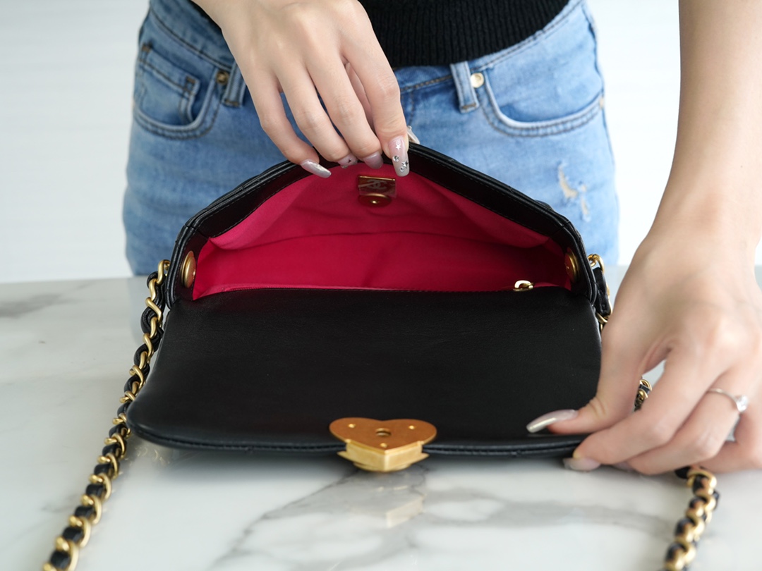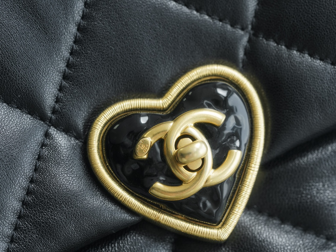 爱心珐琅扣加上拉丝工艺真的爱了,很经典的黑金又增添了一丝俏皮和复古,细节感拉满,有谁跟我一样对爱心的元素真的零抵抗力~