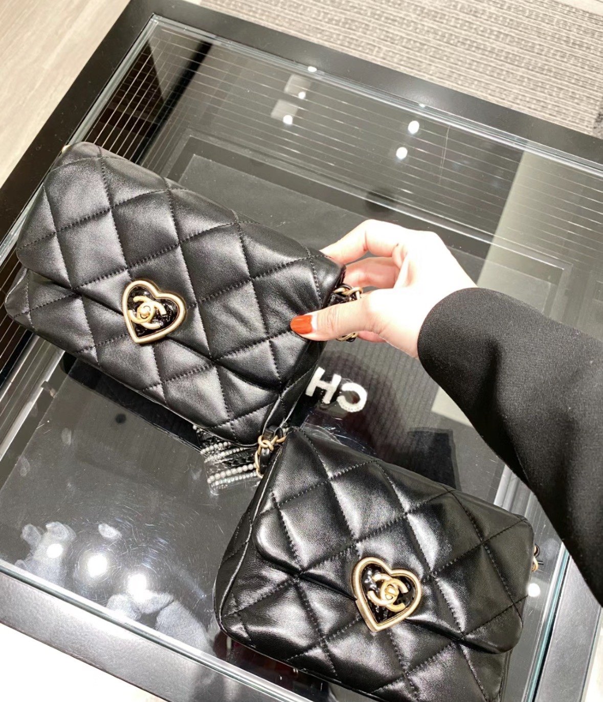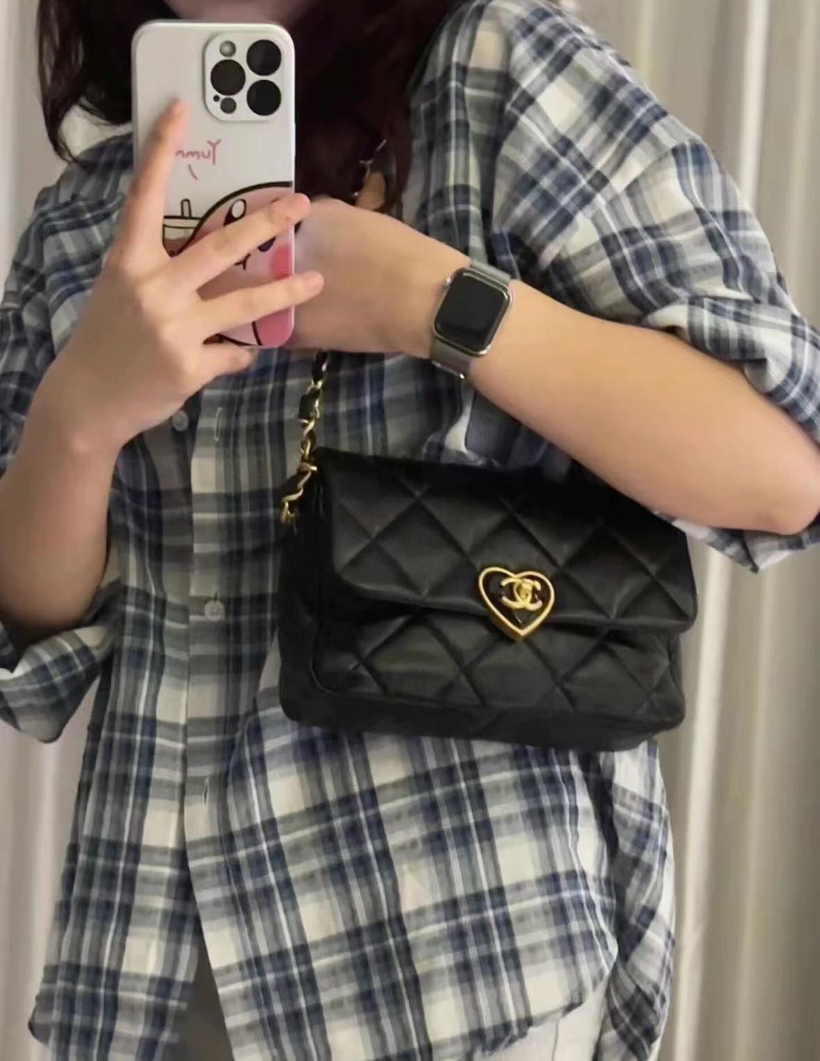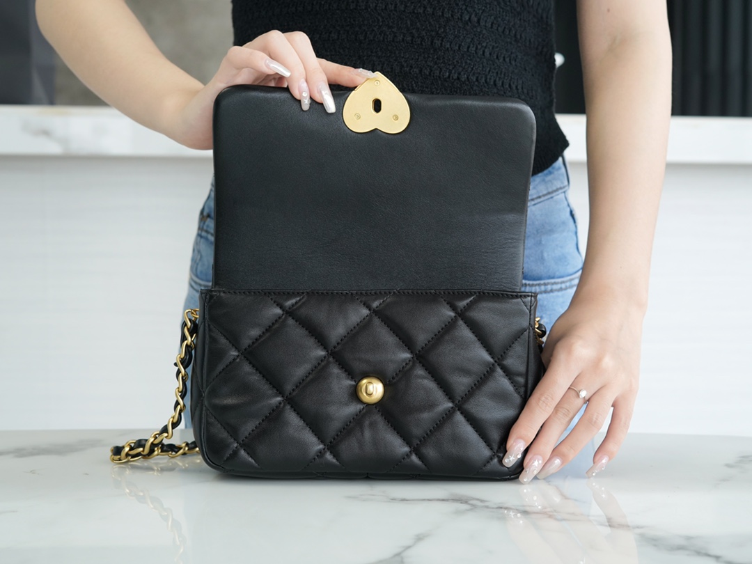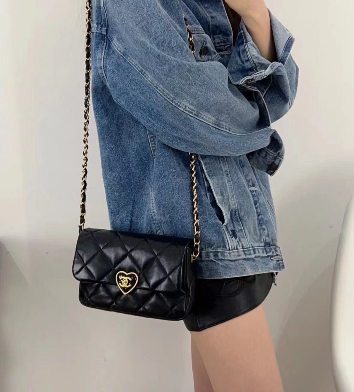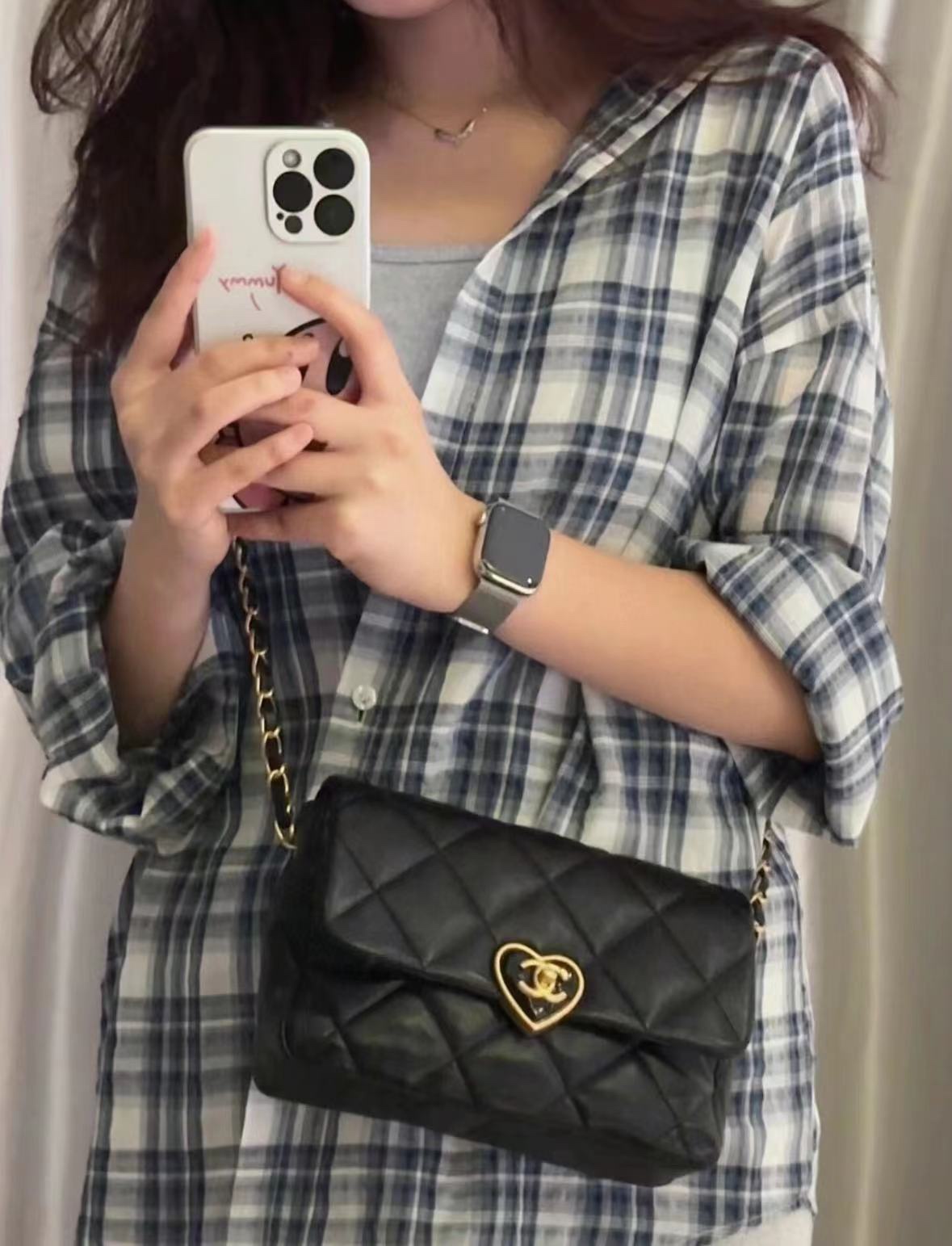 爱心珐琅扣加上拉丝工艺真的爱了,很经典的黑金又增添了一丝俏皮和复古,细节感拉满,有谁跟我一样对爱心的元素真的零抵抗力~