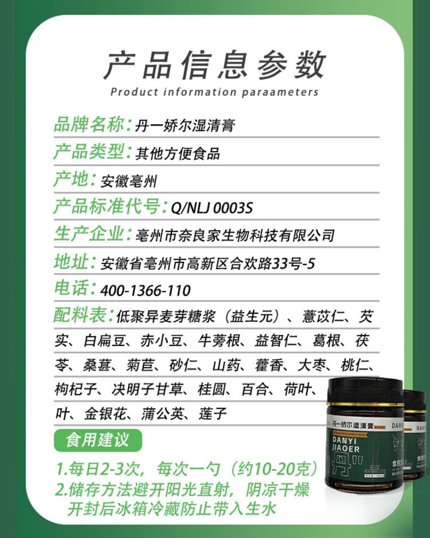 丹一娇尔 湿清膏 葛根茯苓冬瓜人参赤小豆牛蒡根