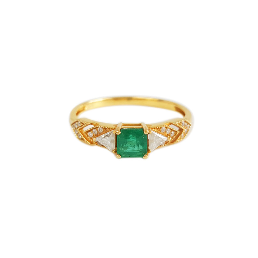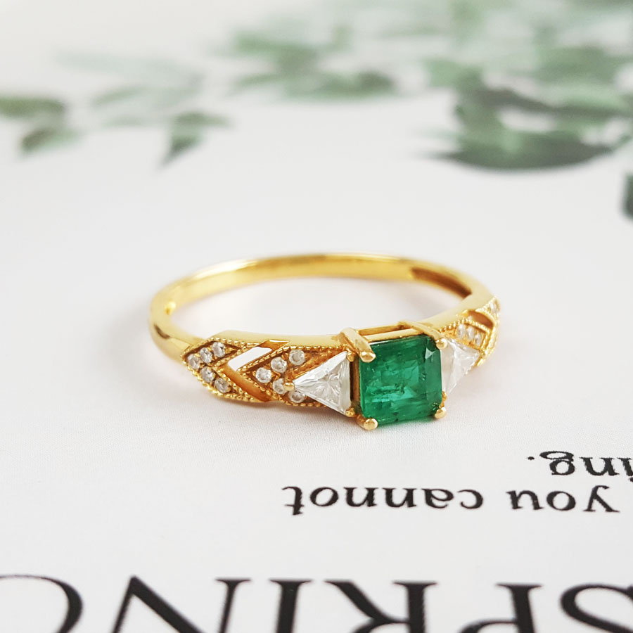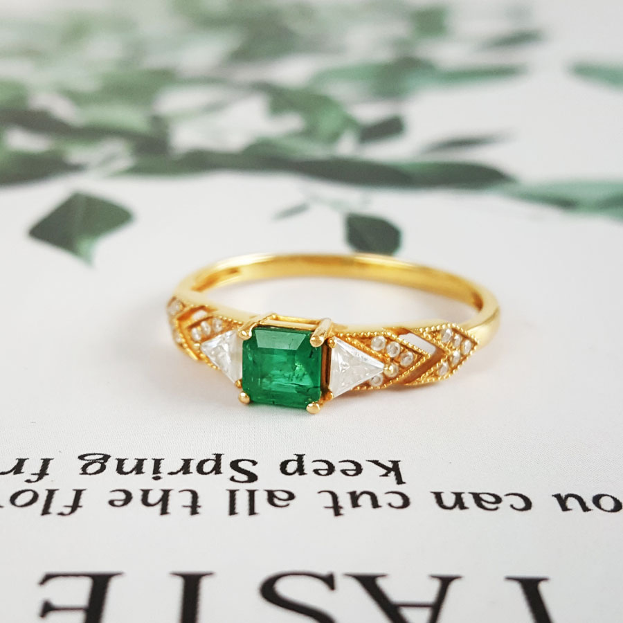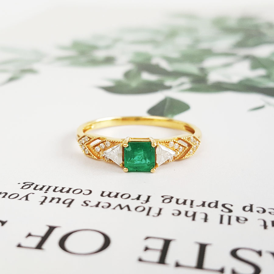 【天然正品】AU750黄金镶钻镶天然公主方型近80分艳绿祖母绿戒指26号(戒圈可改)女士120925NJM40现售价:2980