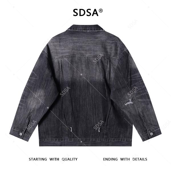 SDSA男士秋冬新款痞帅男装美式设计感口袋磨破翻领牛仔夹克外套