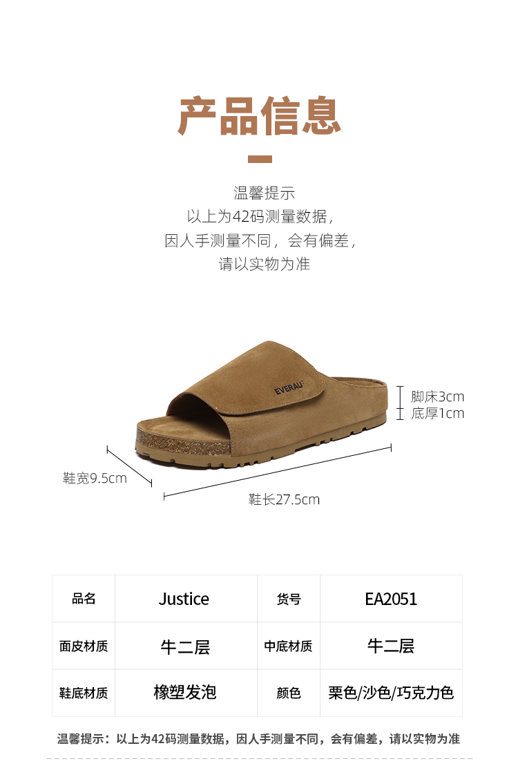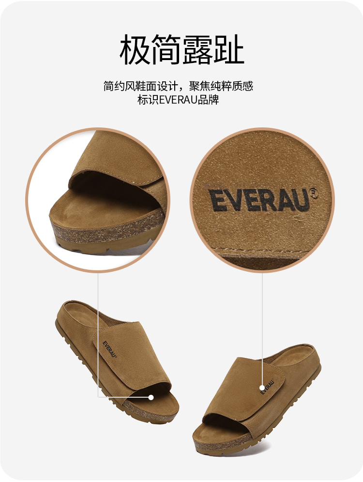 【澳洲品牌】EVERAU大吉岭茶魔术贴男士拖鞋一字凉拖鞋EA2051