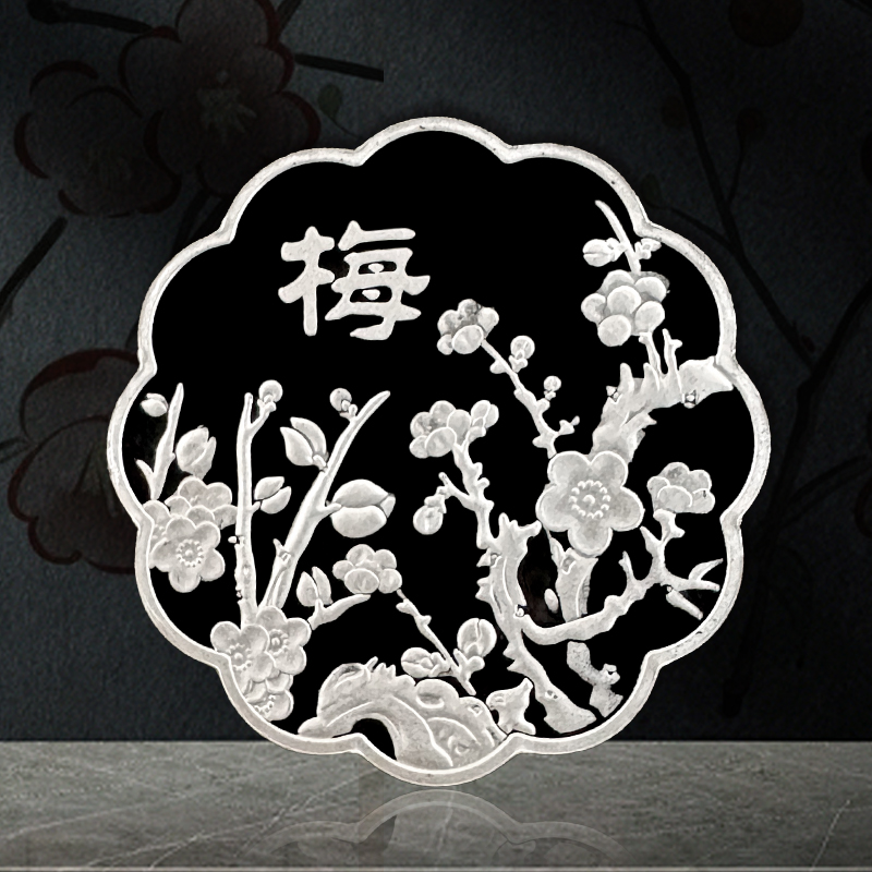 上海造币厂 透望花中四君子梅花纪念银章 含10克纯银