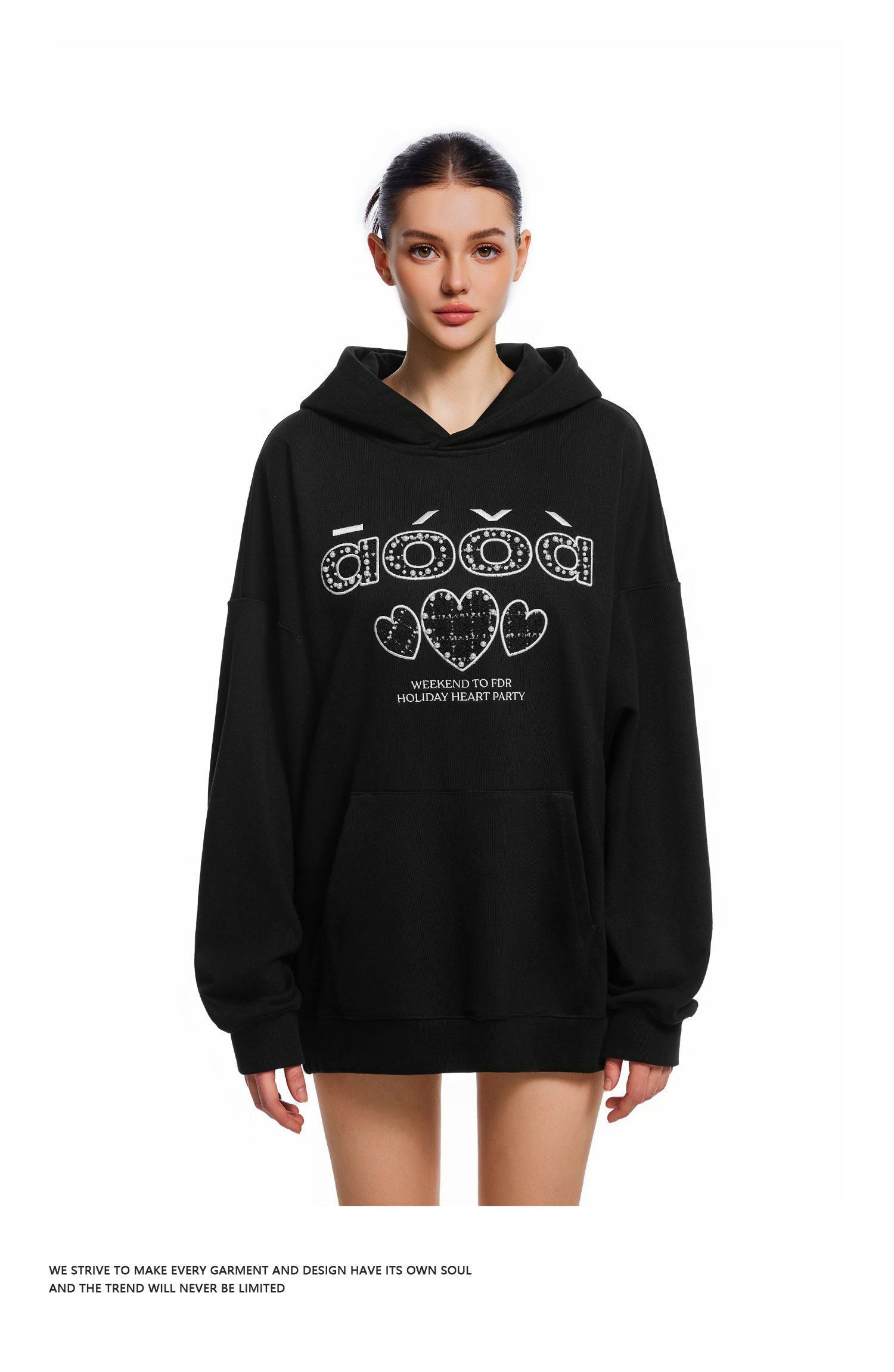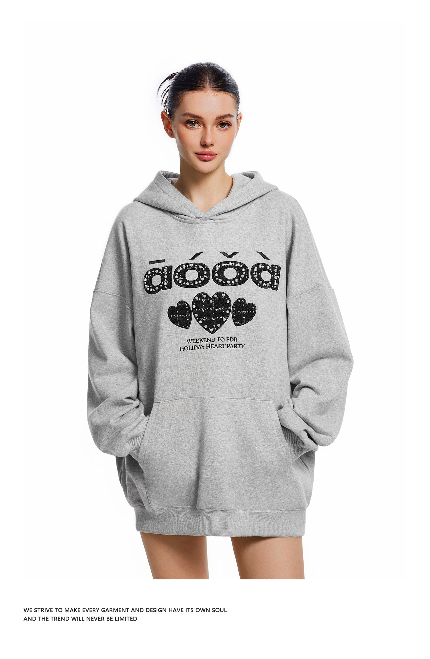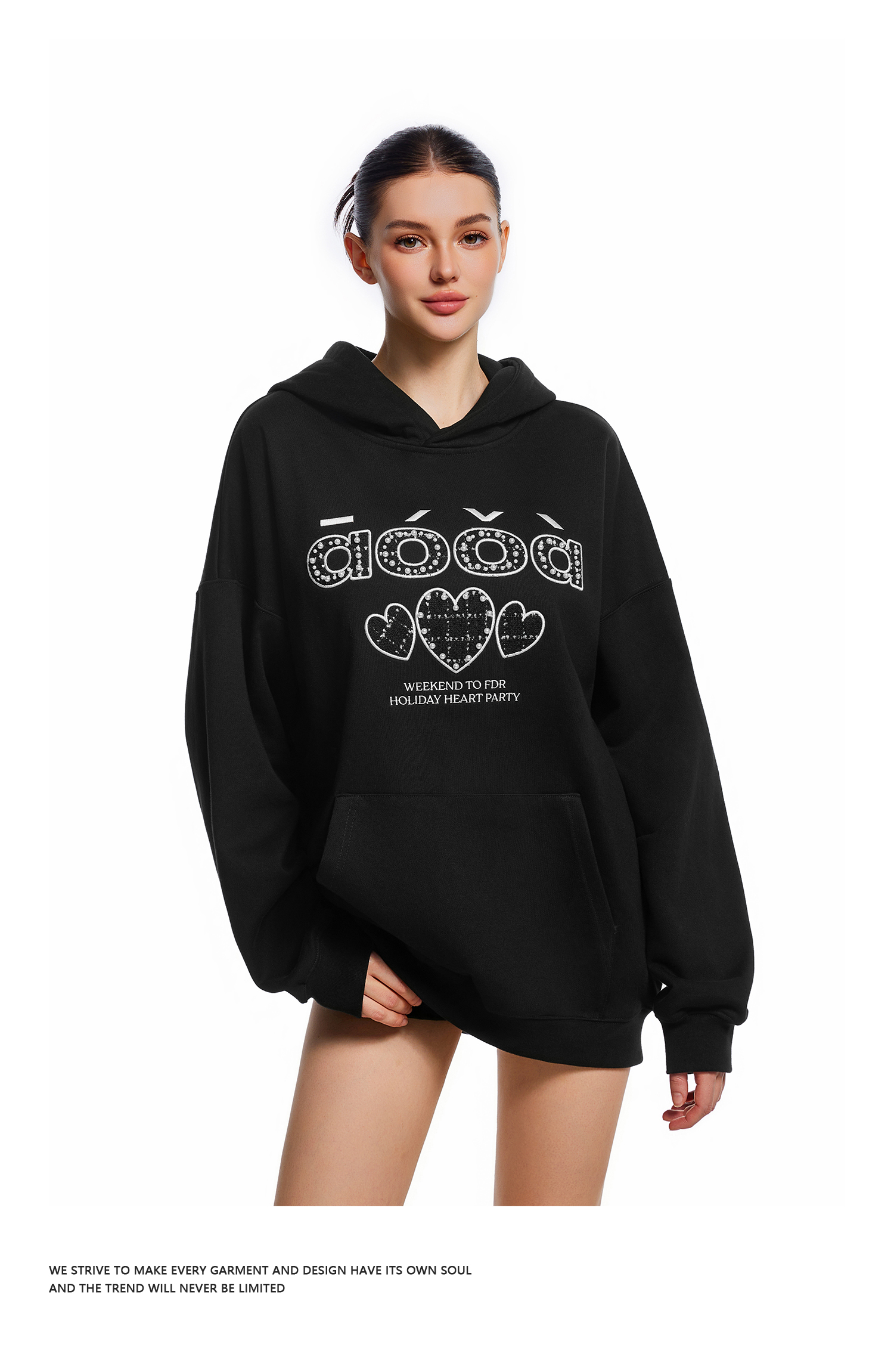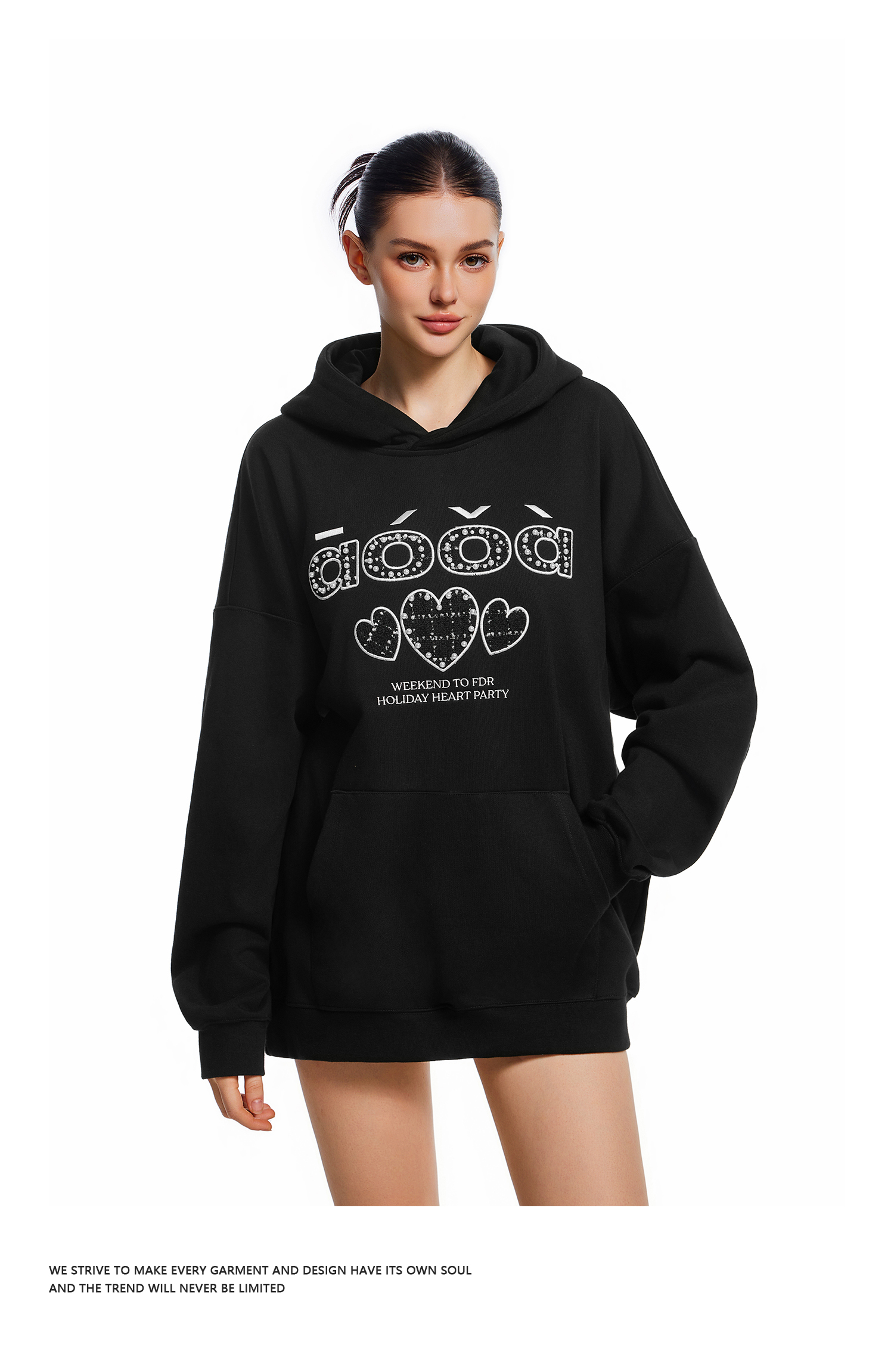FDR官方店 小香风贴布爱心绣花连帽卫衣男女秋季宽松情侣帽衫上衣