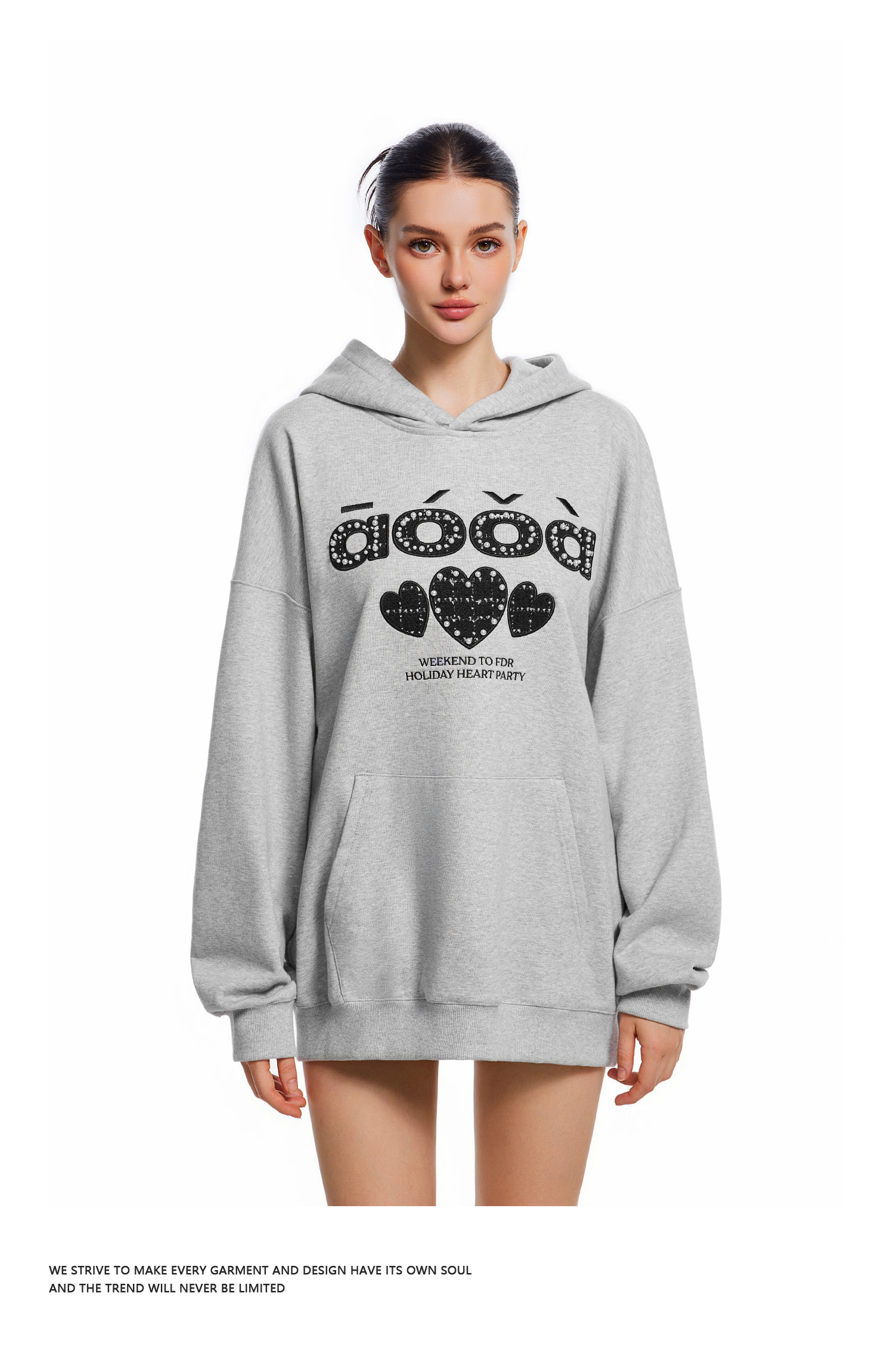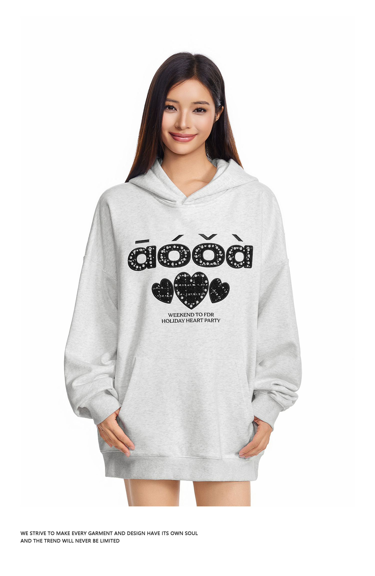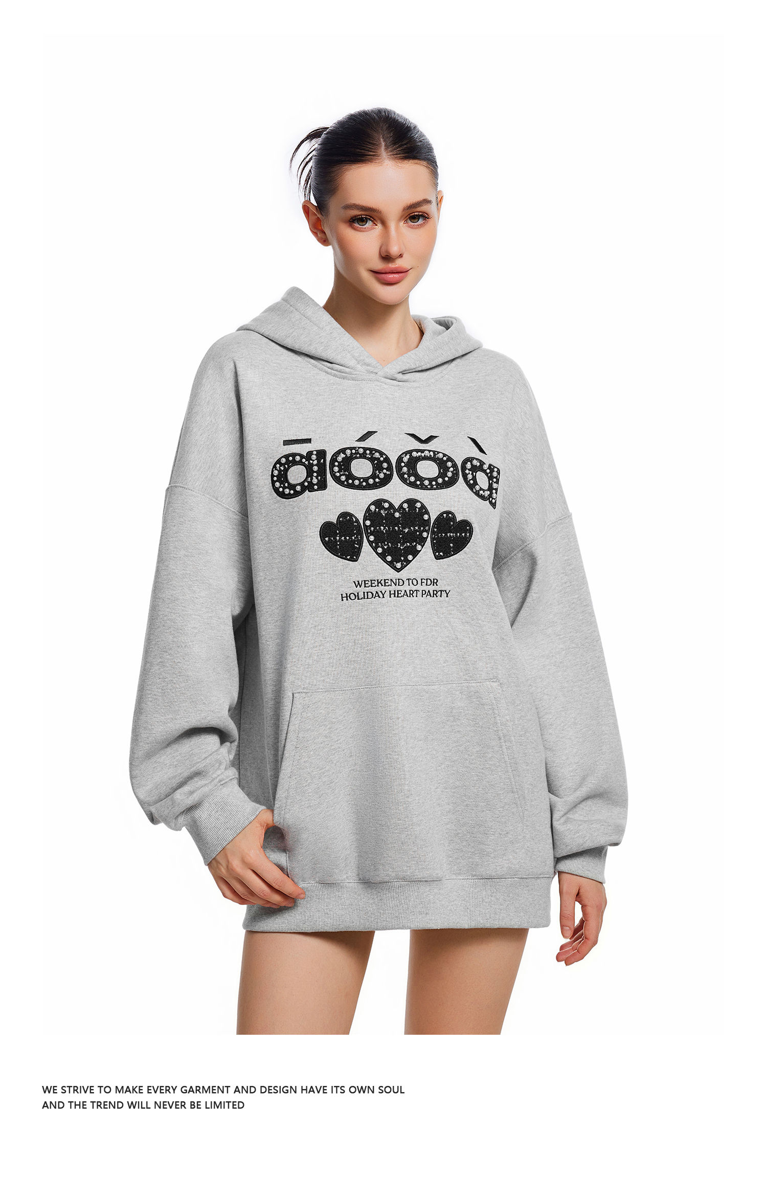 FDR官方店 小香风贴布爱心绣花连帽卫衣男女秋季宽松情侣帽衫上衣