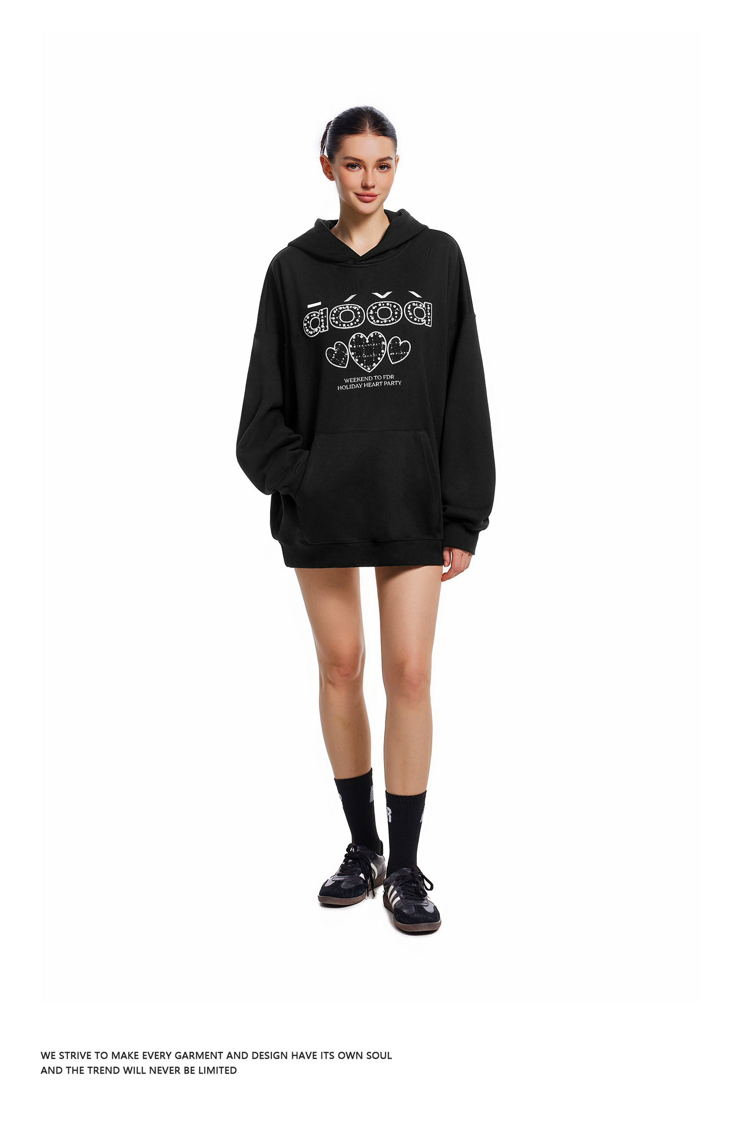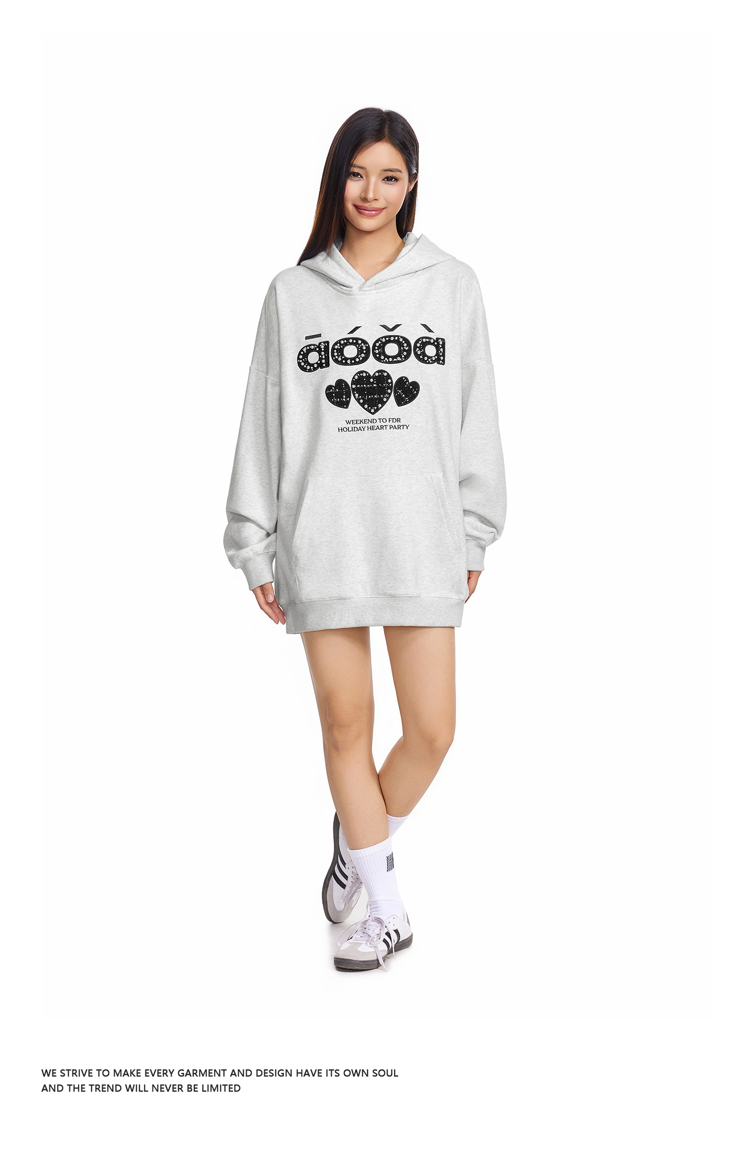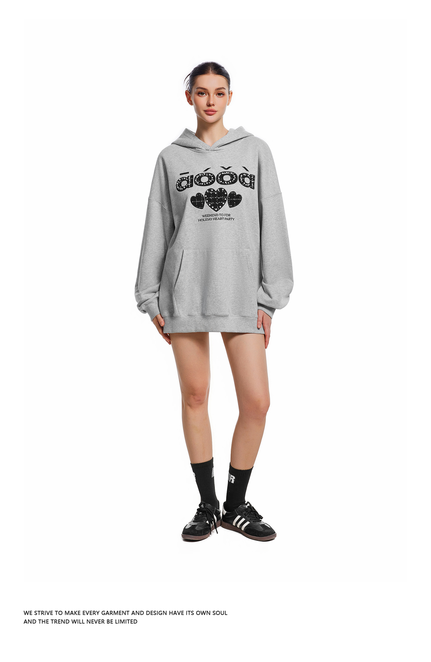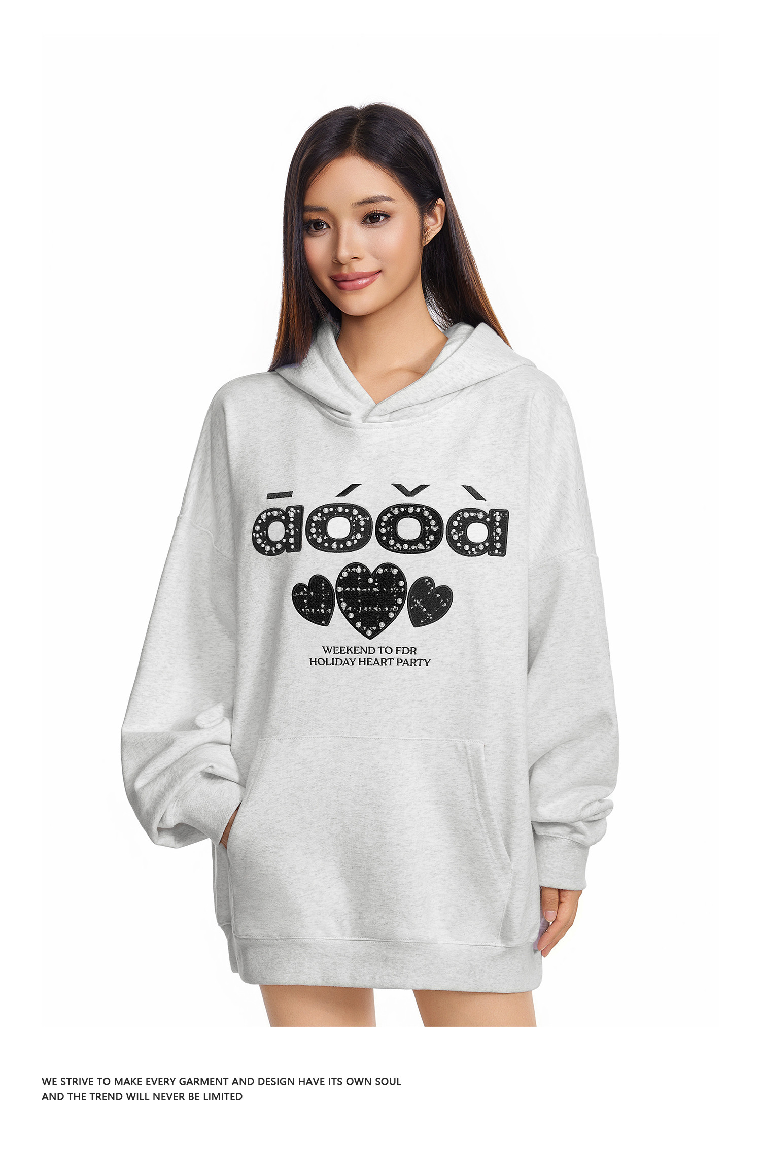 FDR官方店 小香风贴布爱心绣花连帽卫衣男女秋季宽松情侣帽衫上衣