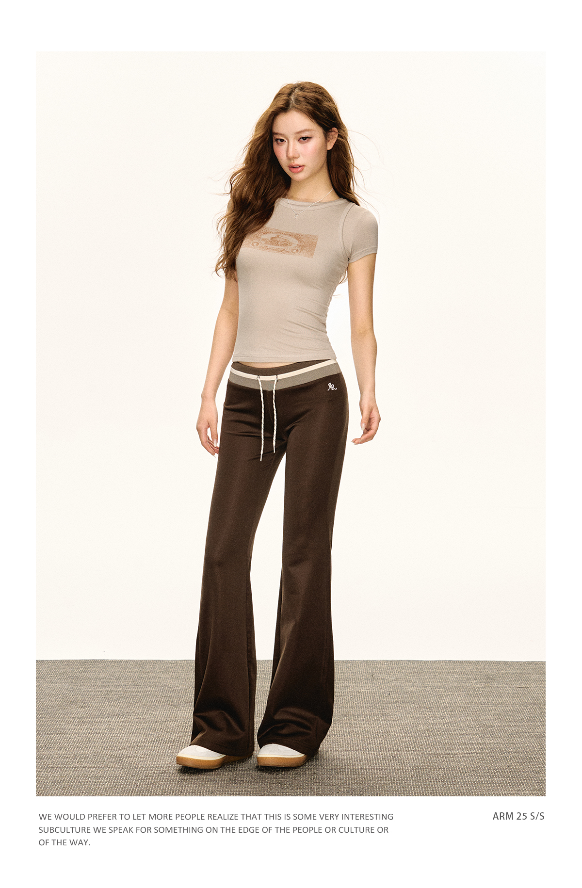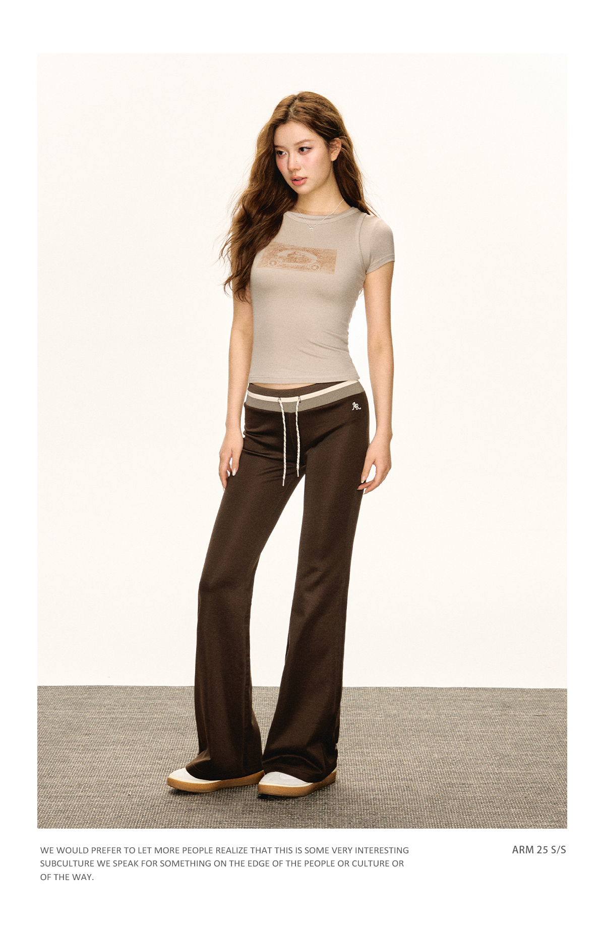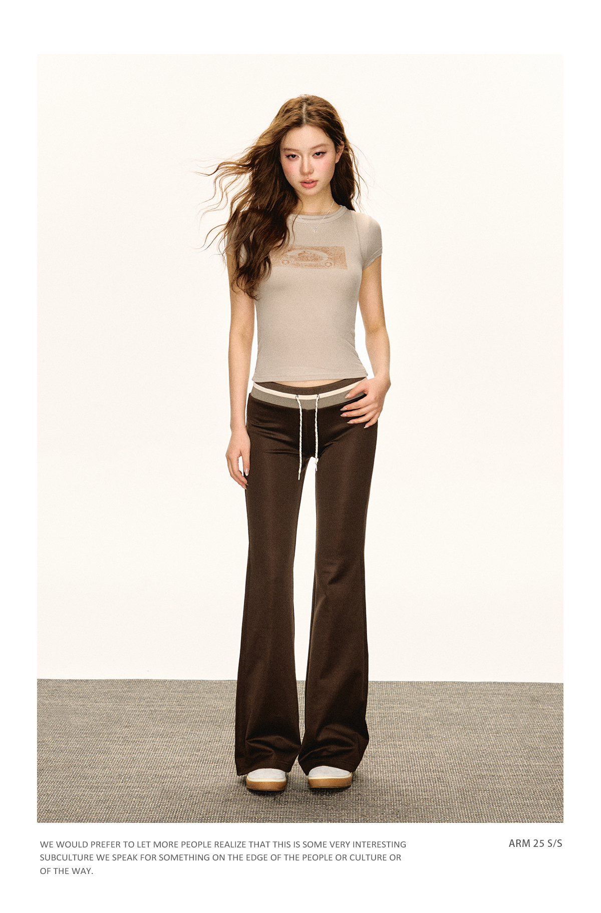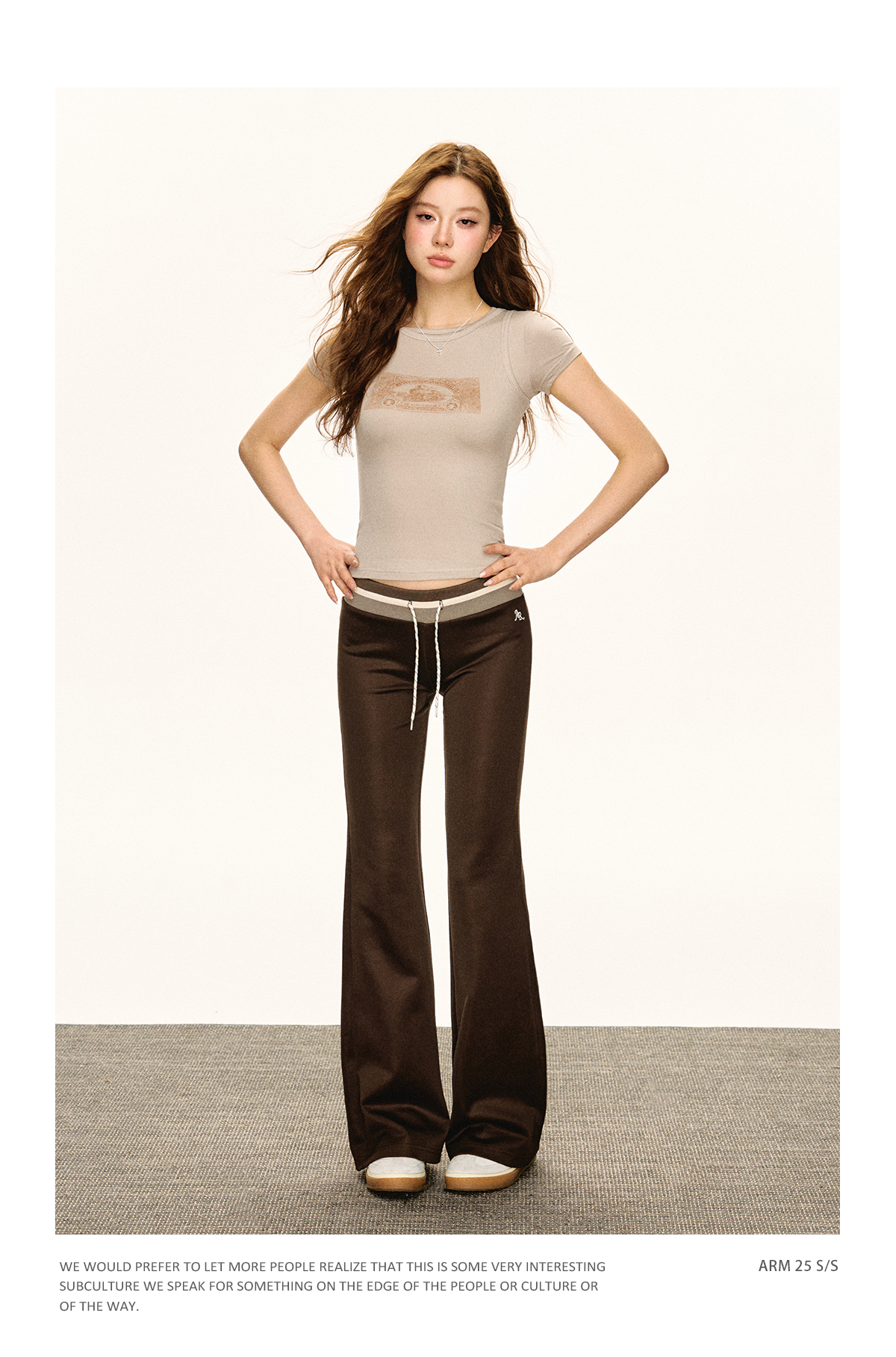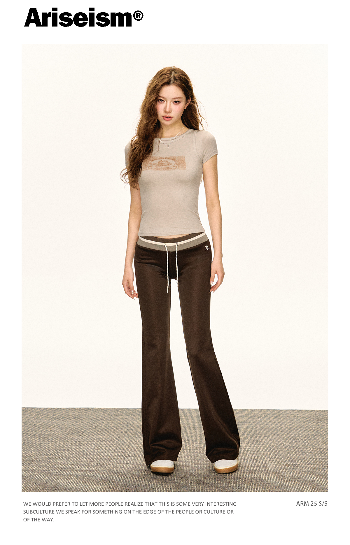 Ariseism 美式复古设计感紧身浅咖短袖t恤女夏季新款修身上衣