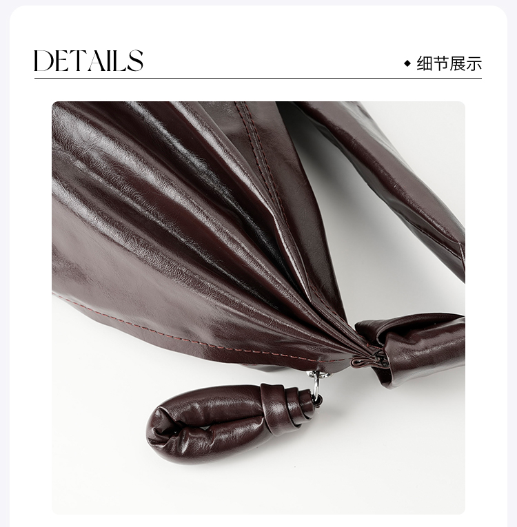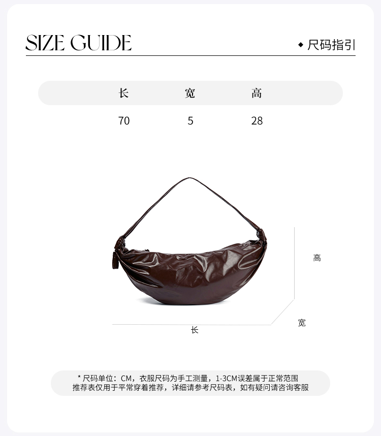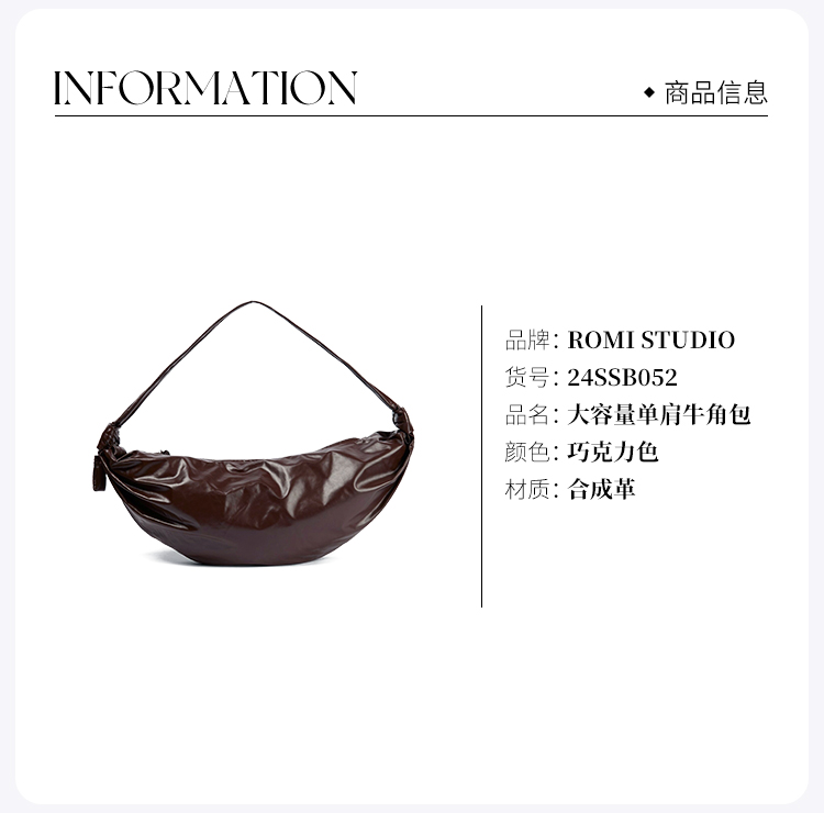 ROMI STUDIO“法式优雅”全二层牛皮褶皱大容量单肩牛角包 24SSB052