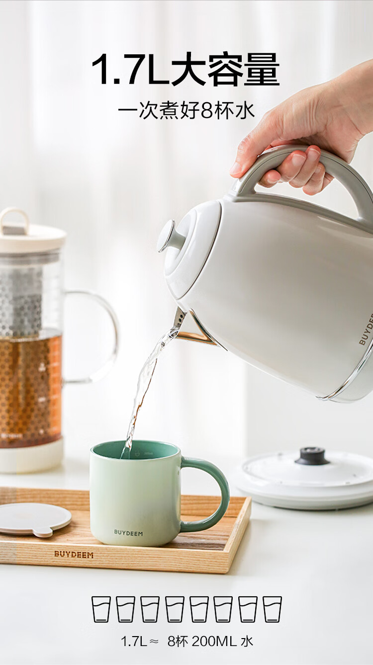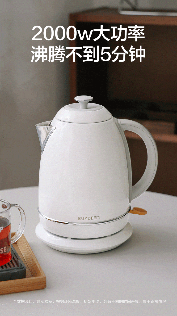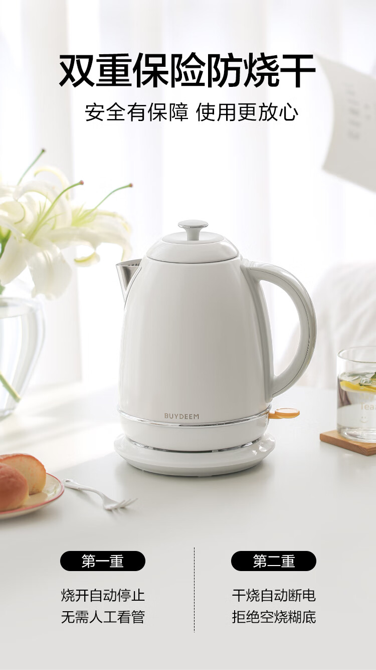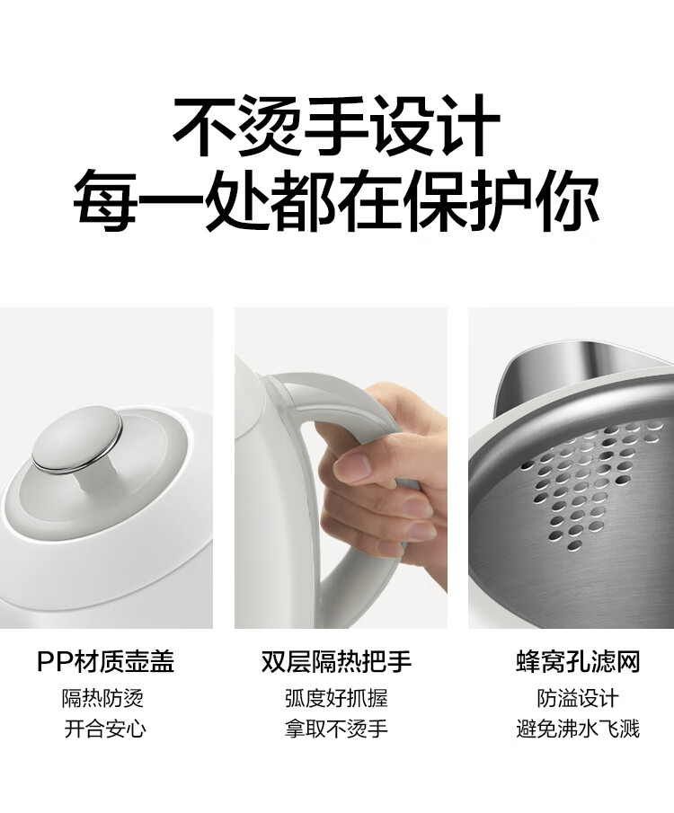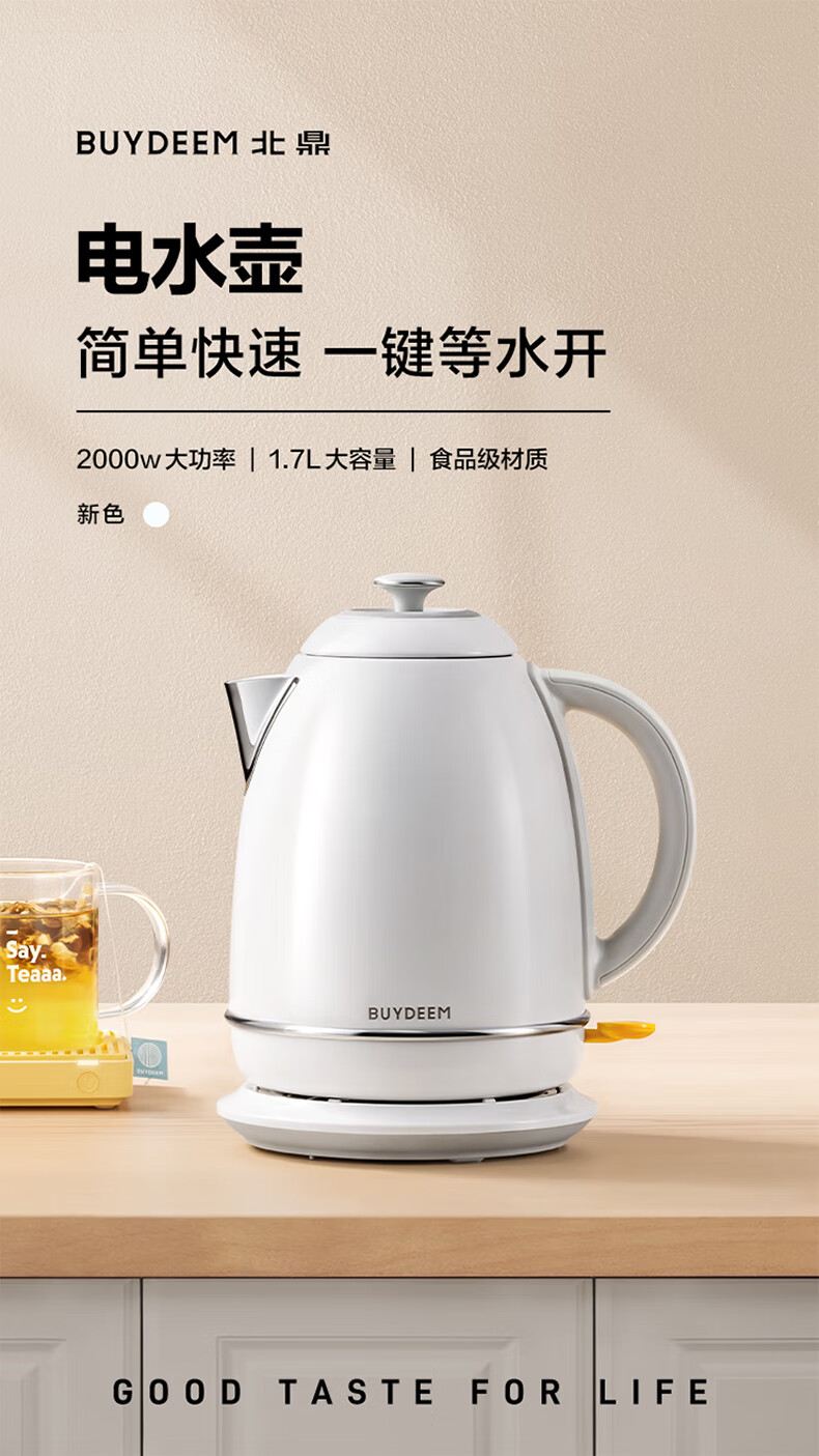 北鼎(Buydeem)炫彩304不锈钢家用电水壶全自动断电调温热水壶烧水器[K640C]雪地白大容量1.7L