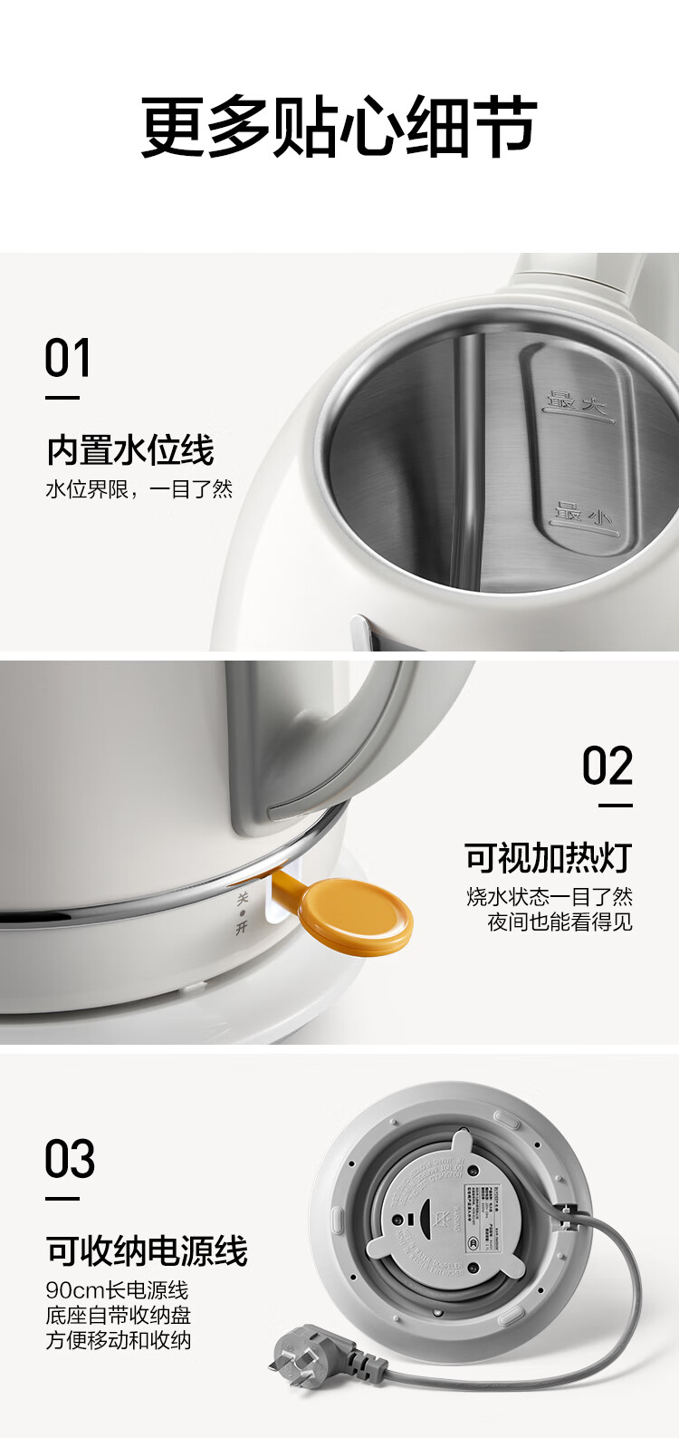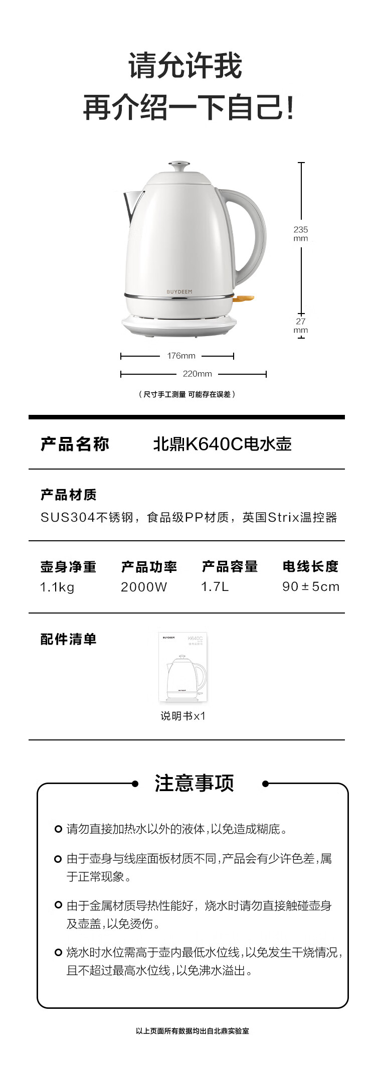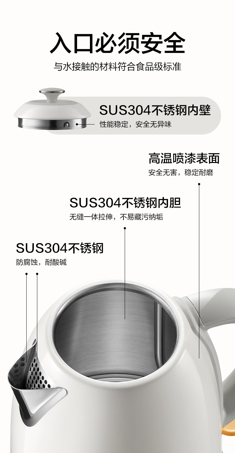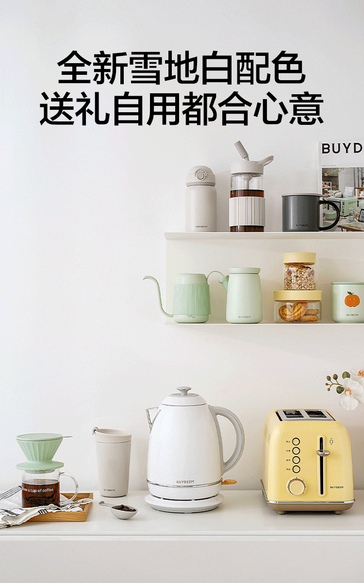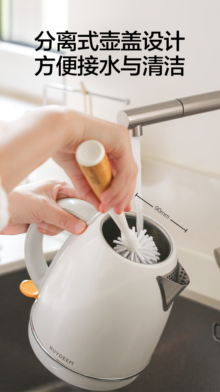 北鼎(Buydeem)炫彩304不锈钢家用电水壶全自动断电调温热水壶烧水器[K640C]雪地白大容量1.7L