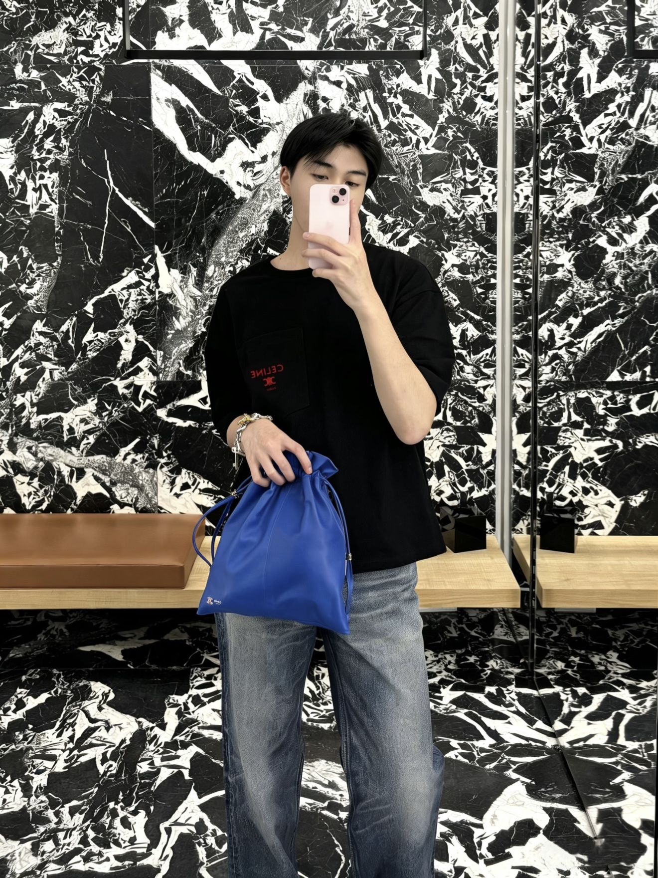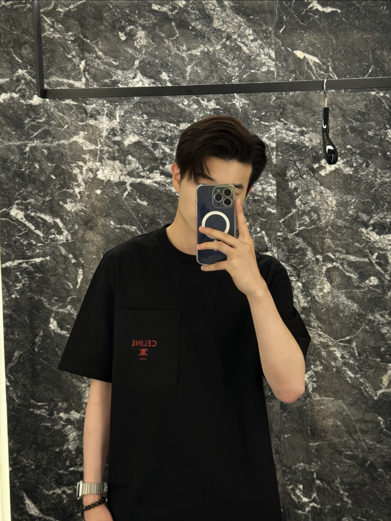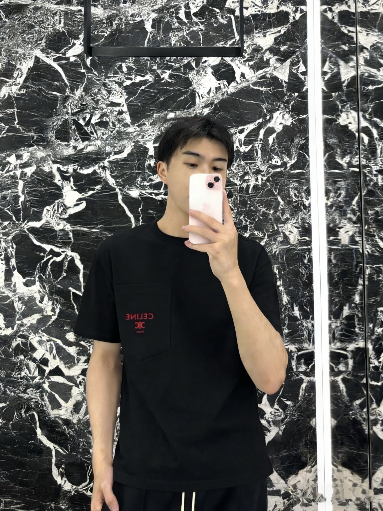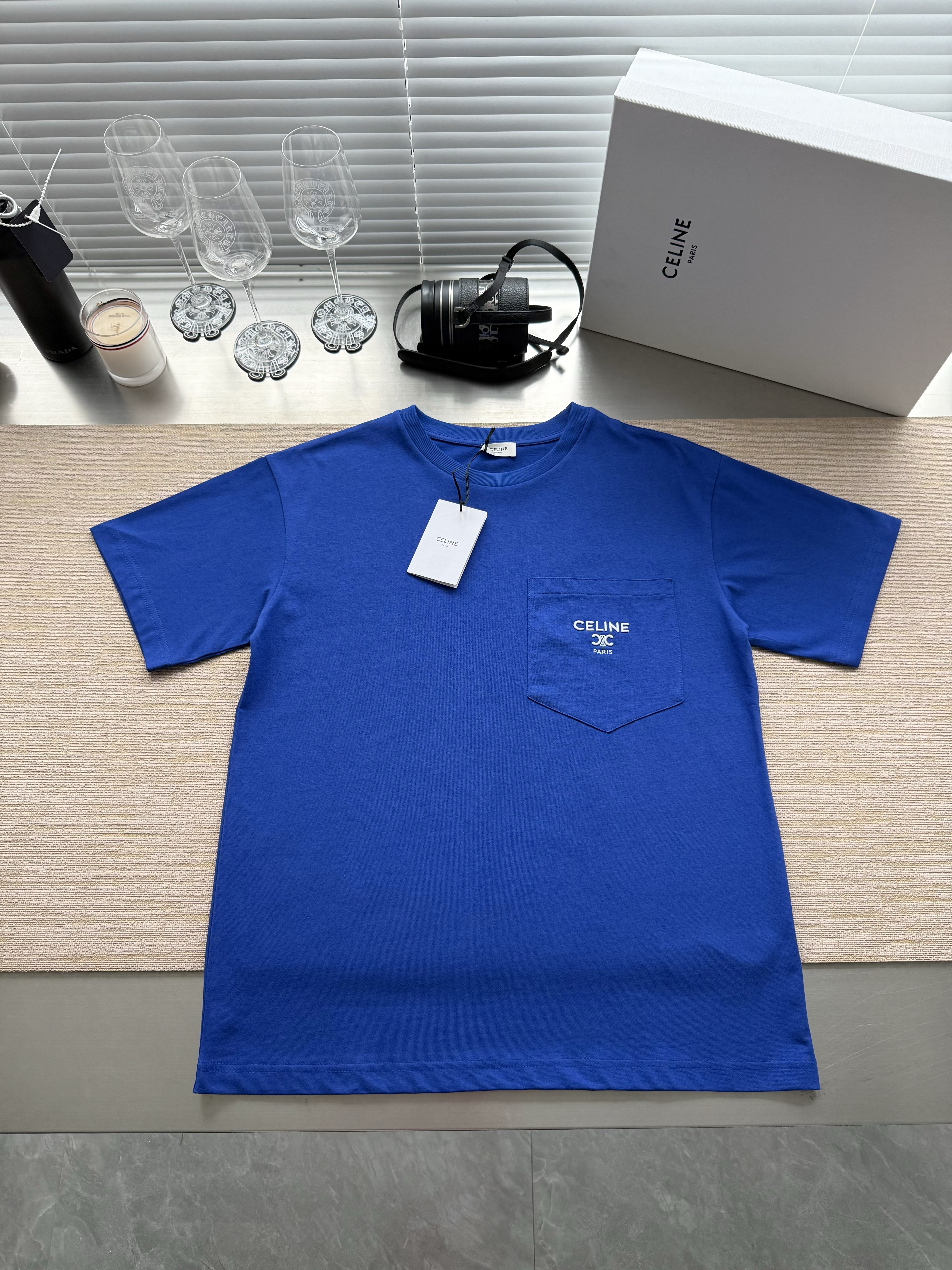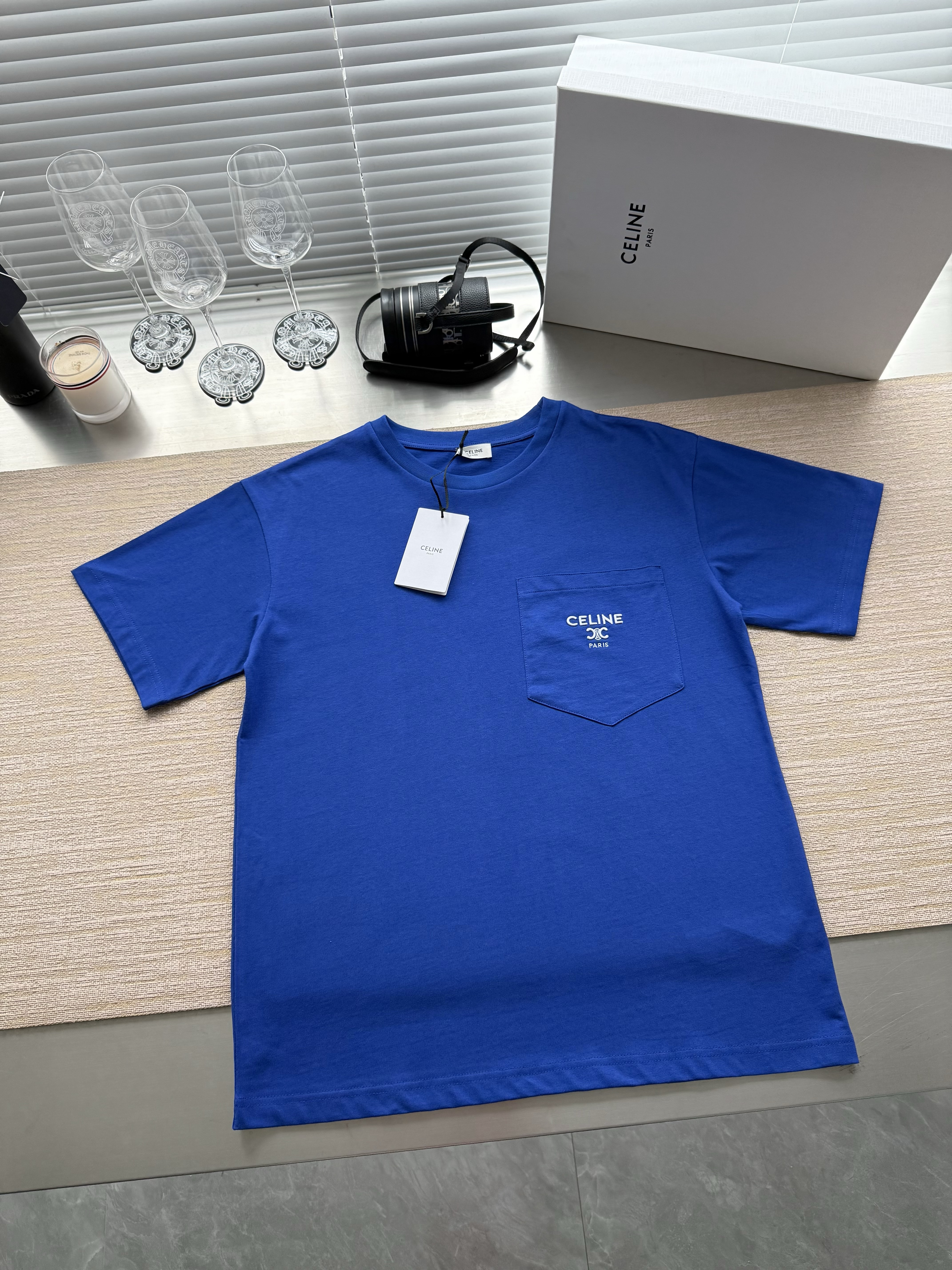 Celine 25ss字母标识凯旋门刺绣短袖T恤‼️整件衣服4540购买ZP拆解打造,定制定染黑色纯棉面料,做到100%全棉进口纱线,意大利进口制造,定织标志性罗纹领口,胸前贴袋设计,饰以撞色字母标识凯旋门刺绣,袖口 下摆双层锁边超高密度走线,真正做到1:1copy 闭眼入 码数:XS S M L