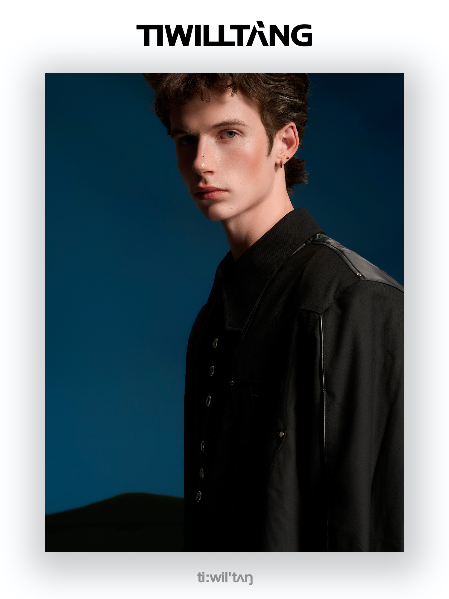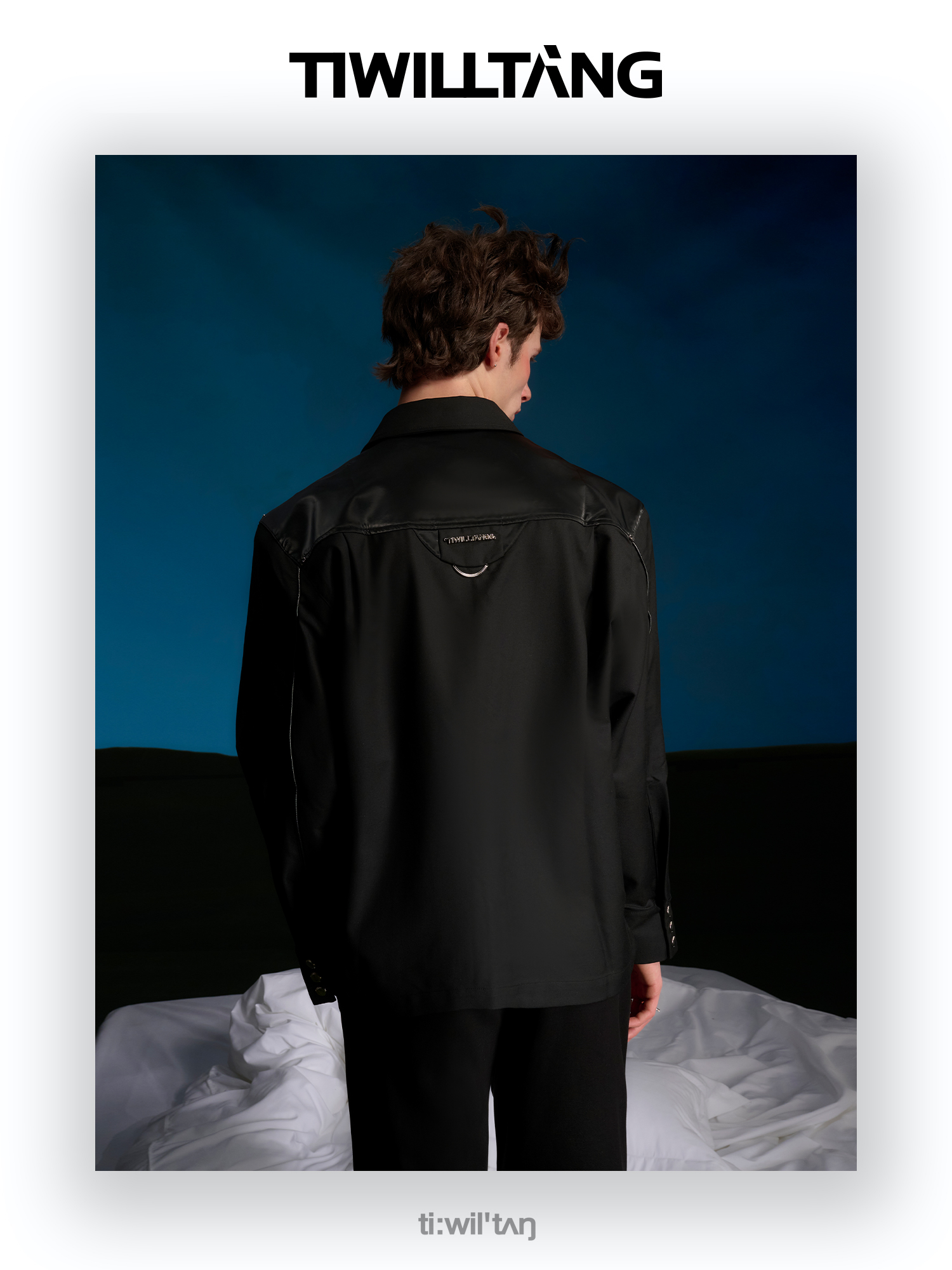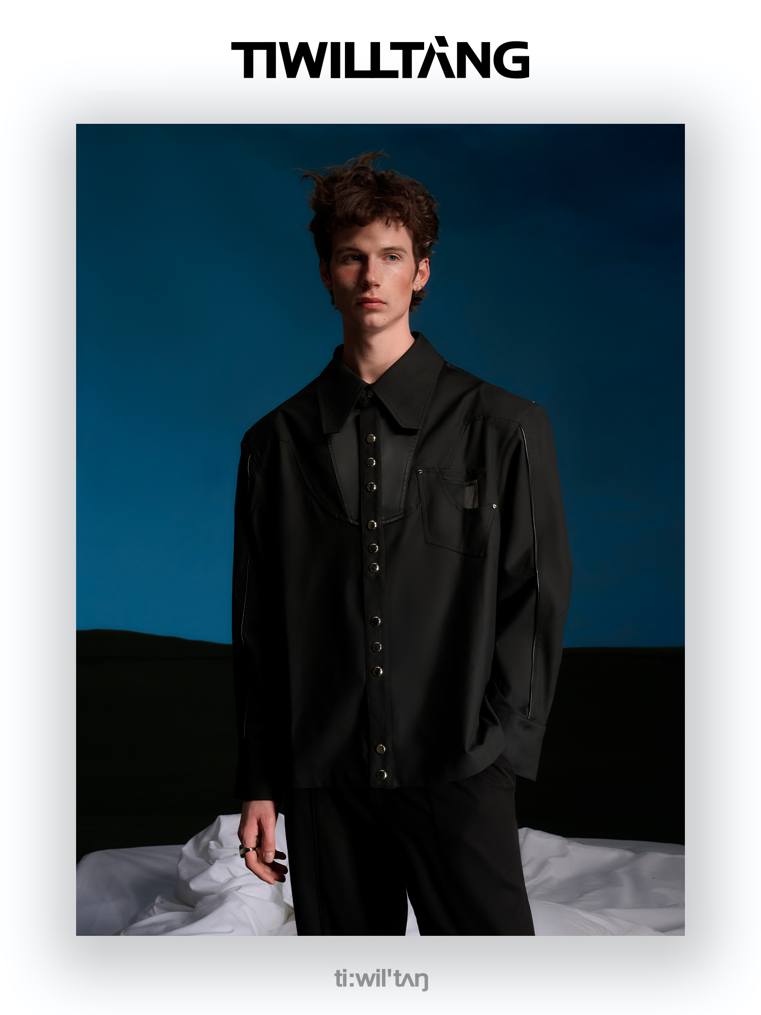 启世录TIWILLTANG“残世爵迹”先锋解构皮分割复袋长袖气质衬衫