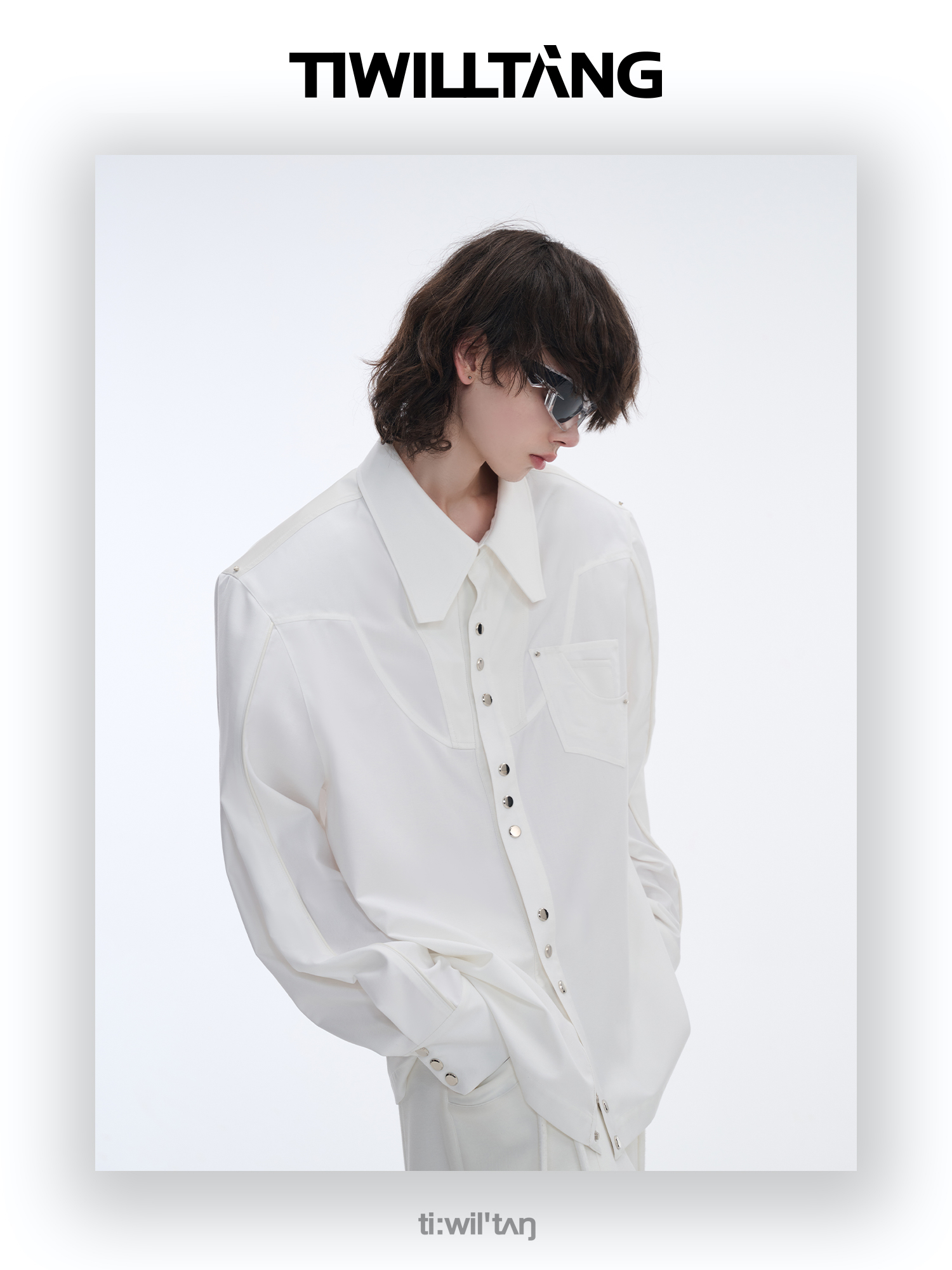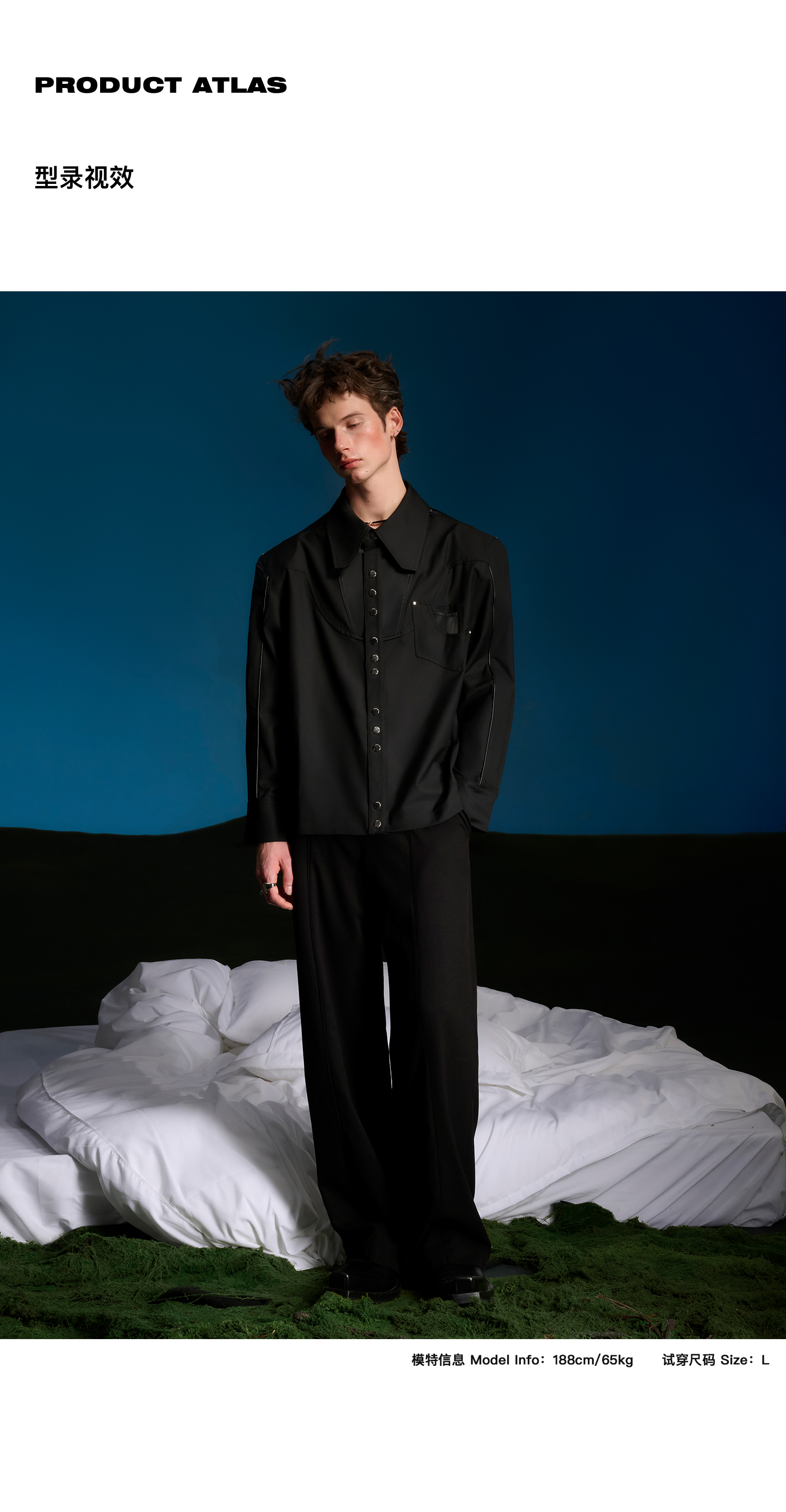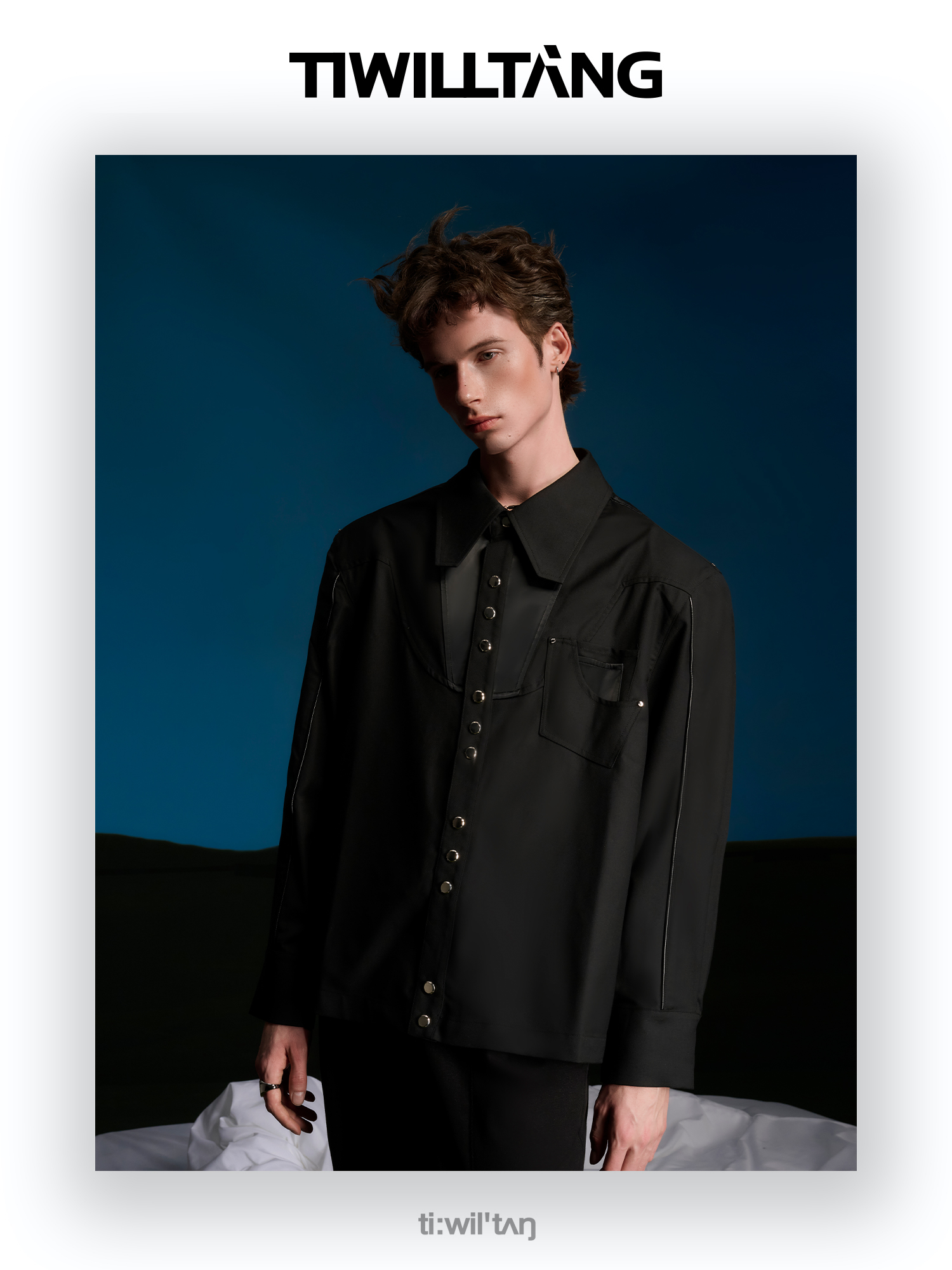 启世录TIWILLTANG“残世爵迹”先锋解构皮分割复袋长袖气质衬衫