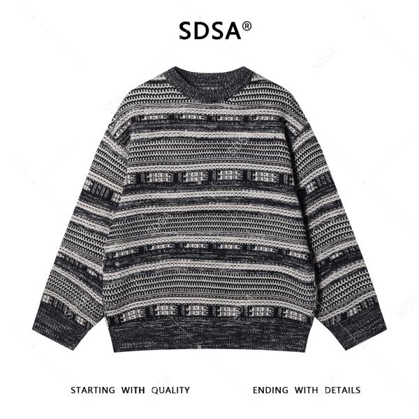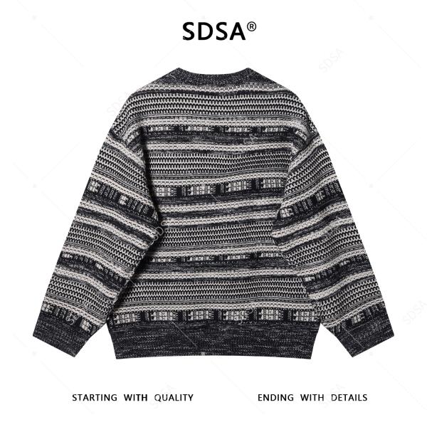 257132SDSA男士秋冬新款痞帅男装韩版撞色条纹圆领针织衫时尚慵懒风毛衣