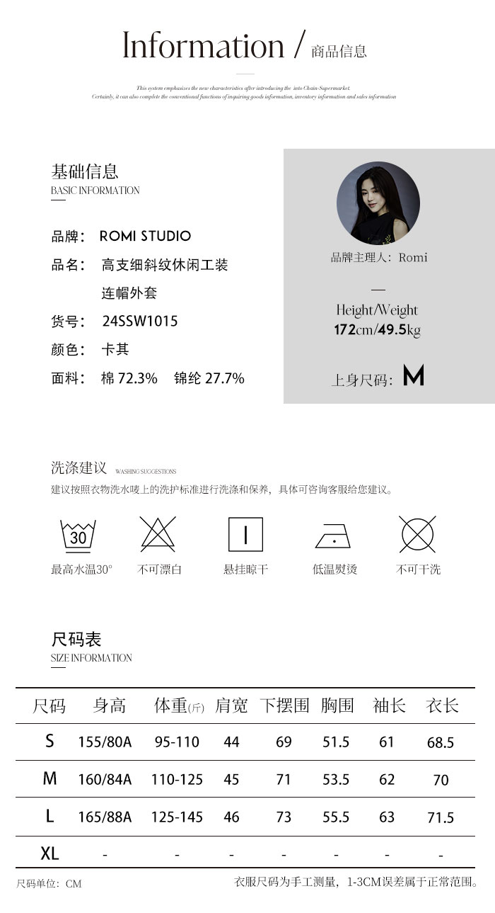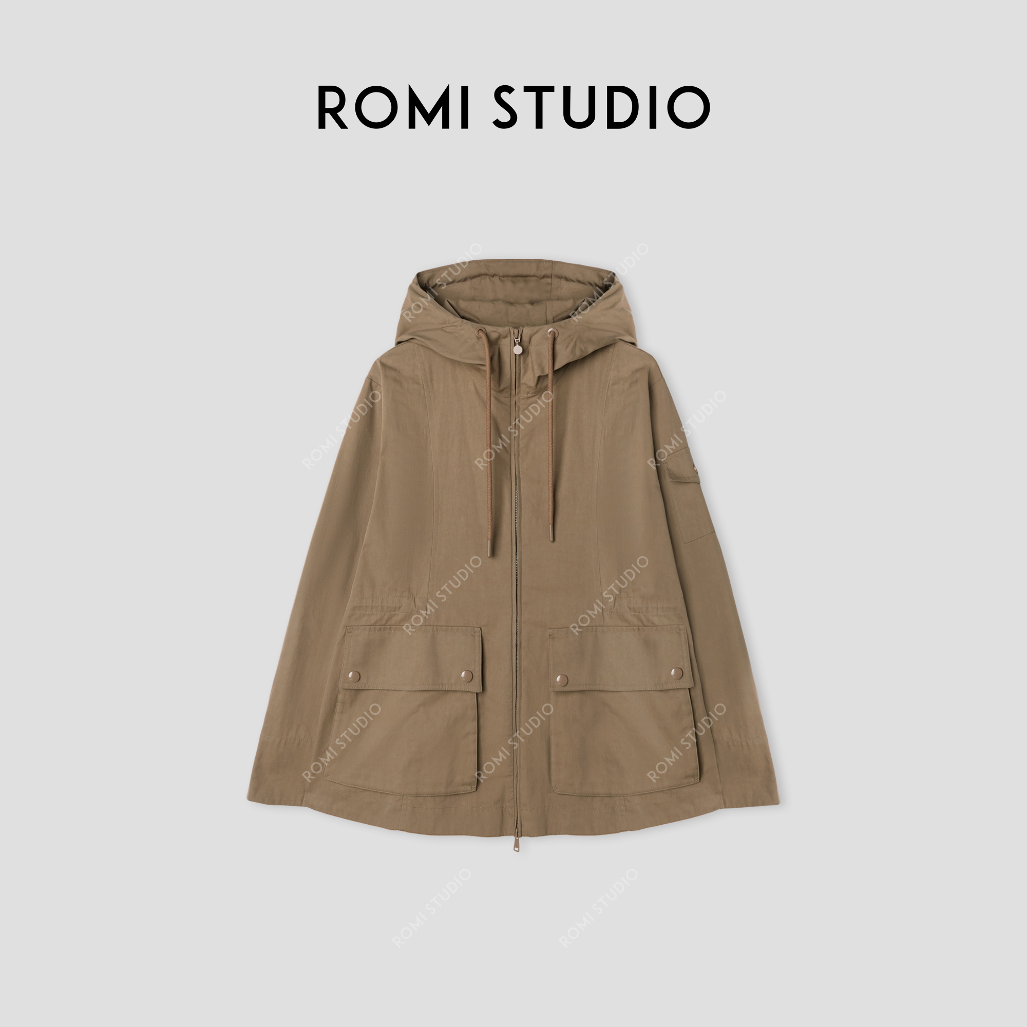 ROMI STUDIO“轻量风度”高密棉石酵酵洗连帽抽绳风衣外套24SSW1015