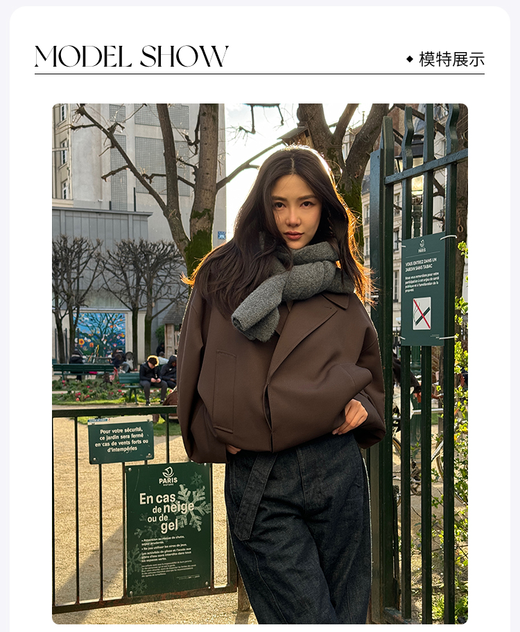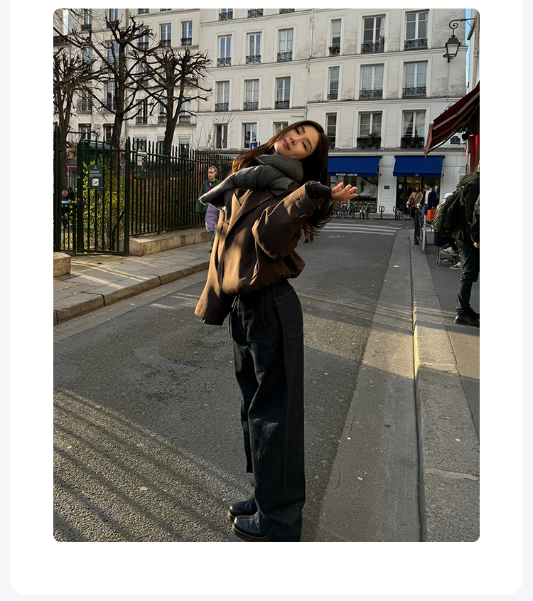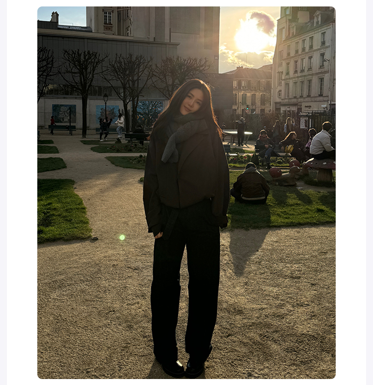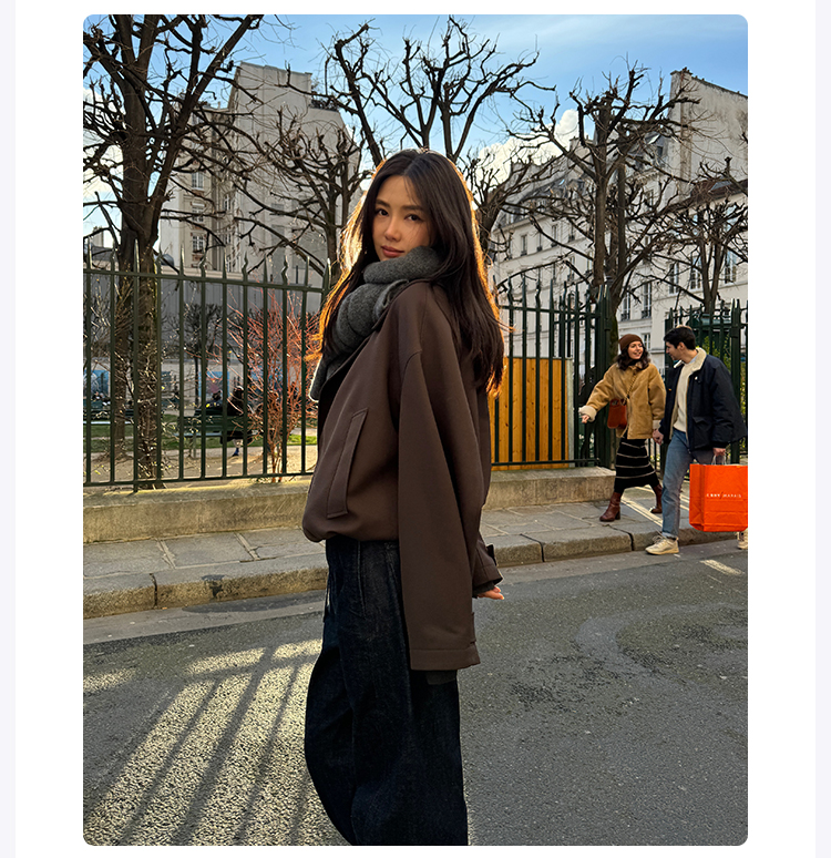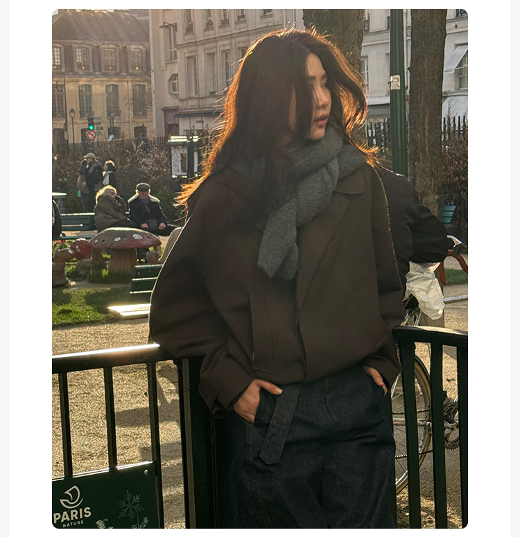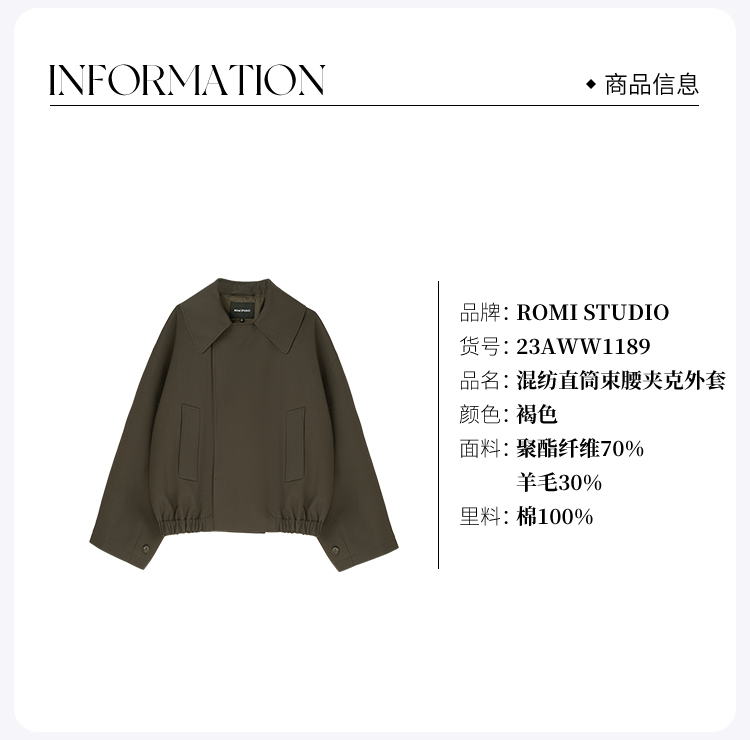 ROMI STUDIO“法式优雅”30羊毛混纺直筒束腰夹克外套23AWW1189