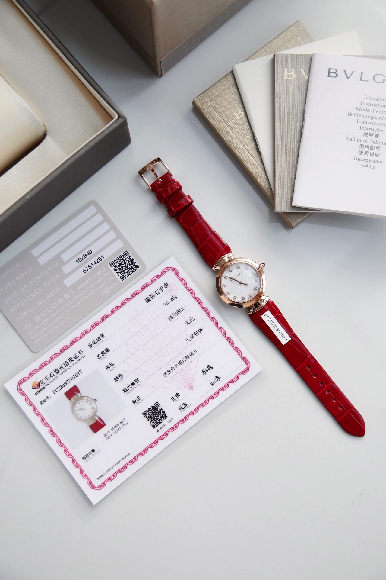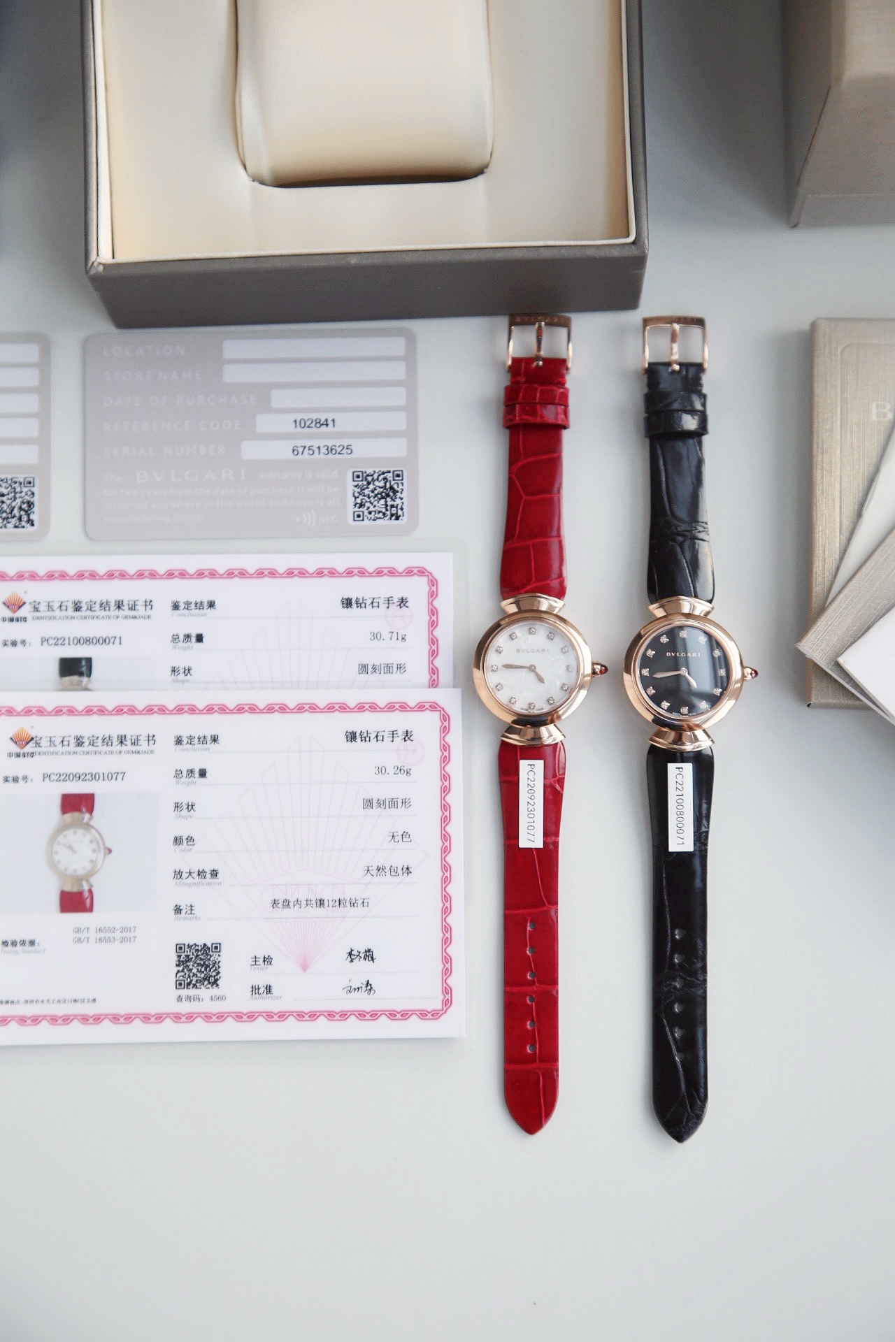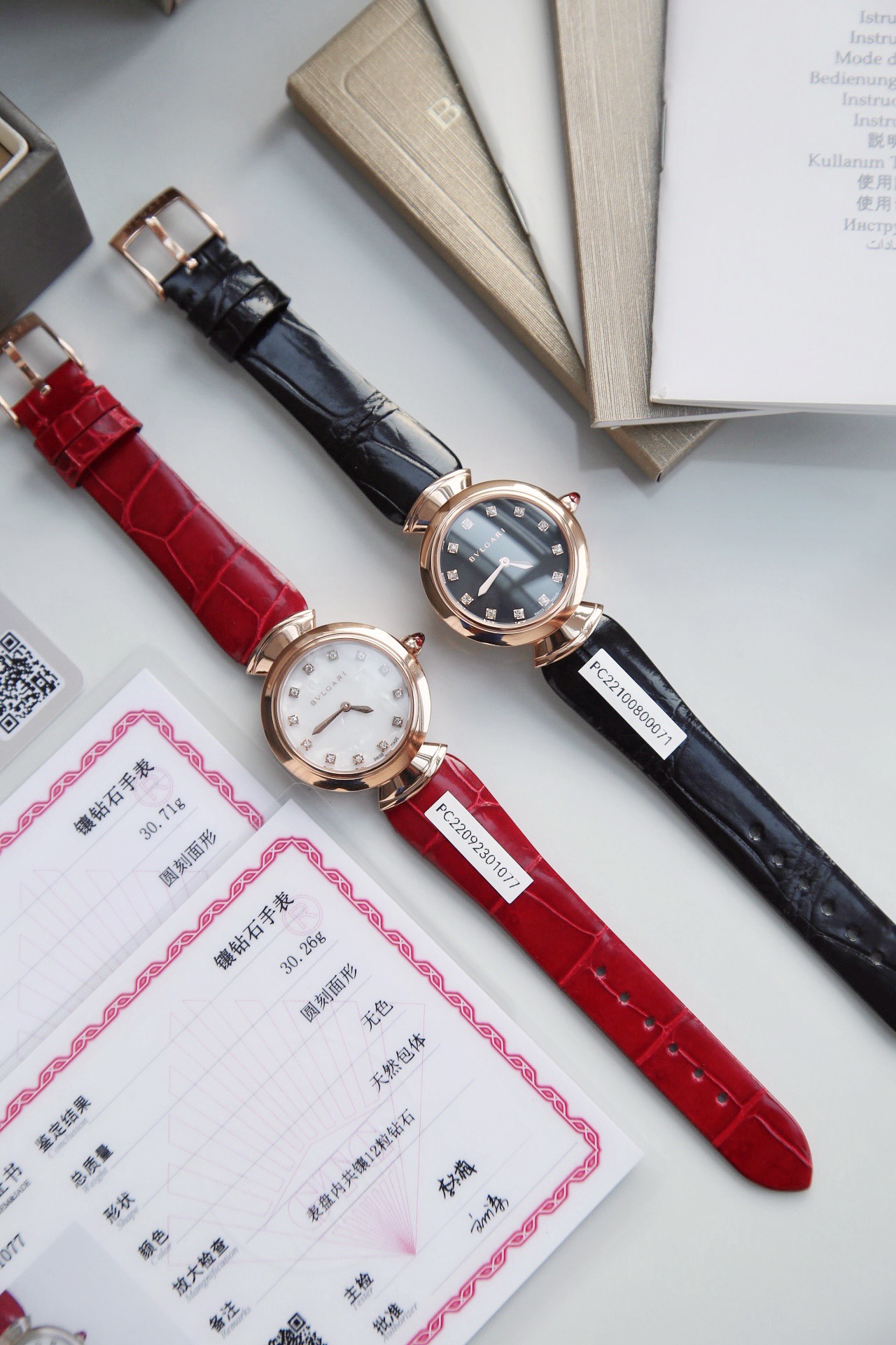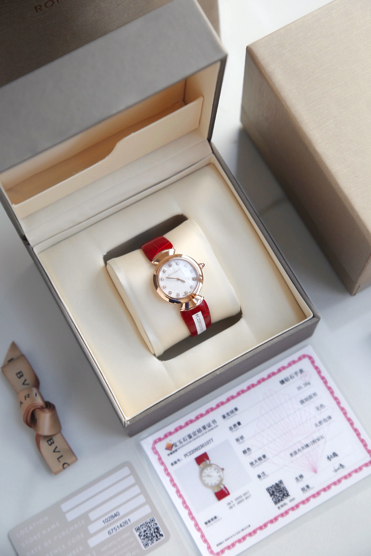 DIVAS’ DREAM腕表神秘的黑色表盘与经典别致的扇形图案相融合,DIVAS’ DREAM腕表从女性的优雅气质和永恒之城的迷人气息中汲取灵感,以独树一帜的罗马精神向最迷人的女性致敬,这款珠宝腕表极具女性气质,精美雅致,呈现卡拉卡拉大浴场大理石的色彩和扇形马赛克迷人曲线,体现意大利美学的真正精髓,凭借此系列腕表成为了意大利上层社会优雅女士的身份标识之一。表径搭配色彩鲜艳的鳄鱼皮表带,令人联想到宝格丽著名的彩色宝石设计。表壳也以精钢包18K玫瑰金材质呈现,表盘不仅有多种色彩可选,并且其中还有稀少的天然石头表盘配真钻石展现宝格丽的珠宝品牌闪耀动人之姿。这款腕表以30毫米精钢表壳,经过品牌抛光打磨处理之后,完美的表壳弧度以及典雅而别致的扇形十分漂亮,然后再包上18K玫瑰金,质感随意可见,洁白的独一无二天然大理石表盘上镶嵌有12颗1.3Vvs级足反真钻时标,别具立体感和纹路感,与中央2针设计相呼应,令时间指示非常清晰简约,顶级奢华,灰常稀缺,成型鳄鱼皮表带,令佩戴更加的舒适,凸面蓝宝石玻璃,永不刮花,50米防水,配全套原包装,送礼自戴都非常合适! 手表 吊牌 保修卡三码合一 ,一表一码绝不重复,国检GTC证书一表一编号 可扫可查,保障真材实料