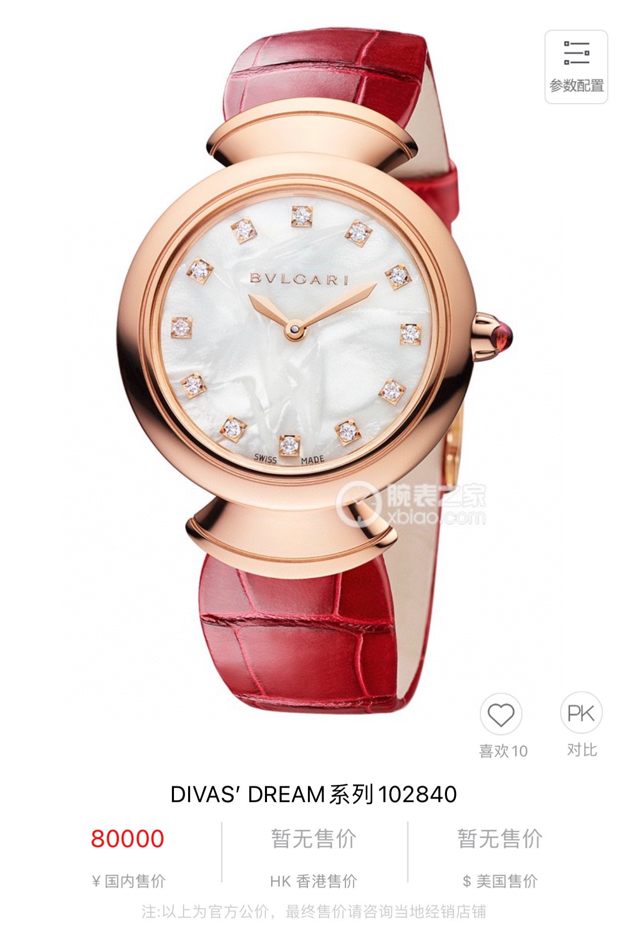 意大利著名奢华珠宝品牌宝格丽推出的DIVAS’ DREAM女士石英腕表,