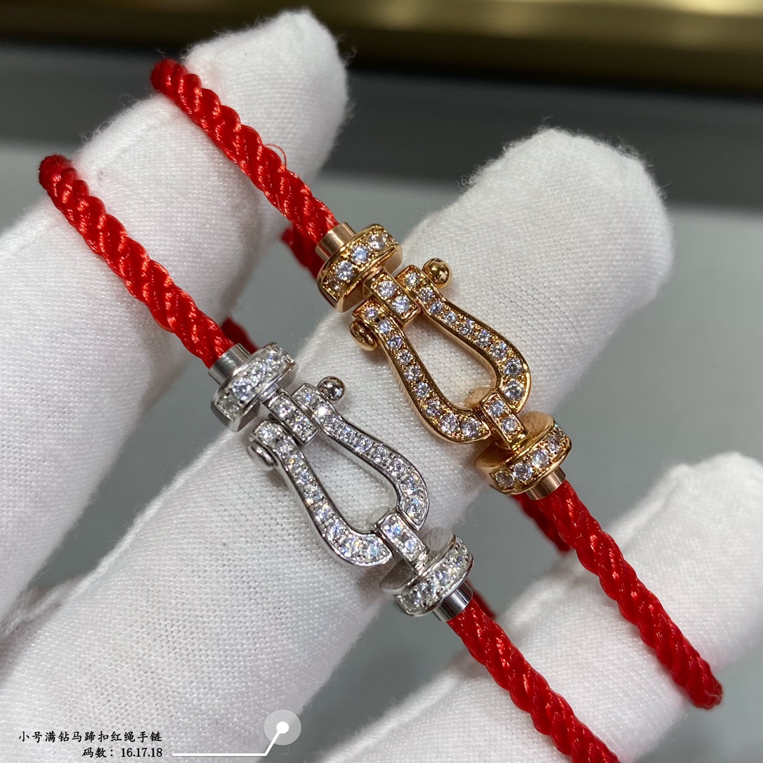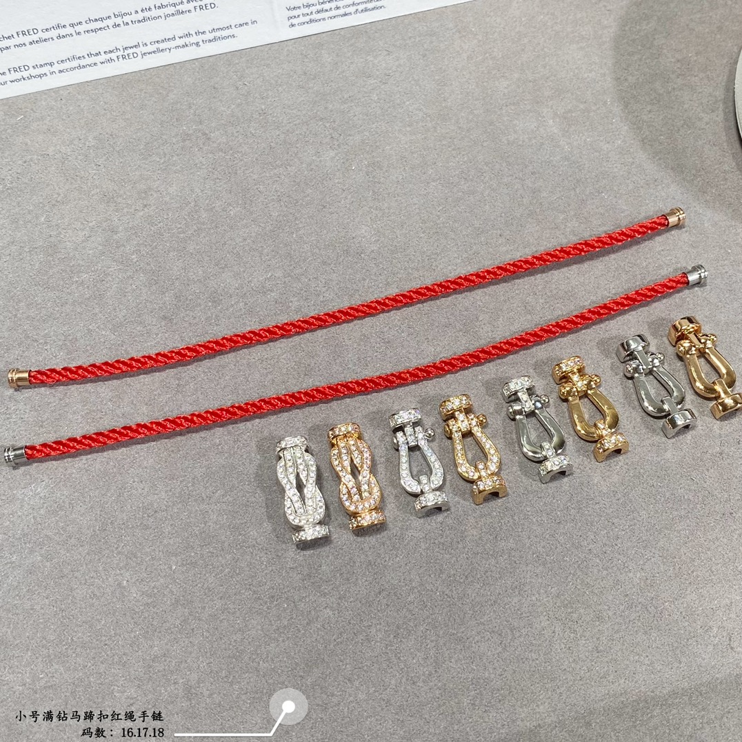 小号全长16.17.18💥新品发布❤️费雷德小号满钻马蹄扣红绳手链👉🏻大牌 时尚 精致💠⭐️高端定制~加厚 电镀18k金工艺 精工微镶 网红达人 时尚一族必备单品