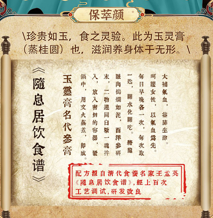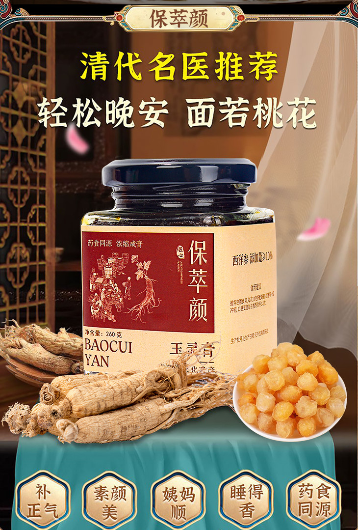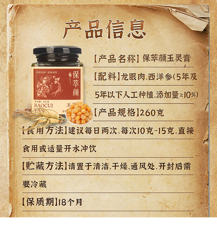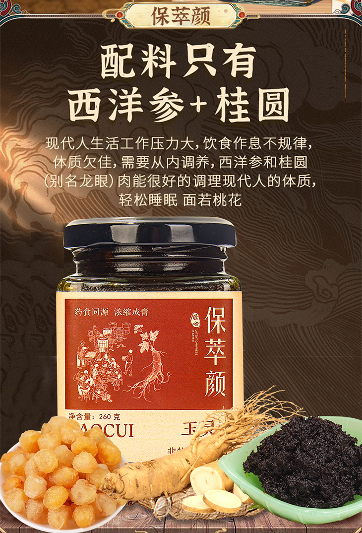 保萃颜玉灵膏蒸桂圆膏保萃颜家西洋参宝翠颜玉灵膏官方旗舰店正品