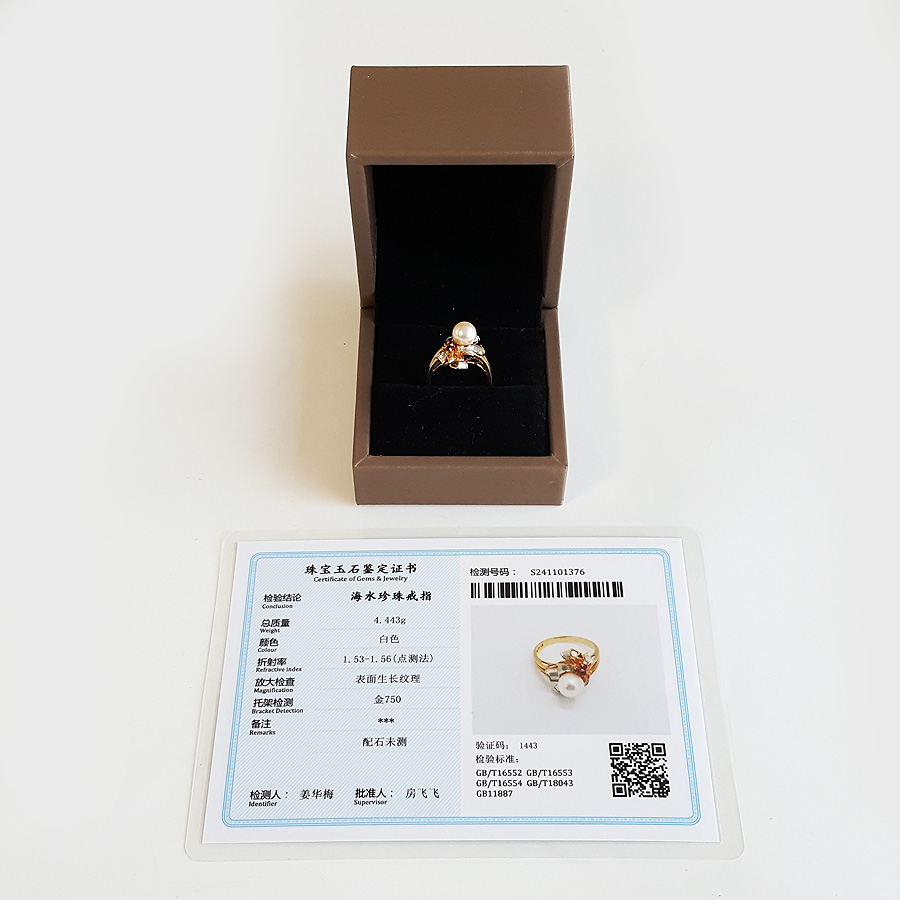 名称 | AU750黄金镶天然约6.8MM海水珍珠戒指 |