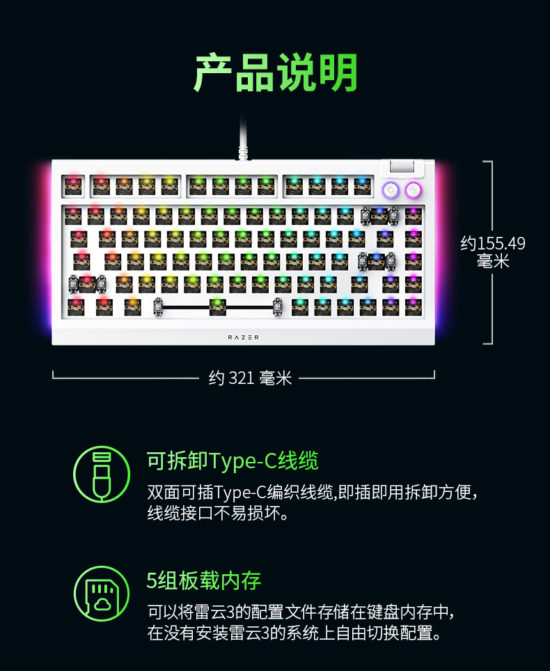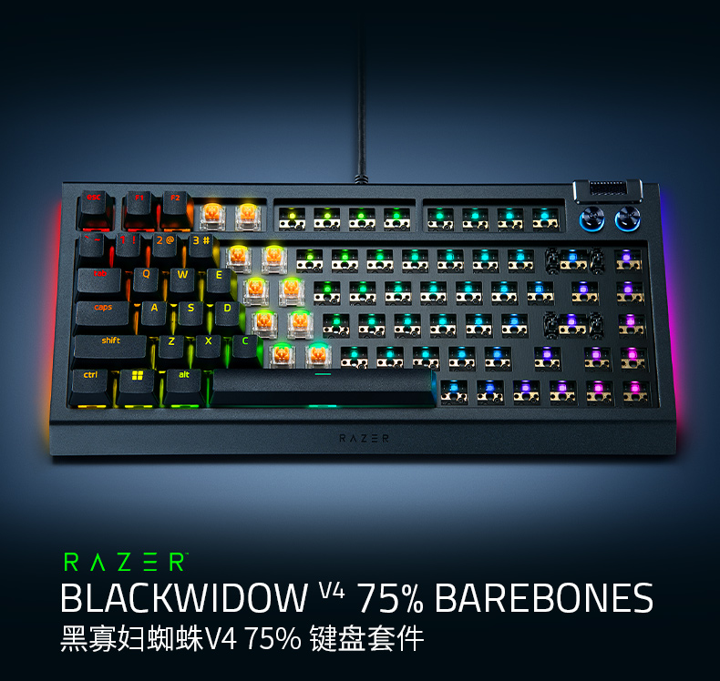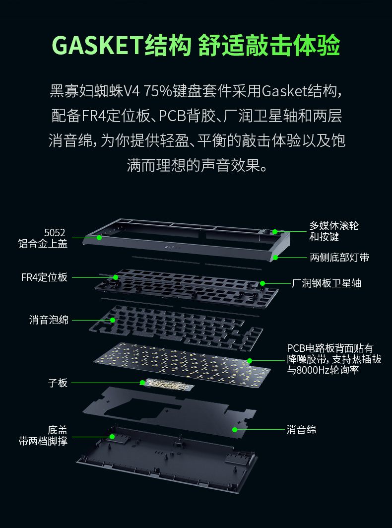【赠优格透明轴+幽影键帽】Razer雷蛇 黑寡妇蜘蛛V4 75%键盘套件【雷蛇官方直营,3年有限质保】