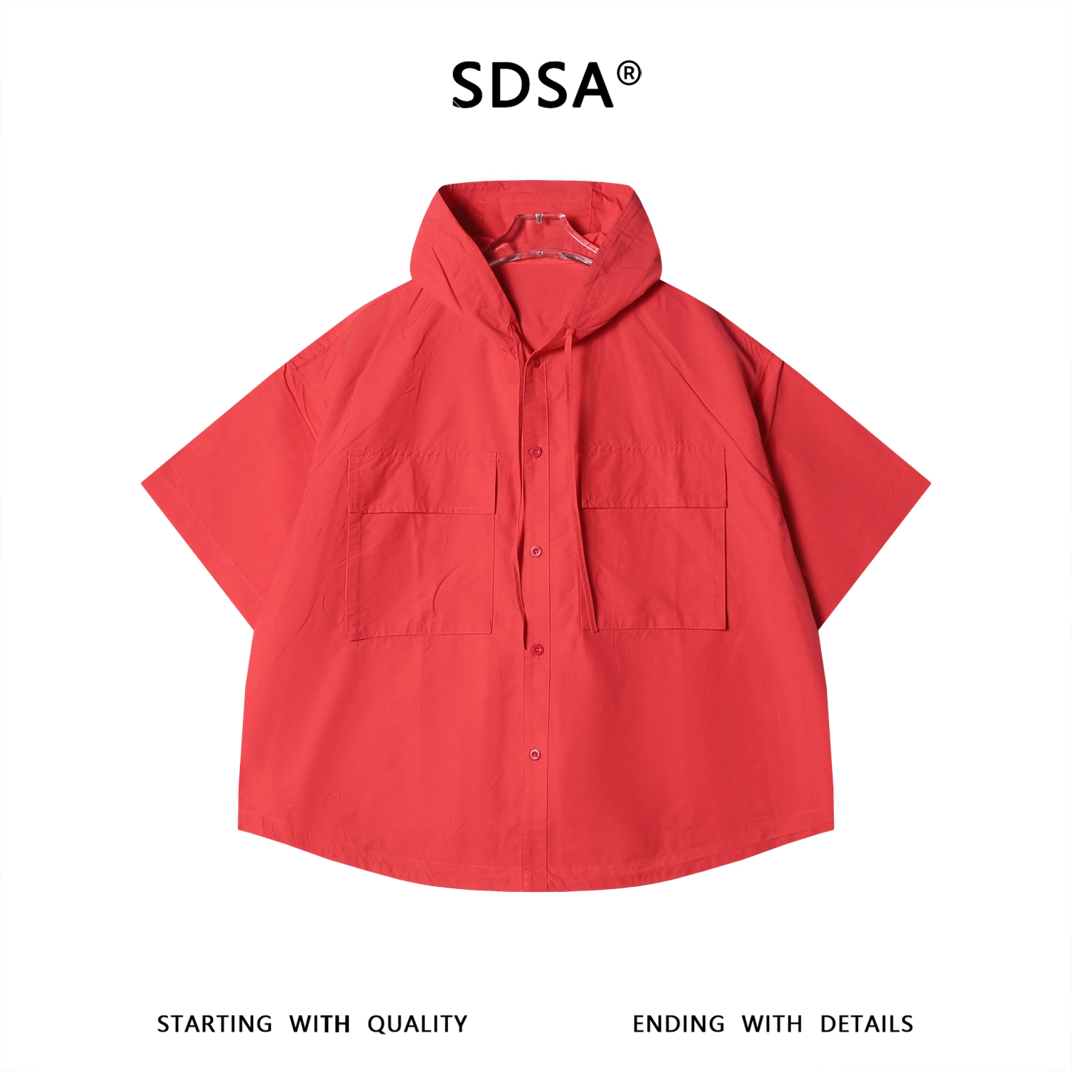 SDSA男装2026新款高贵轻奢连帽多口袋短袖衬衫宽松休闲上衣