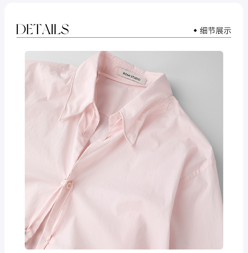 ROMI STUDIO“松弛随性”棉质舒适自在宽松不对称领衬衫 RWCAS65985