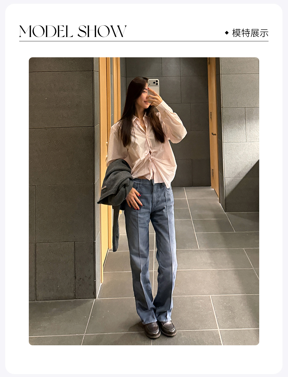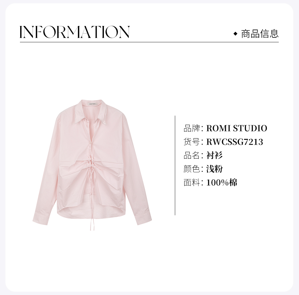 ROMI STUDIO全棉肌理感亲肤洗水抽褶翻领宽松开襟衬衫 RWCSSG7213