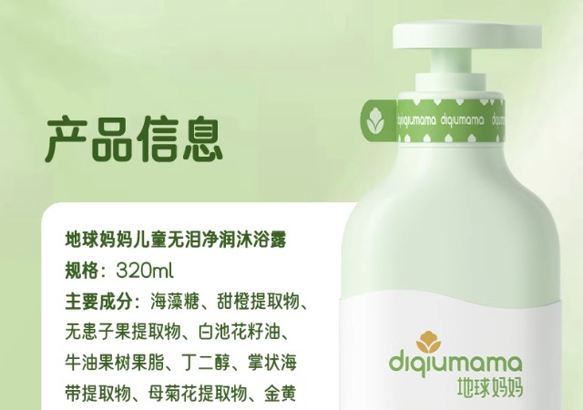 地球妈妈儿童无泪净润沐浴露学生清洁后背温和保湿持久留香沐浴乳