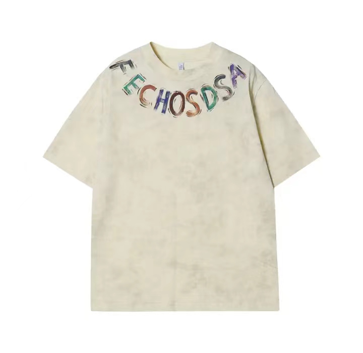 新款彩色吗印花男女同款短袖百搭潮流休闲上衣复古宽松T恤
